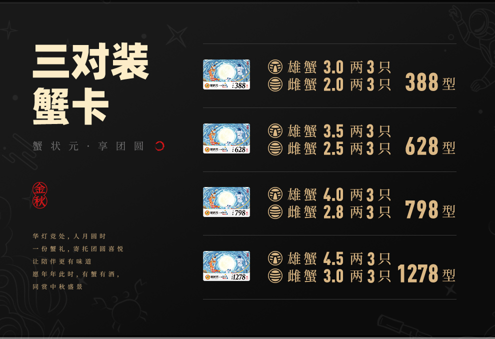 蟹状元精品三对装798型雄蟹4.0两/3只雌蟹2.8两/3只