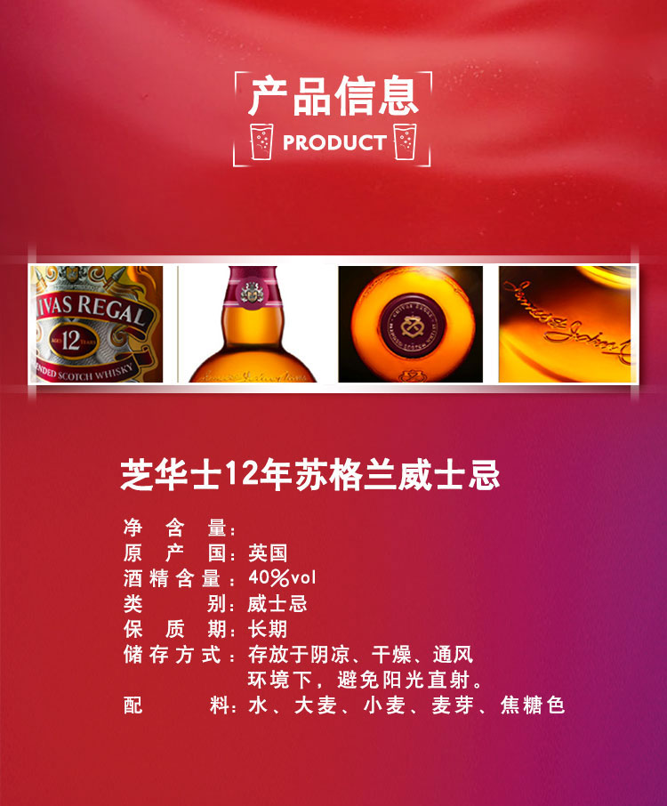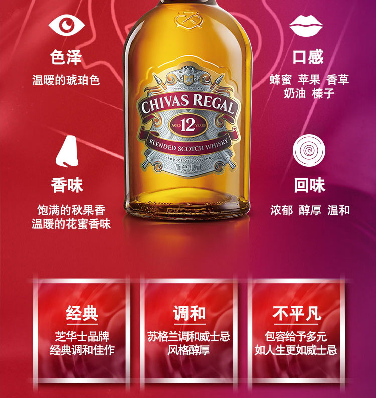 芝华士(Chivas)洋酒 12年 苏格兰 威士忌 700ml