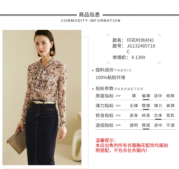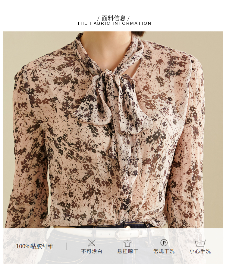 “樱花衬衫”JG132485T1XC颈袖添香新款印花气质高级女款通勤修身衬衫(四季可穿)