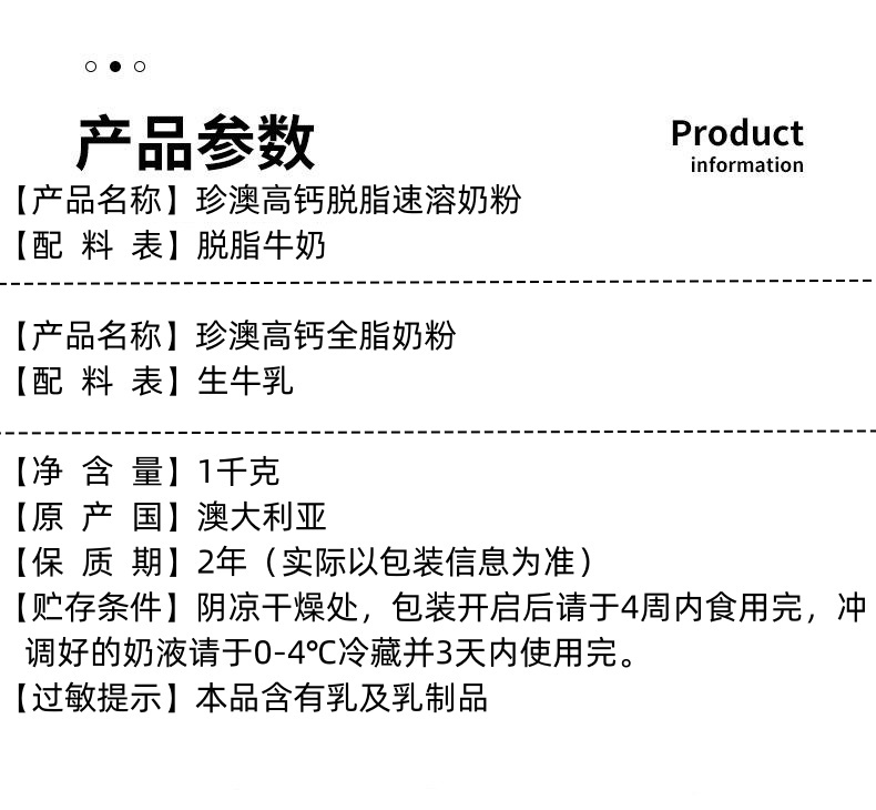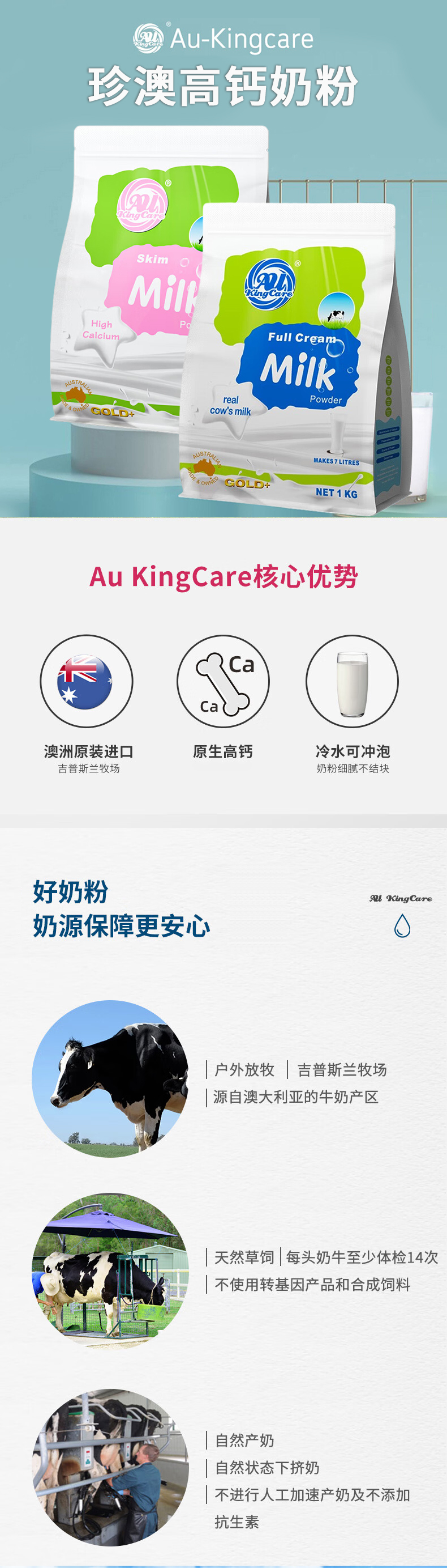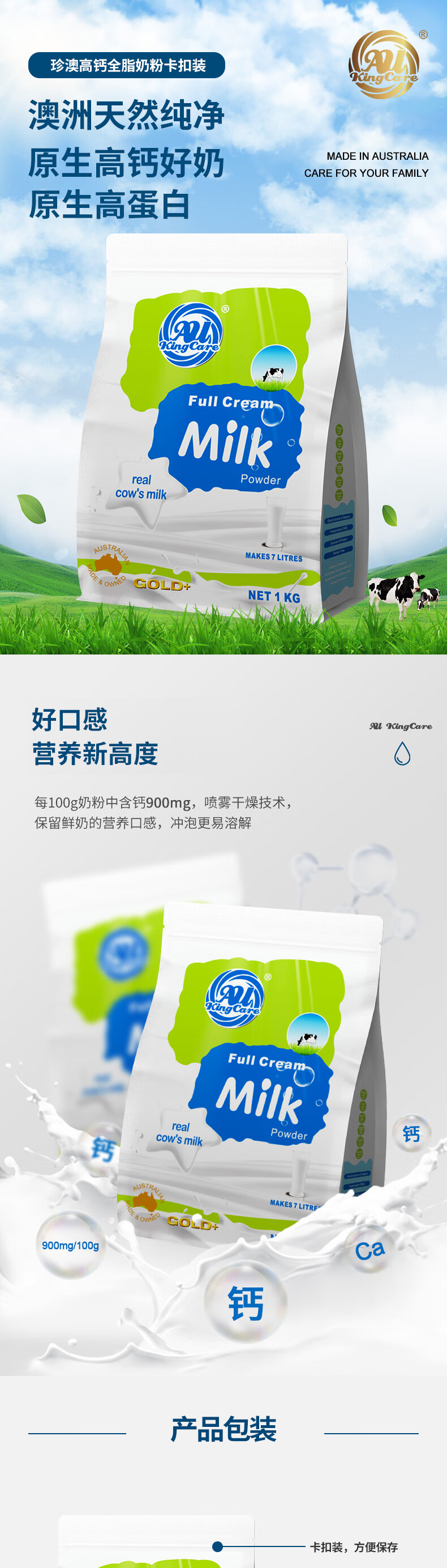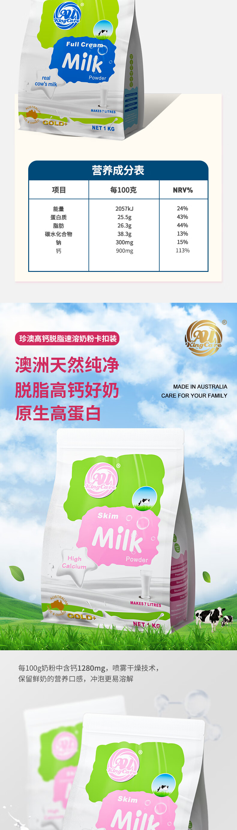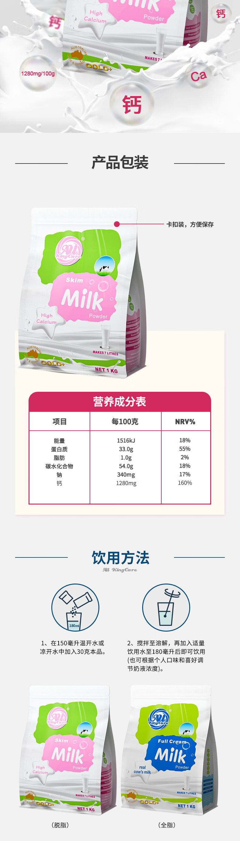 澳大利亚进口珍澳高钙全脂I脱脂奶粉1kg
