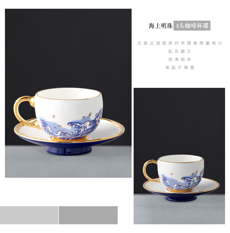 【国瓷·永丰源】先生瓷海上明珠4头咖啡杯碟简约情侣对杯精致下午茶杯碟