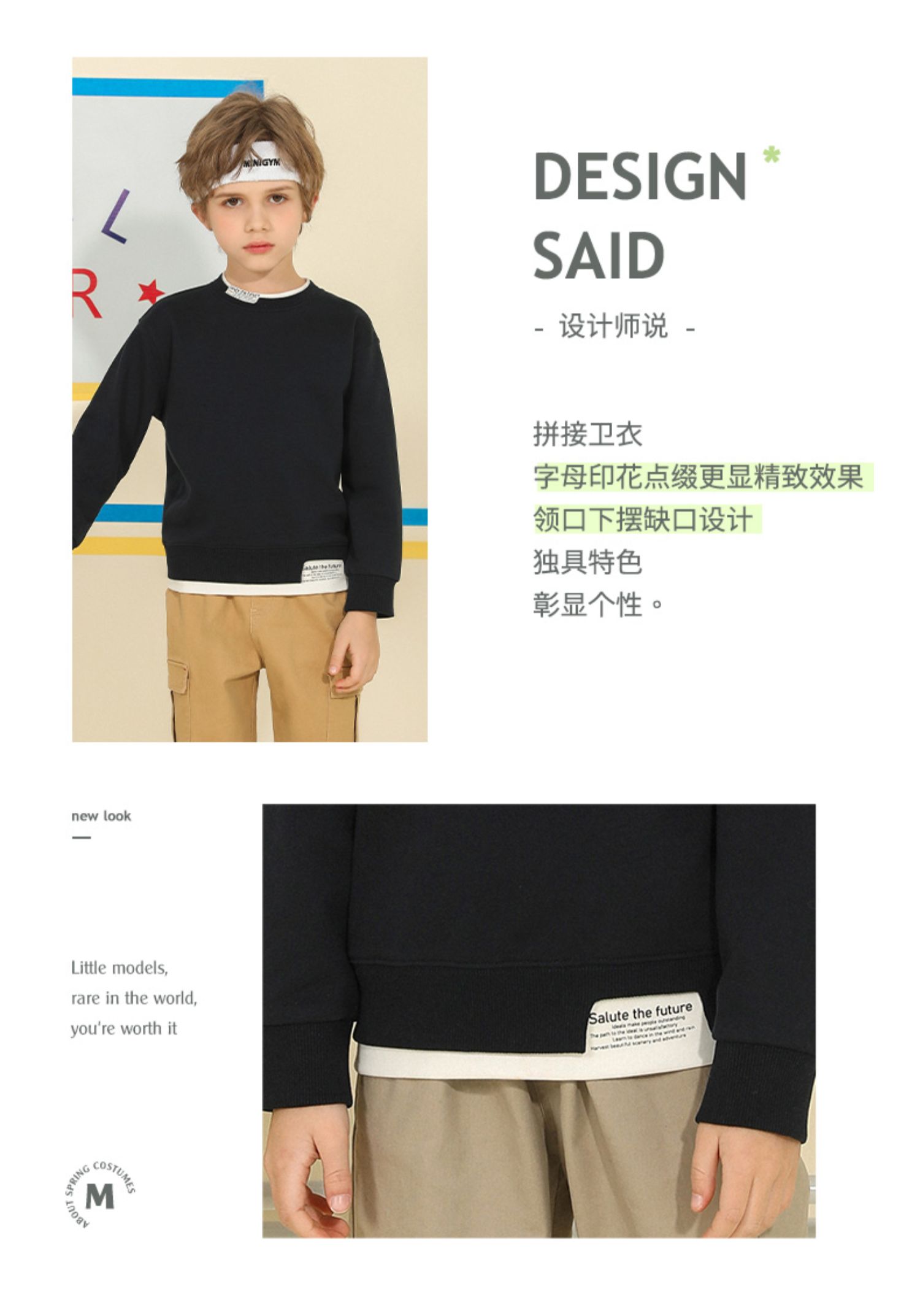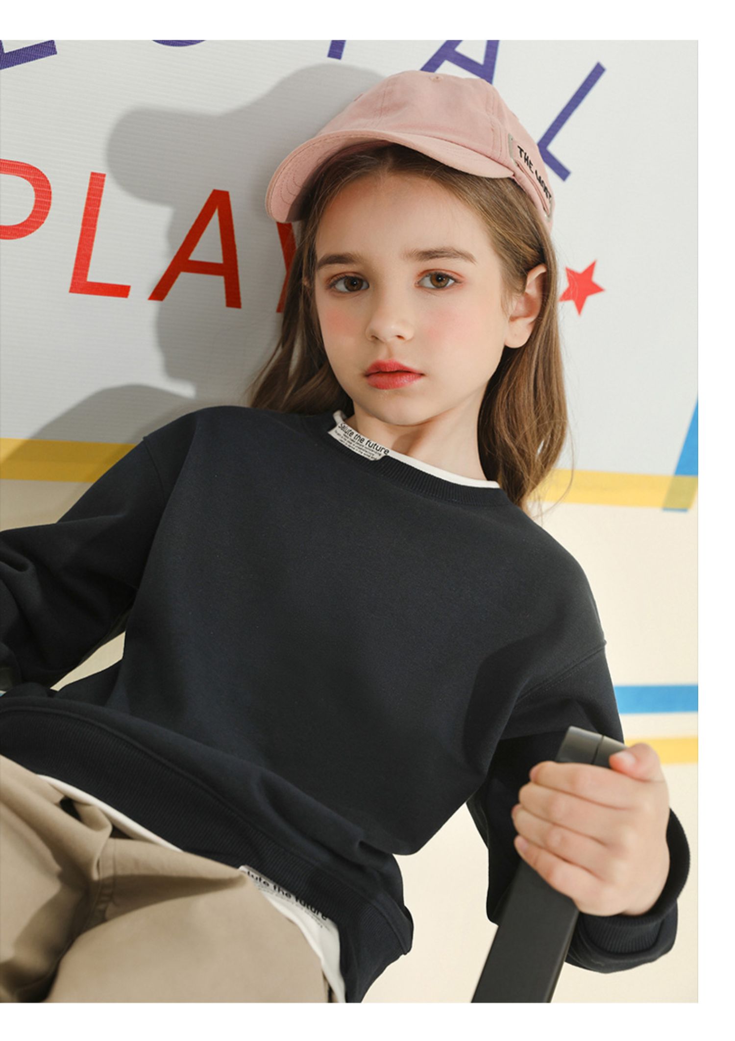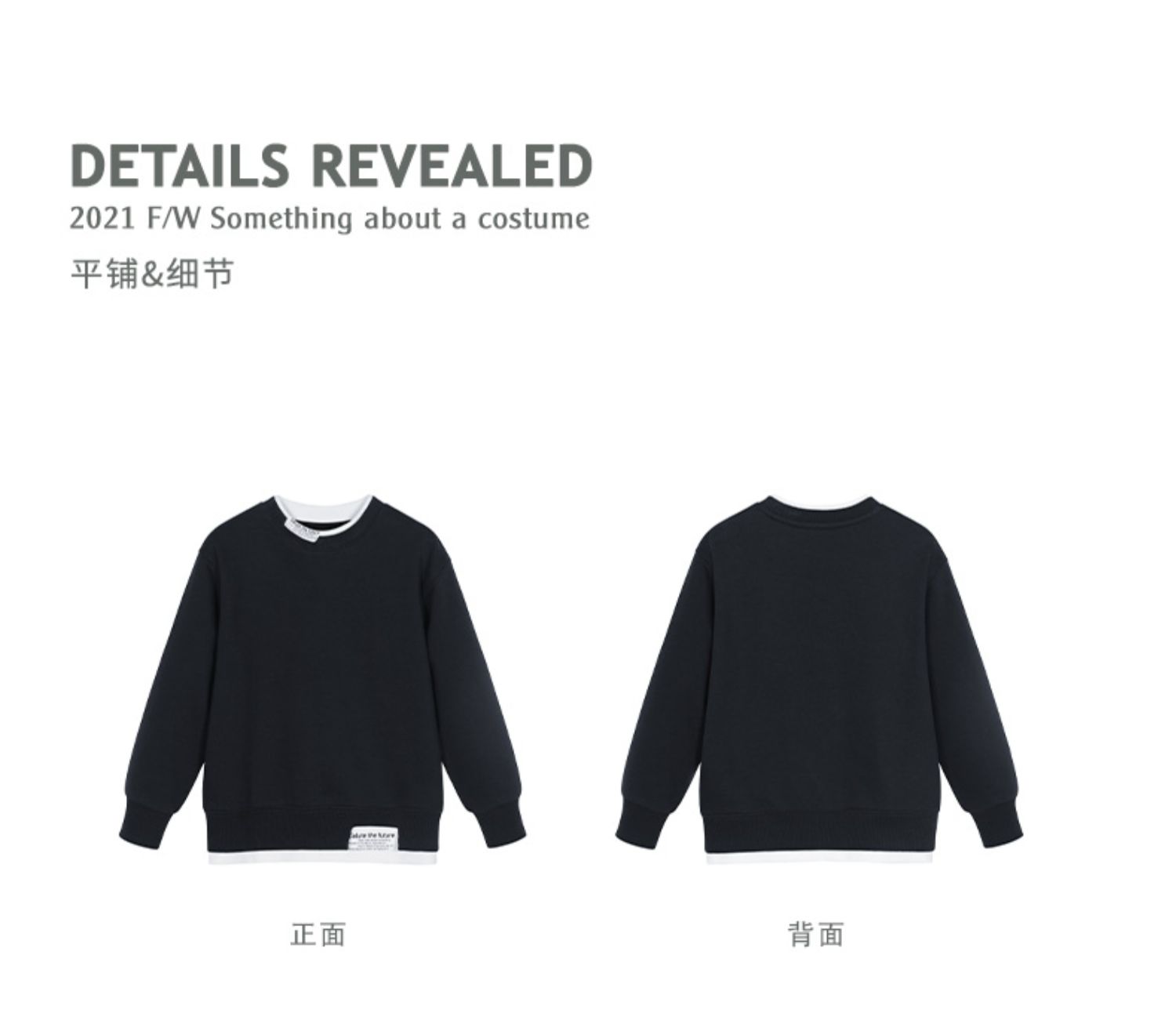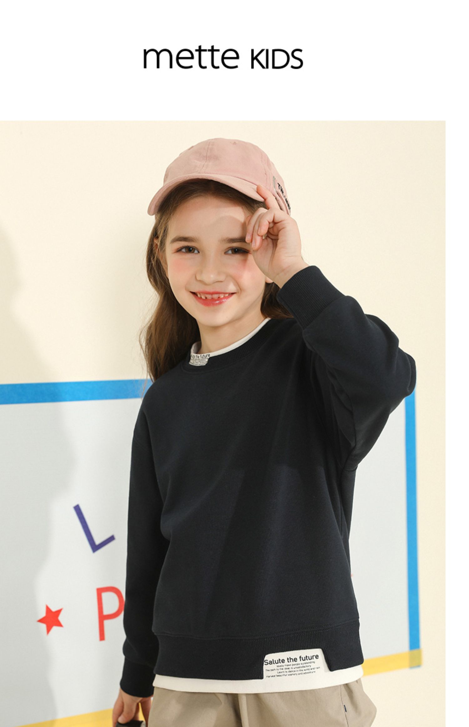 【精纺纯棉卫衣】mettekids童装拼接双层长袖卫衣男女童圆领套头衫