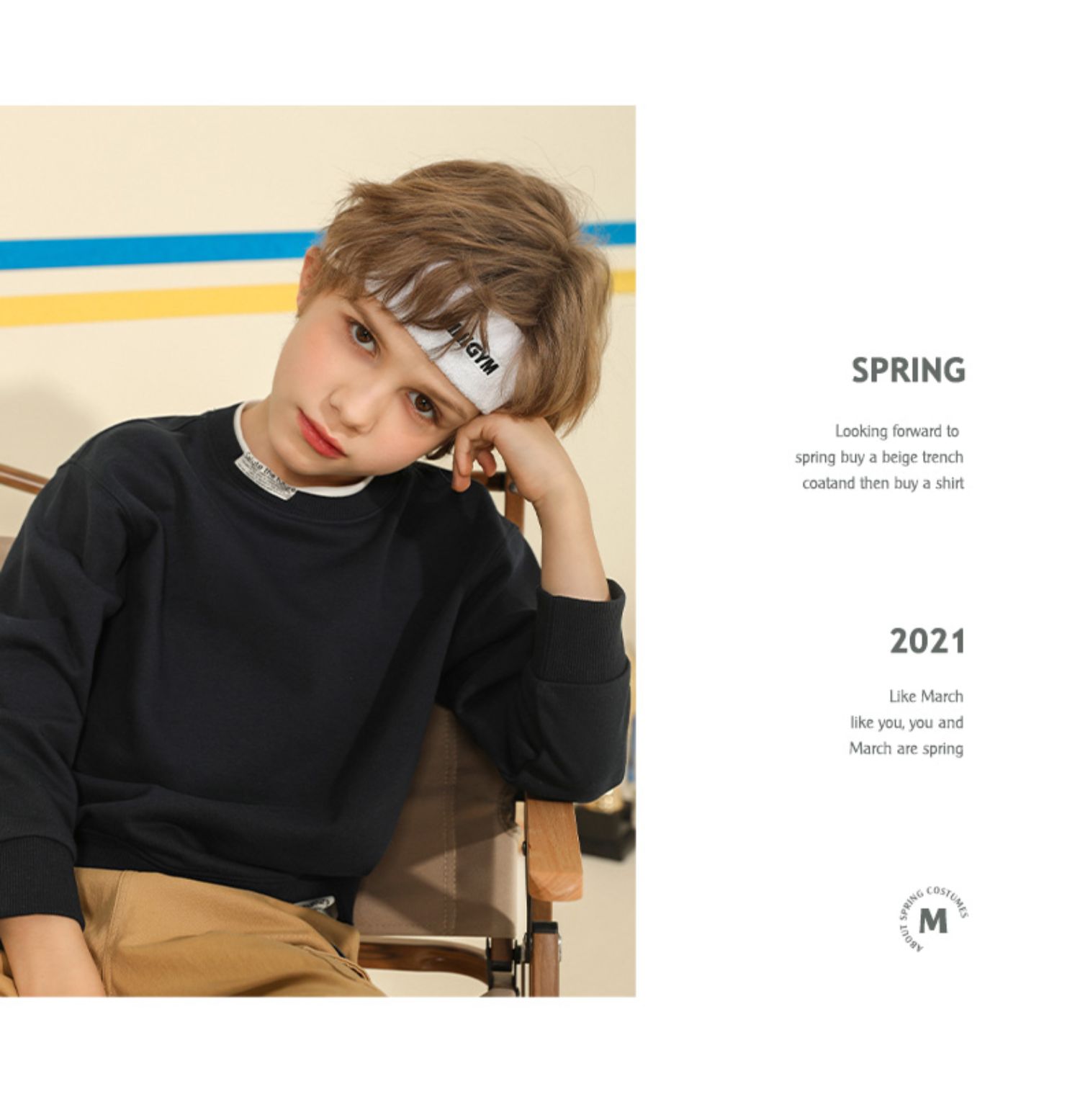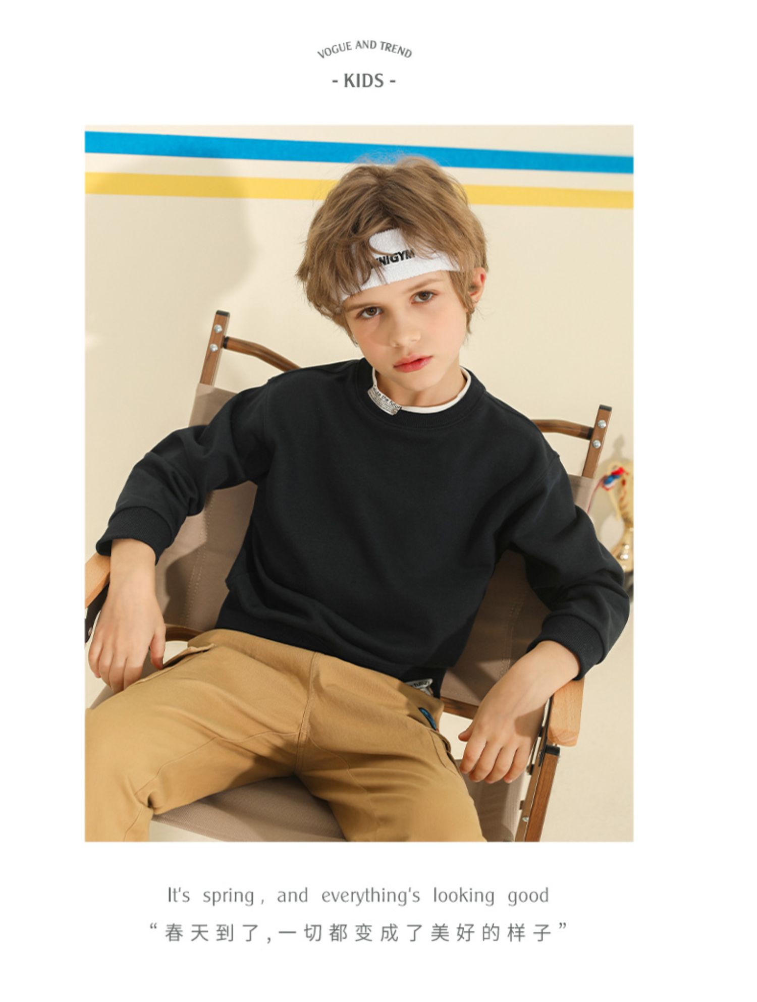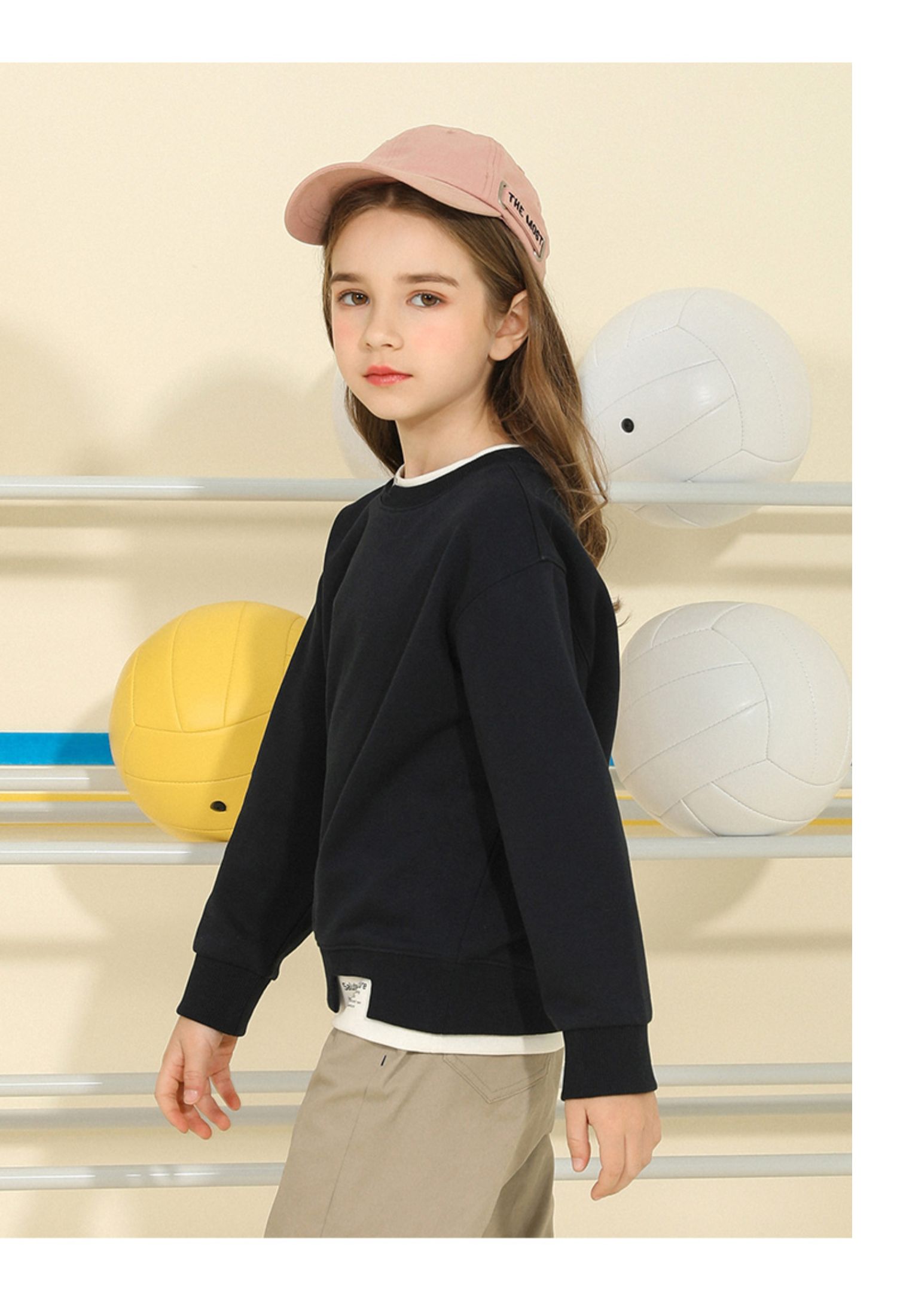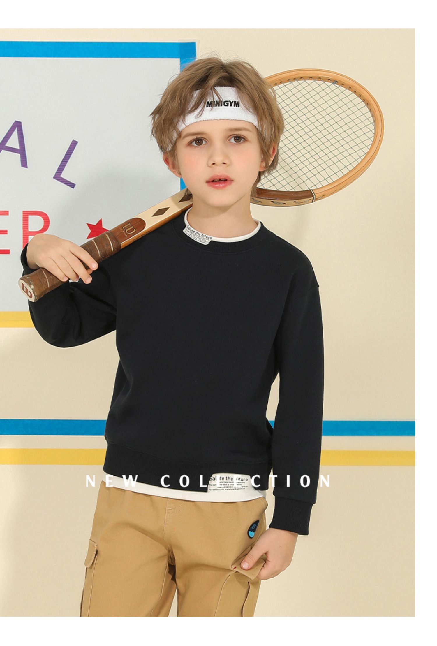 【精纺纯棉卫衣】mettekids童装拼接双层长袖卫衣男女童圆领套头衫