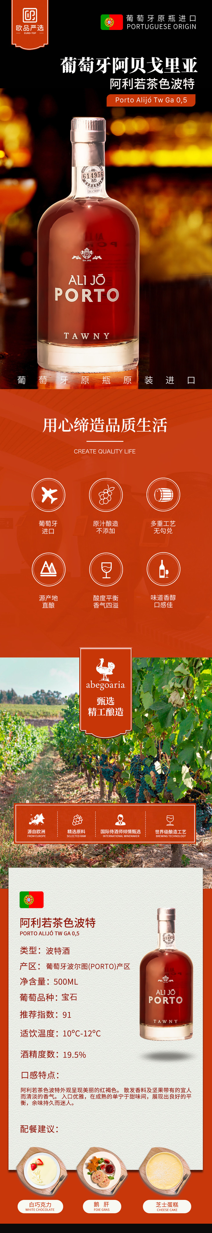 阿利若茶色波特酒甜型加强型微醺酒19.5度 1瓶