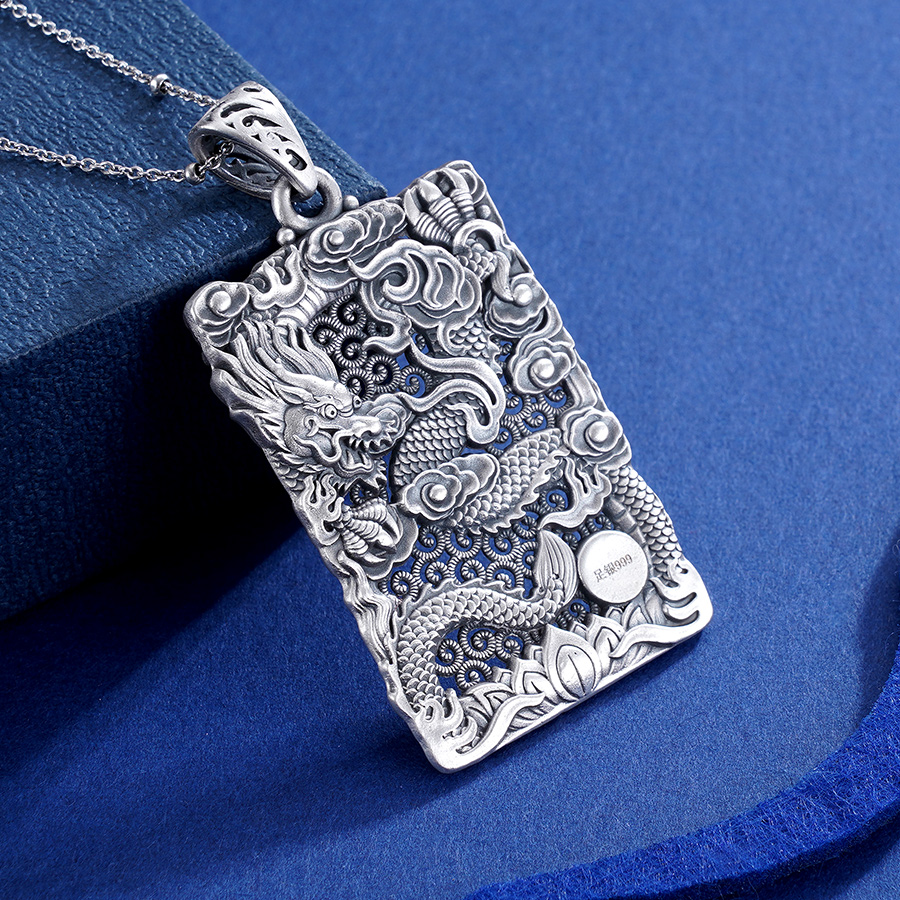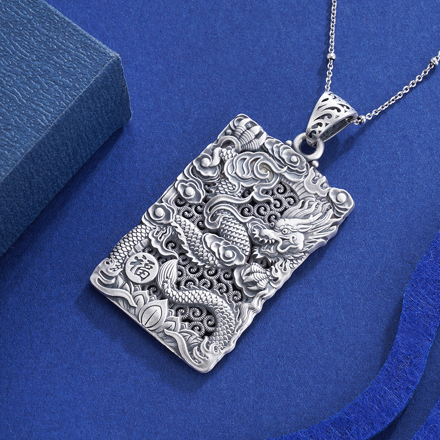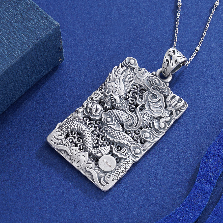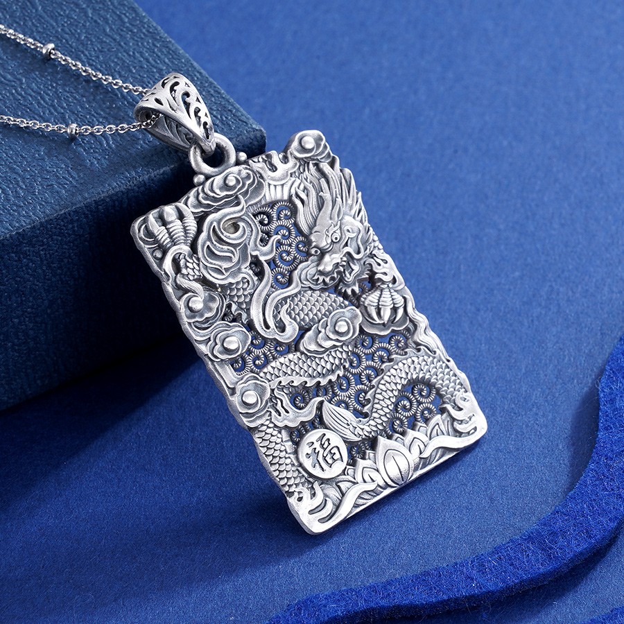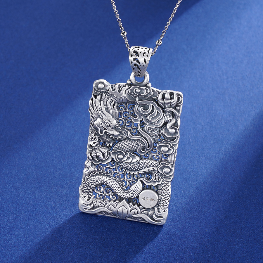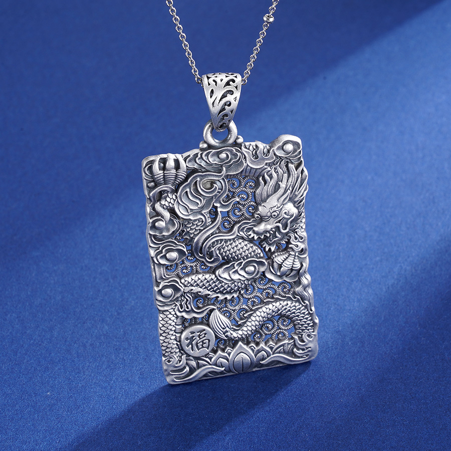 子佩集S999银浮雕龙吊坠【CD0490-1】(不含链)仿古方牌2306