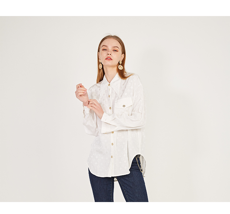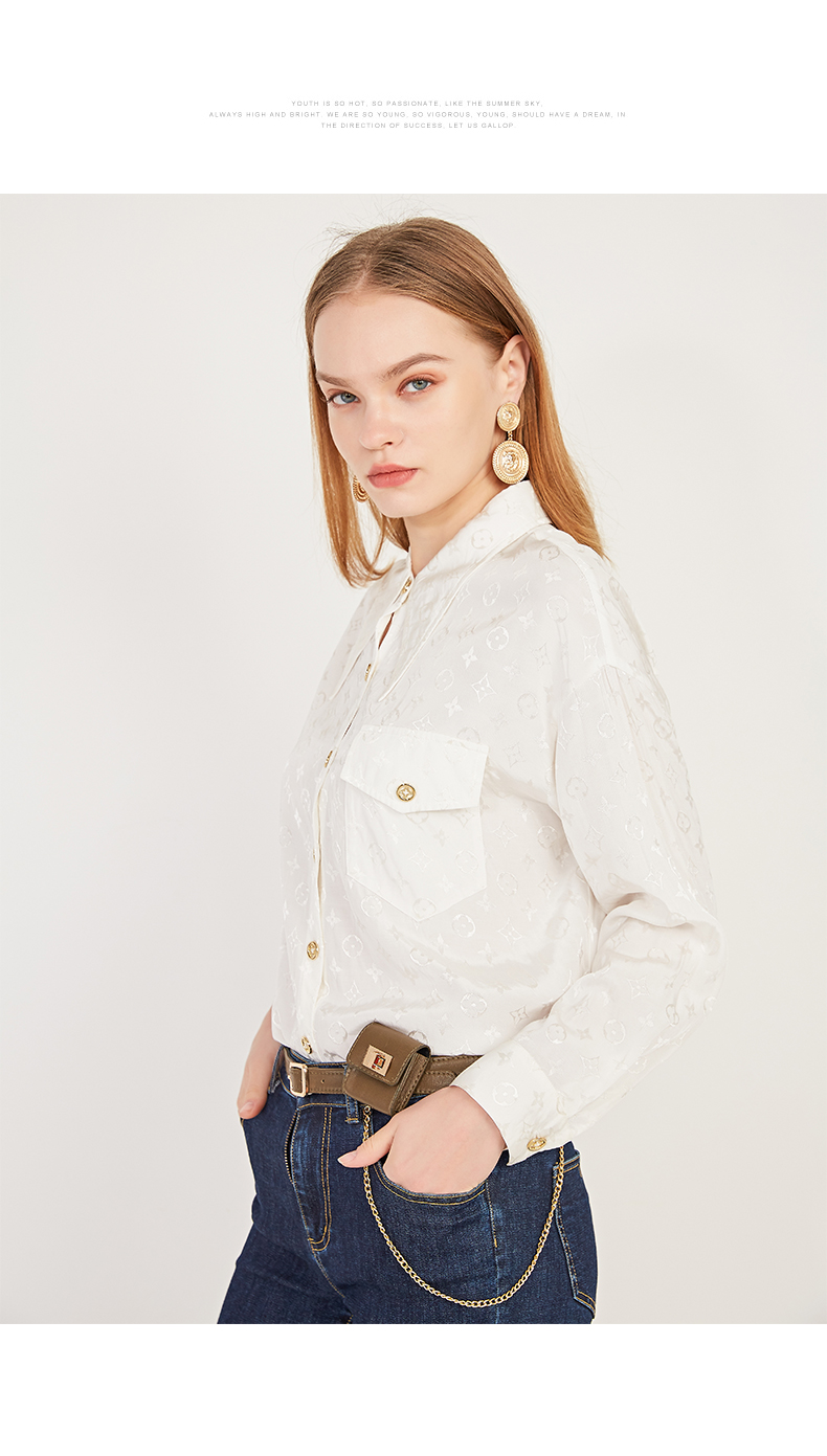 oldcolour春季新款大牌印花简约气质休闲长袖衬衫女N11013112