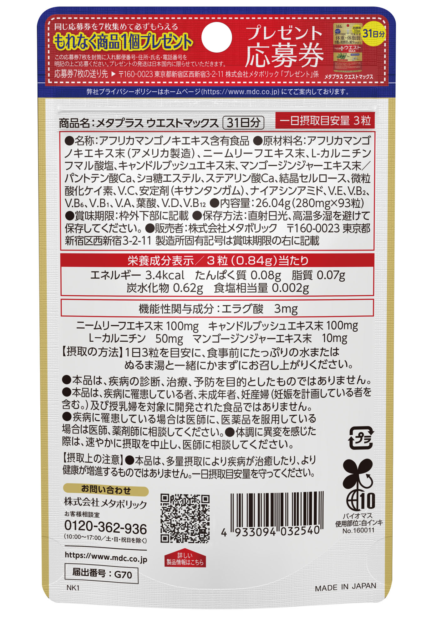 - metabolic ,日本酵素第一品牌,成立于1991年,已有29年的历史,专注于新陈代谢的研究,始终以开发让消费者受用的产品为企业目标,生产高品质的保健食品。