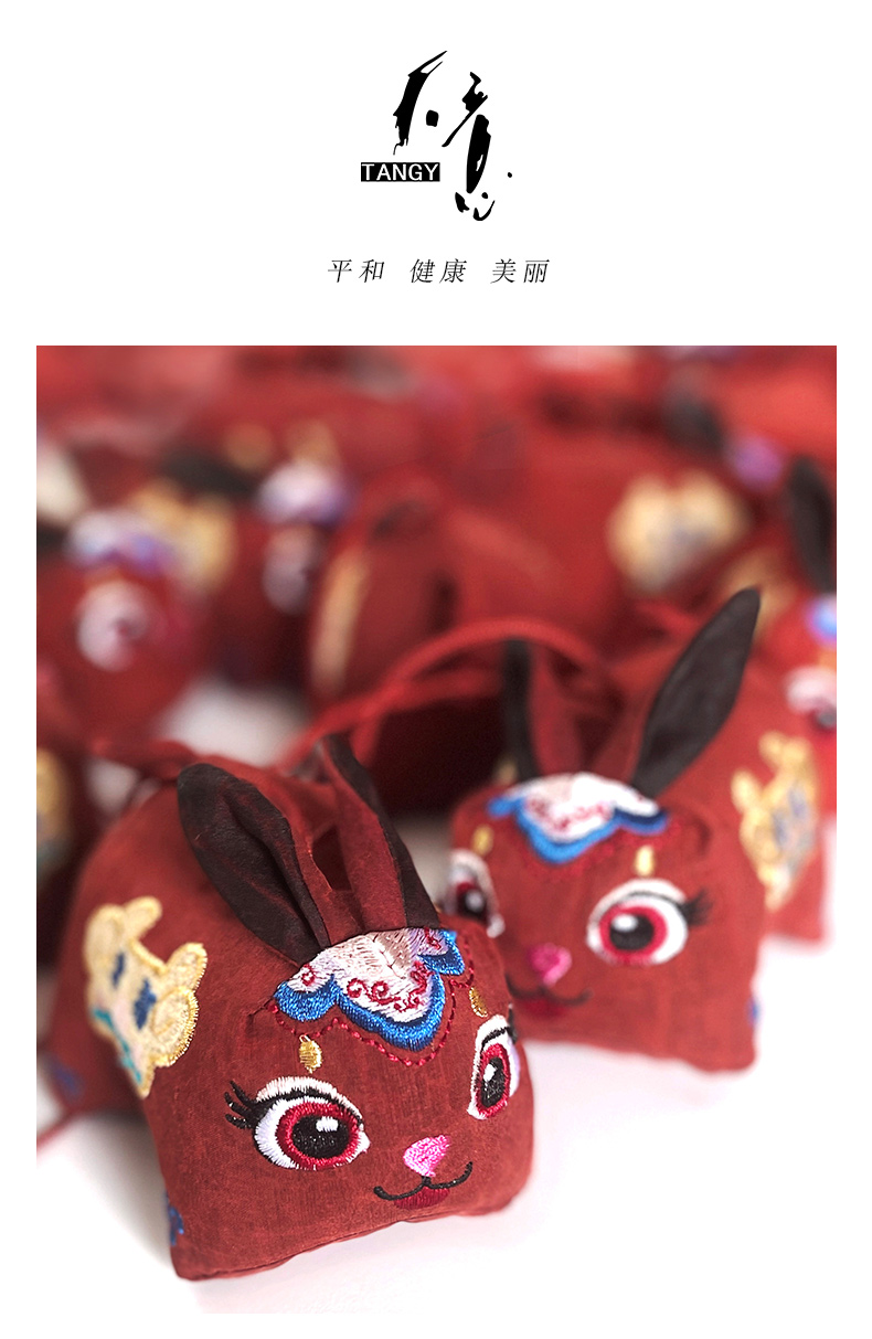 TANGY/天意2023春季新品莨绸绣花玉兔挂饰CL231417