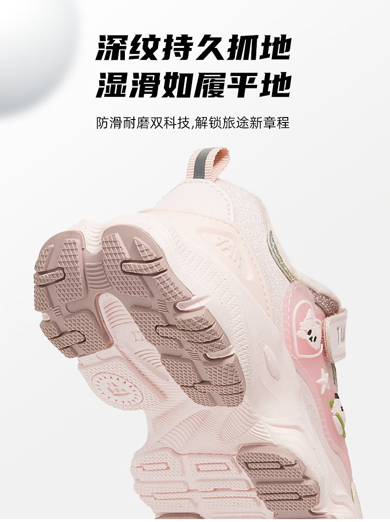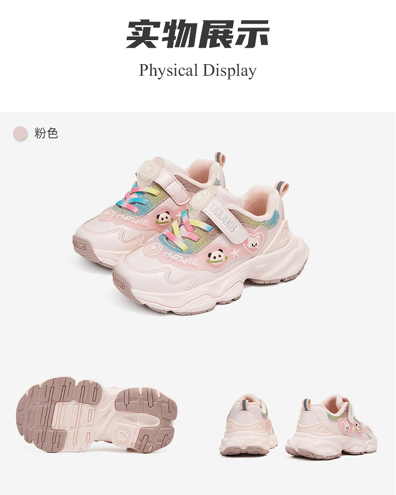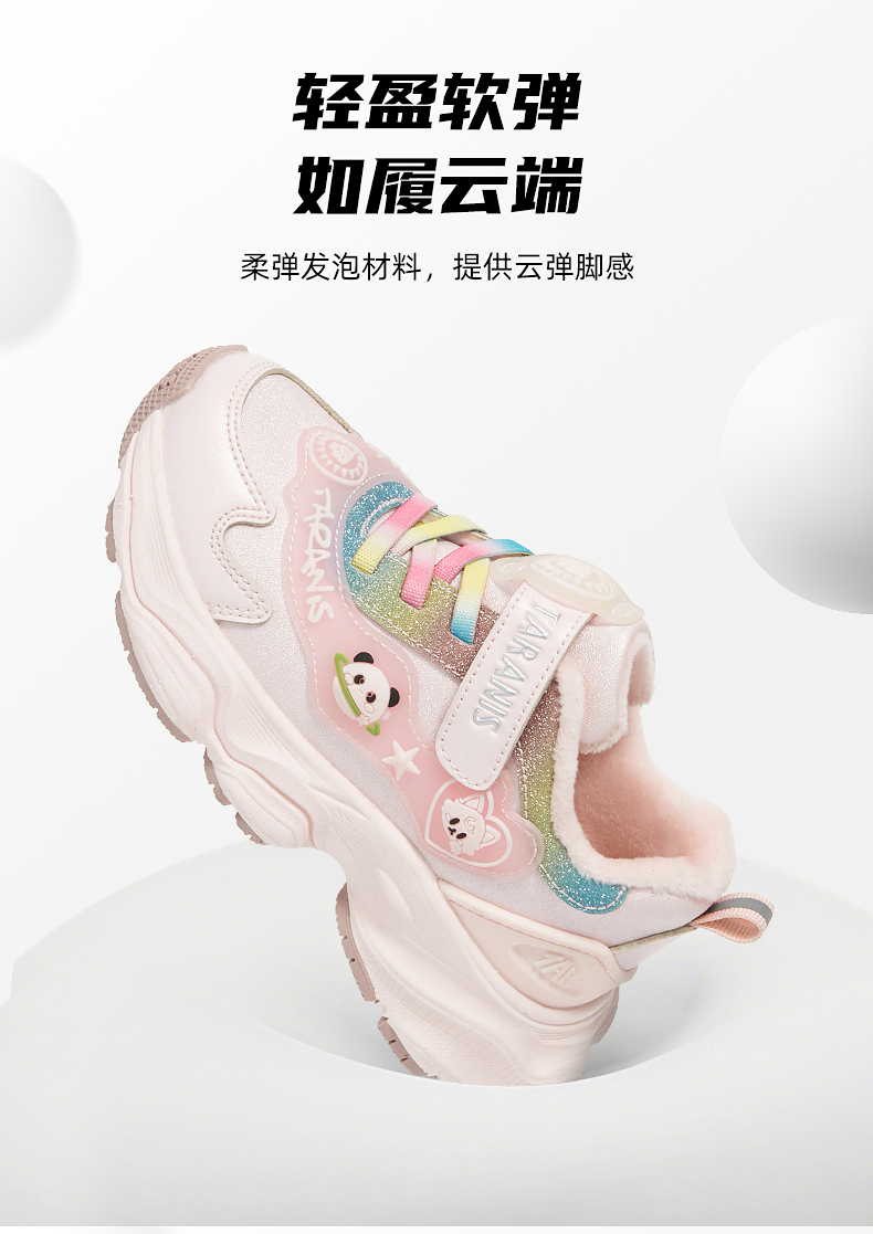 泰兰尼斯冬季新款儿童运动鞋女童加绒保暖休闲鞋防滑软底跑步鞋T01X5D6924