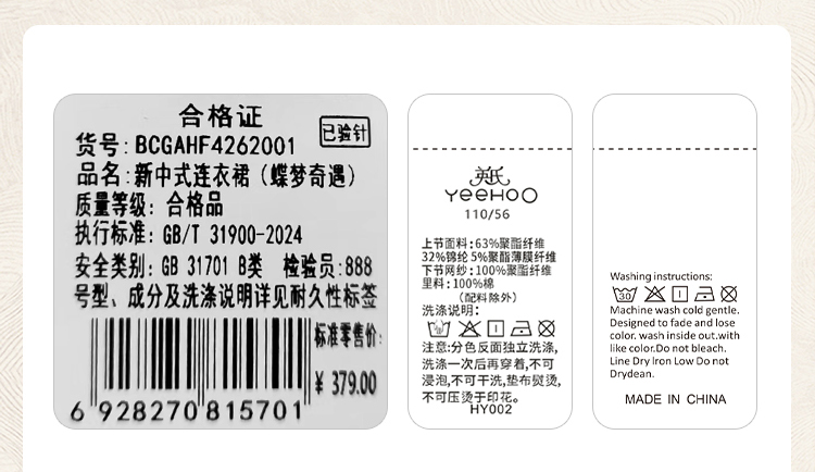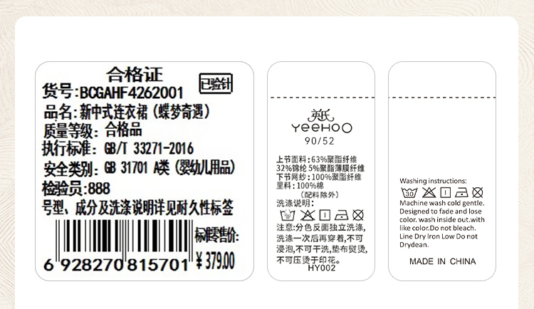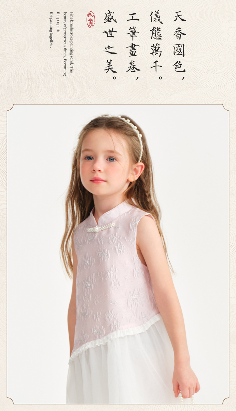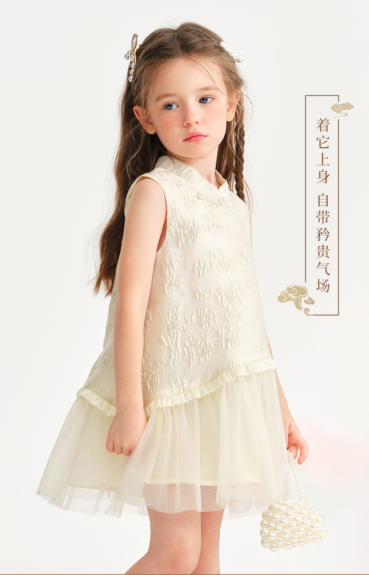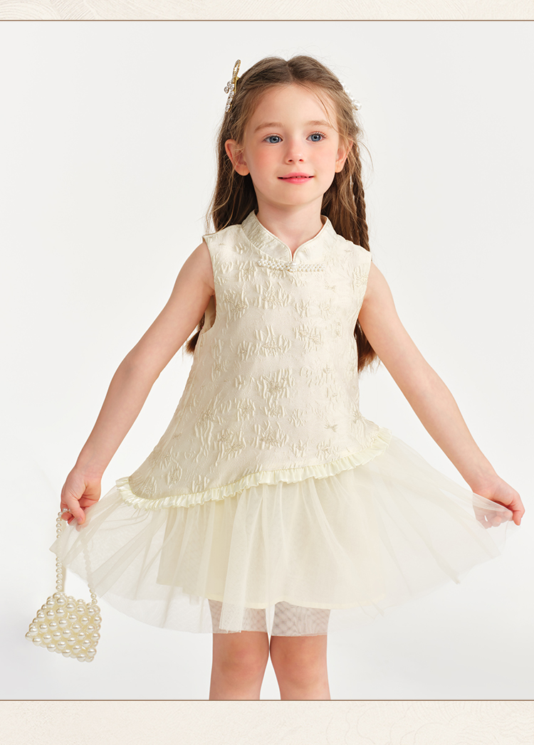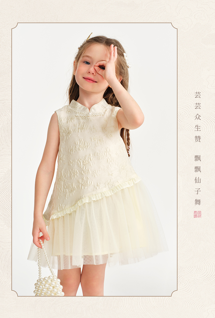 【英氏】【90-140】女童无袖国风新中式连衣裙