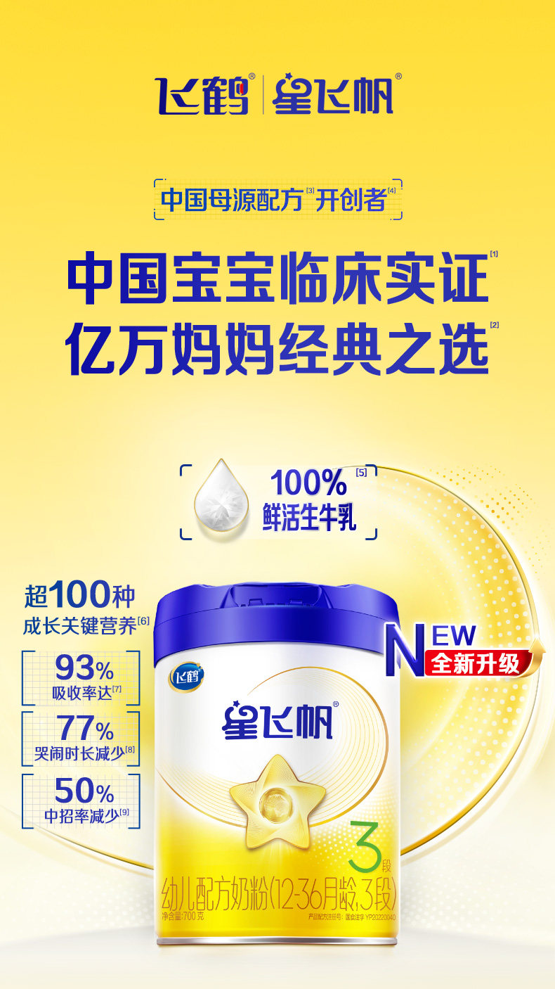 飞鹤星飞帆幼儿配方奶粉3段700g