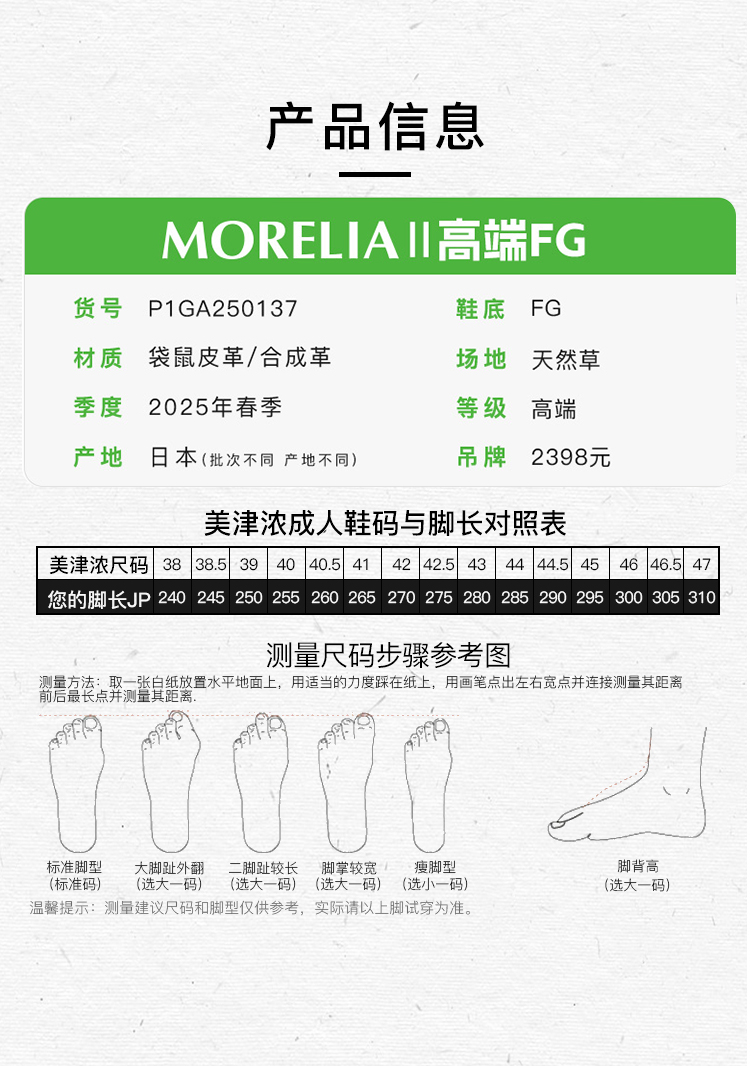 小李子正品美津浓莫雷拉MORELIA2高端日产FG长钉运动足球鞋成人男
