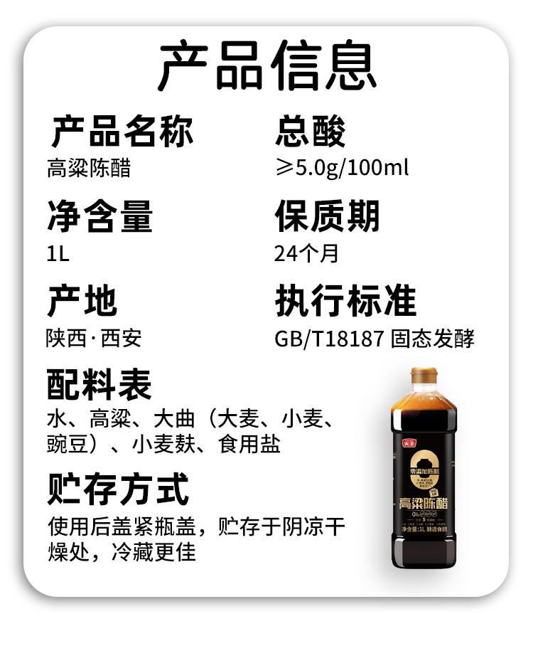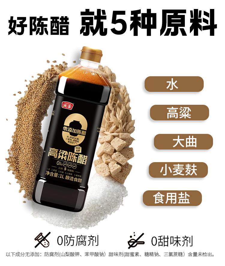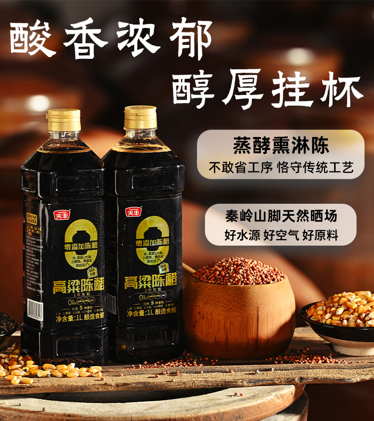 天丰零添加高粱陈醋1L*2瓶【单独发货 分包裹寄出】