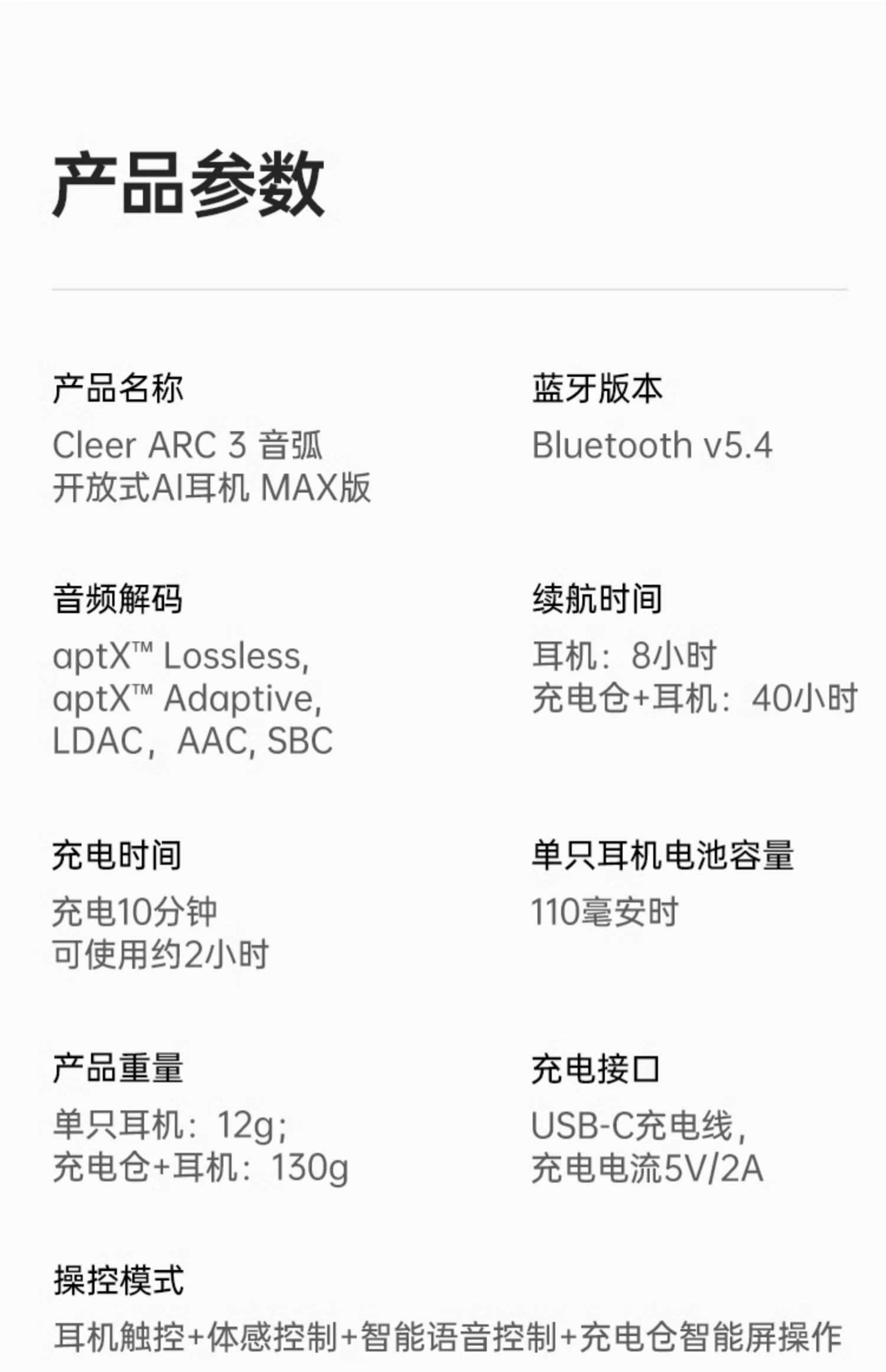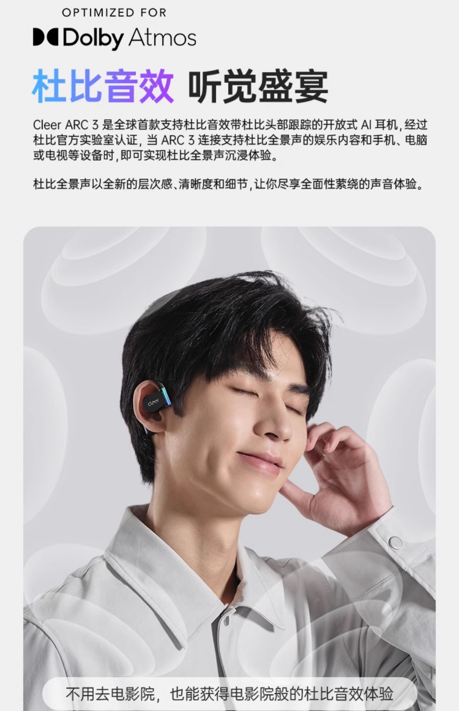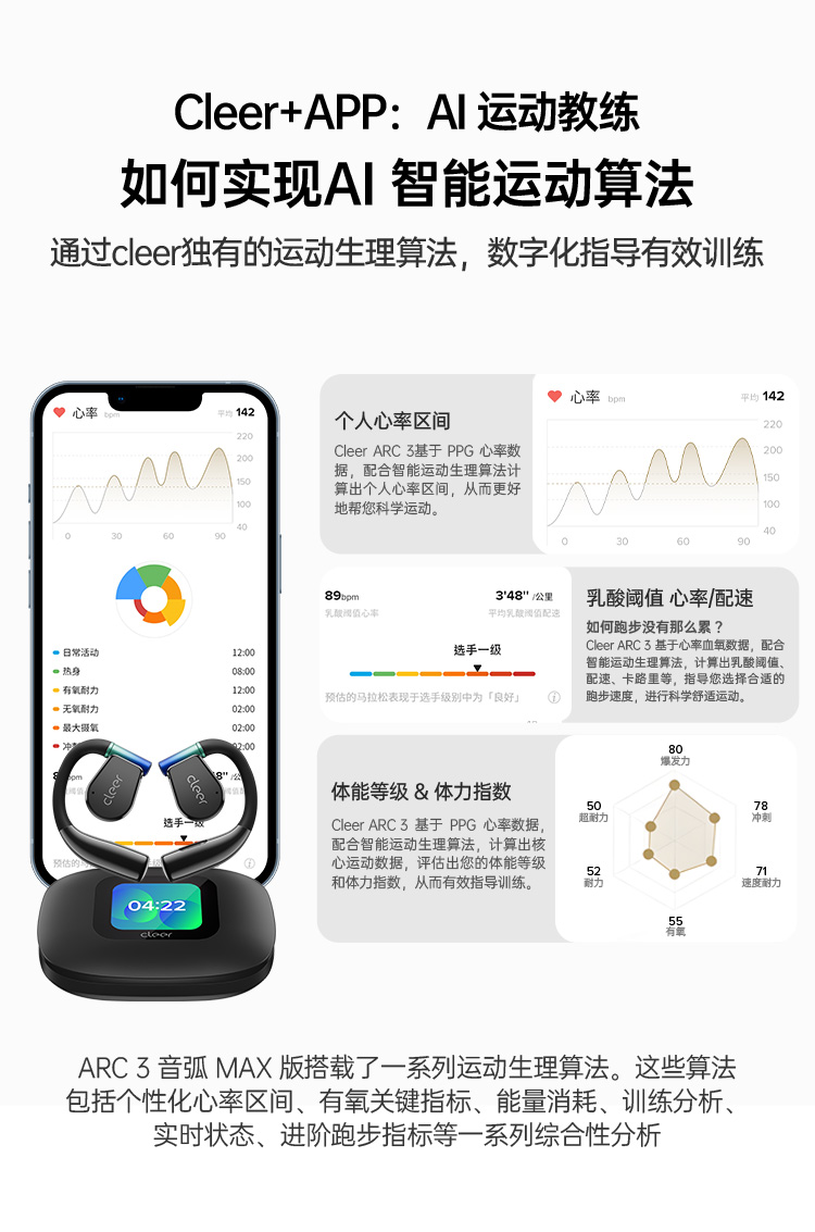 ClEER ARC 3 MAX款 无线蓝牙耳机 星光黑 不入耳开放式金榜挂耳式AI智能杜比声无线蓝牙运动耳机适配华为苹果小米国家补贴