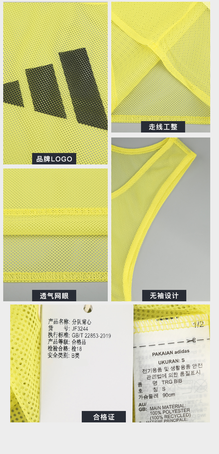 小李子ADIDAS阿迪达斯足球运动训练比赛舒适分队背心成人男JF3244