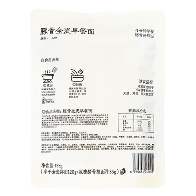 拉面说豚骨全麦早餐面155g/袋