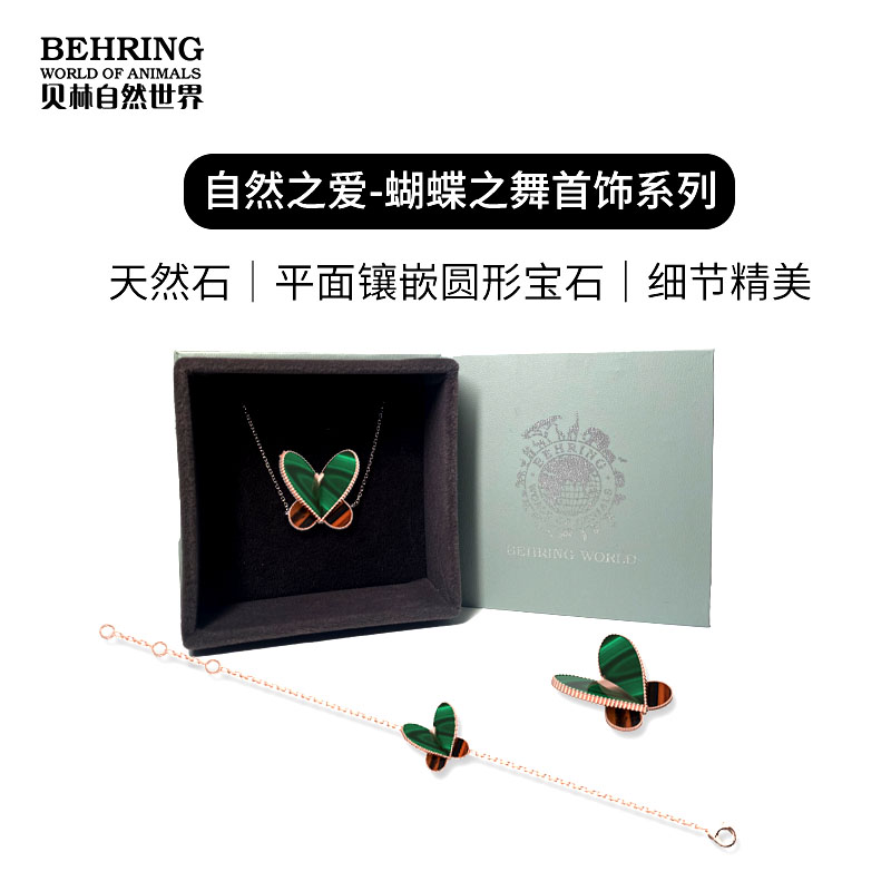贝林自然世界玫瑰金色孔雀石黄虎眼首饰系列博物馆文创产品