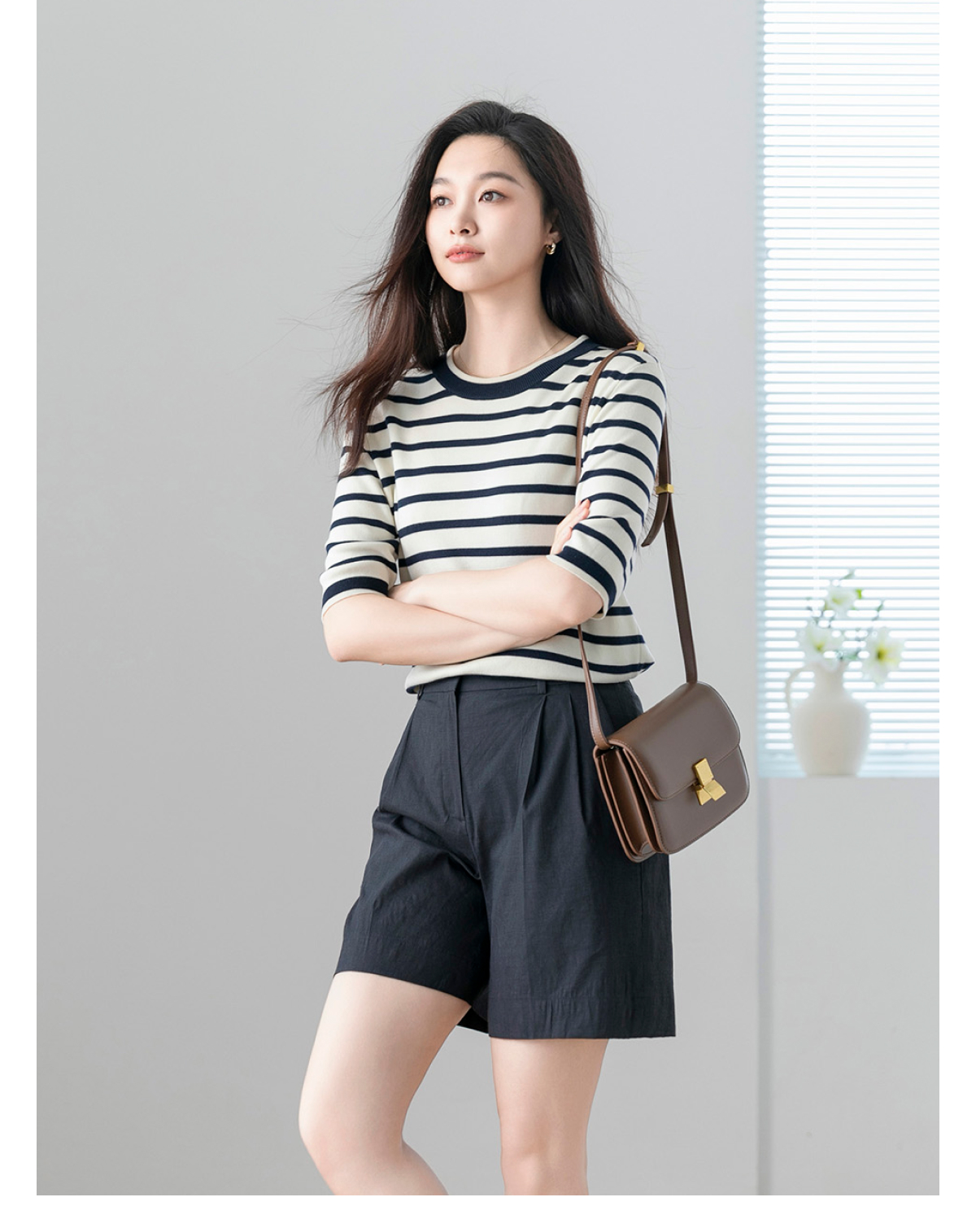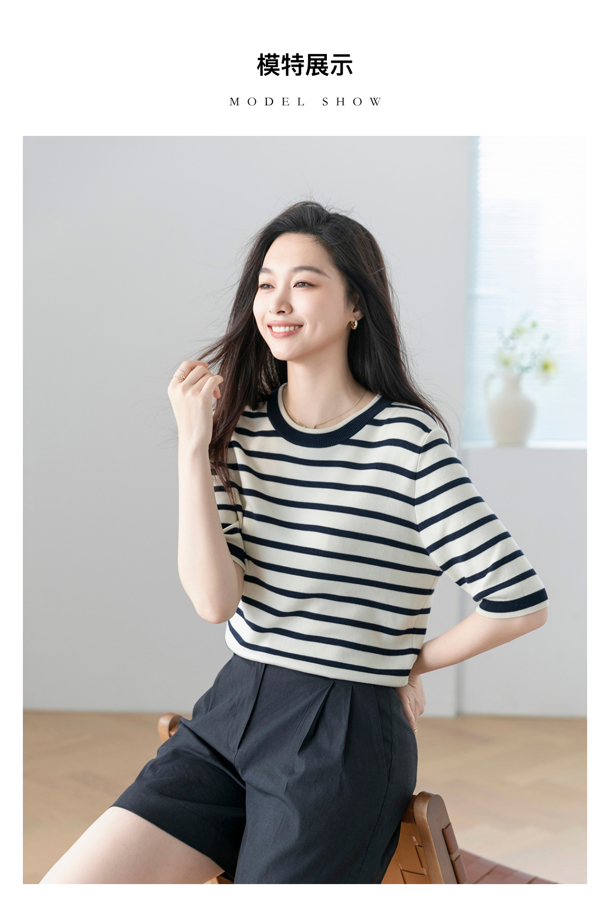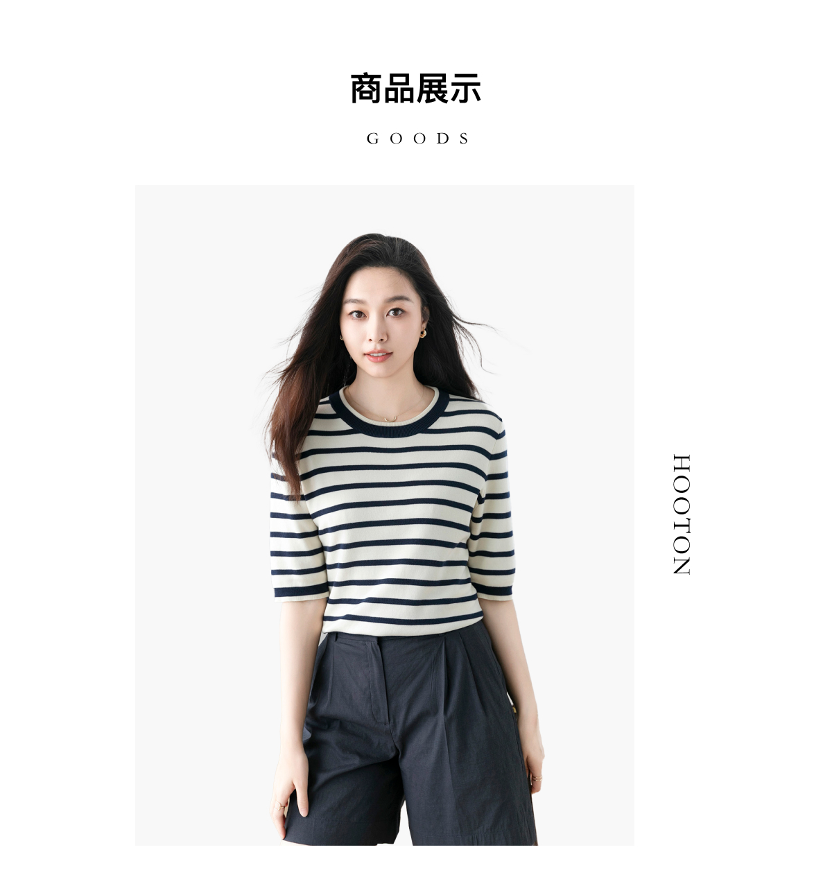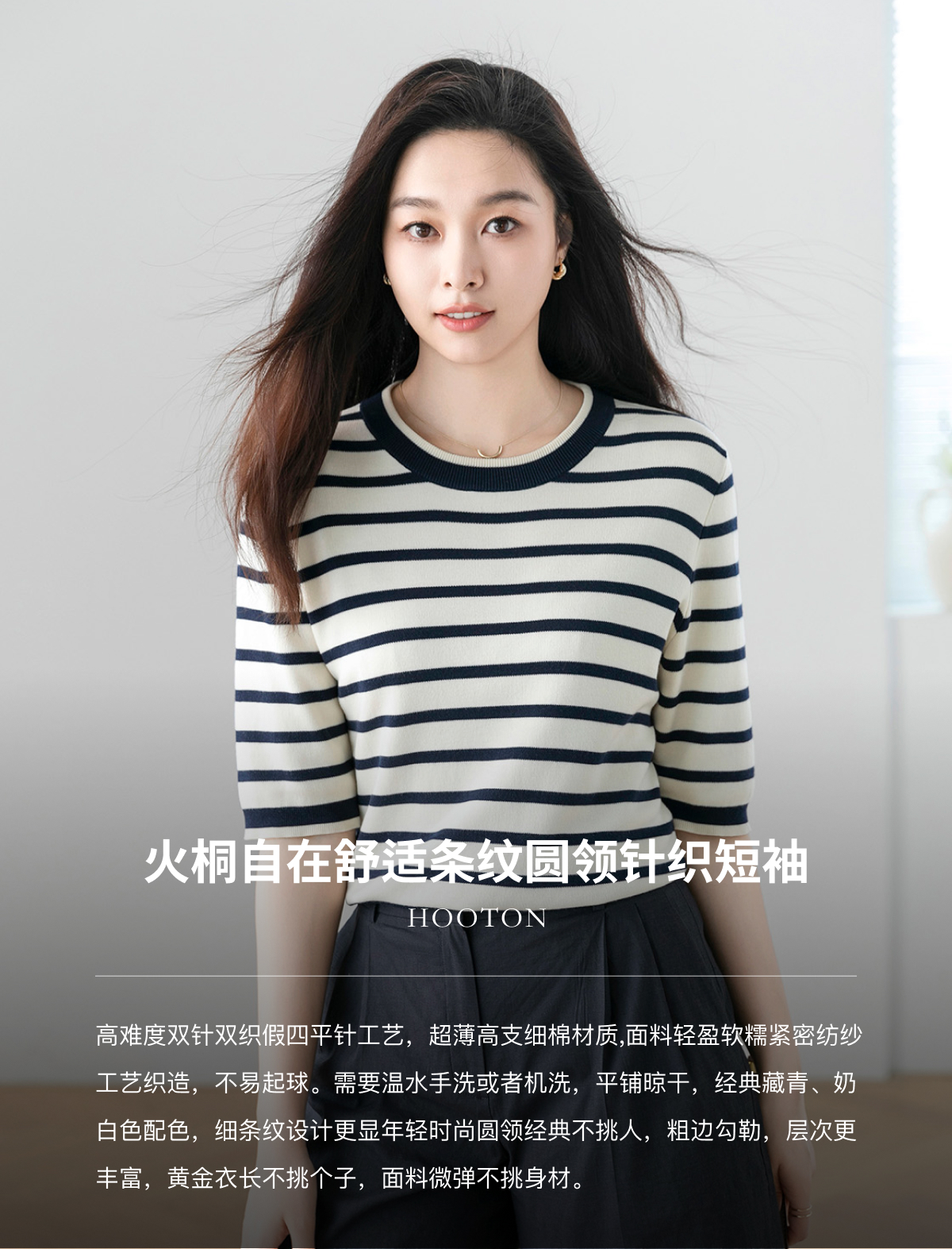 火桐hooton 自在舒适 条纹圆领针织短袖G223
