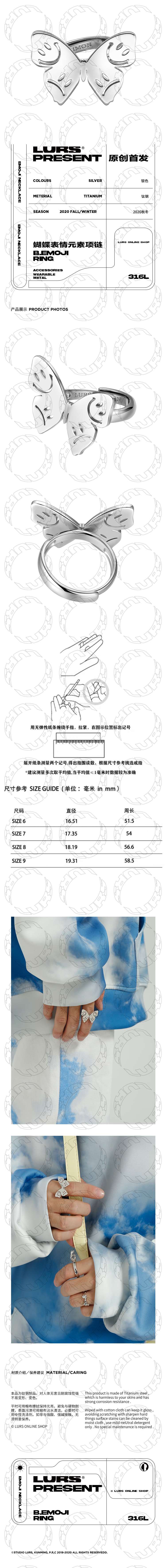 LURS官方原创设计笑脸蝴蝶元素可调节国潮戒指男ins风简约百搭