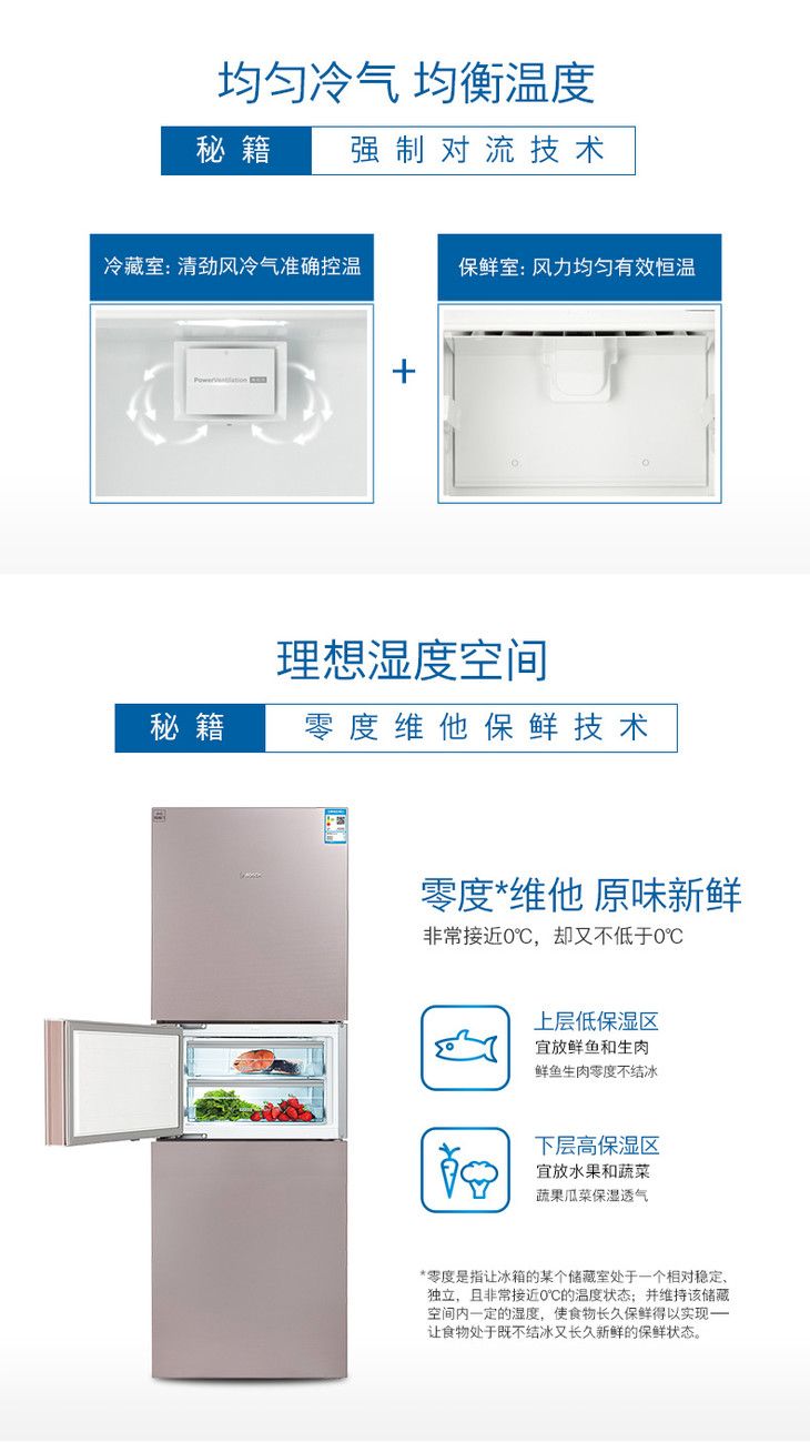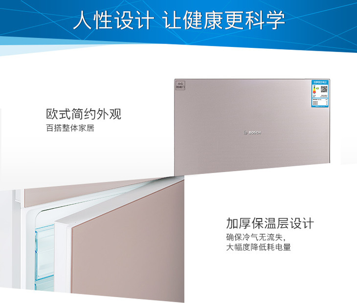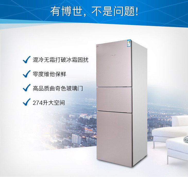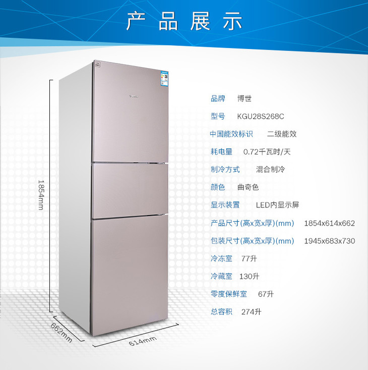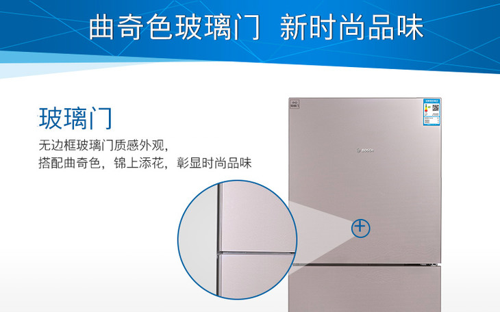 博世 BOSCH 274升大容量混合制冷玻璃门三门冰箱BCD-274W(KGU28S268C)