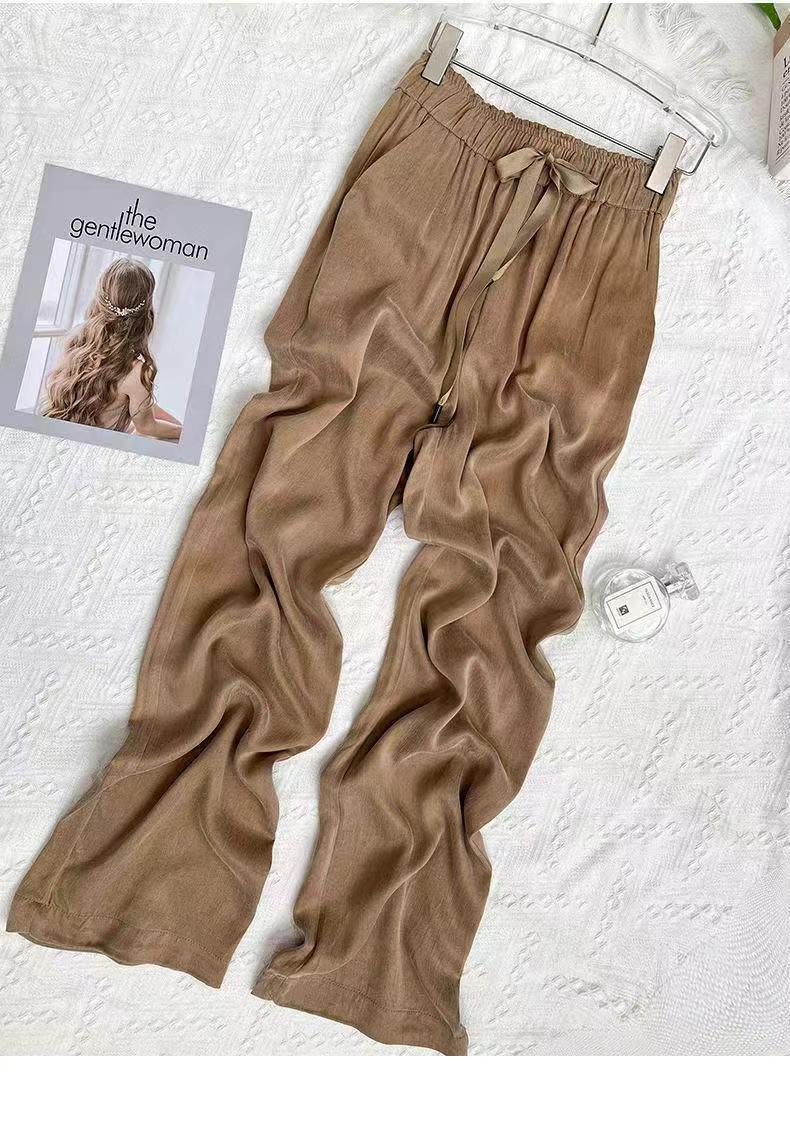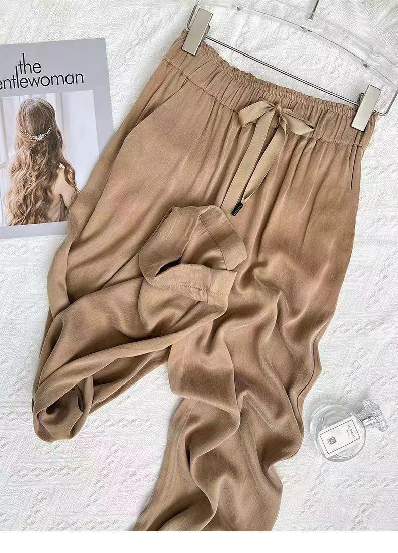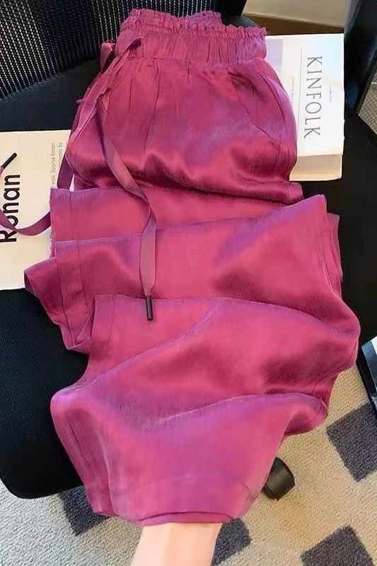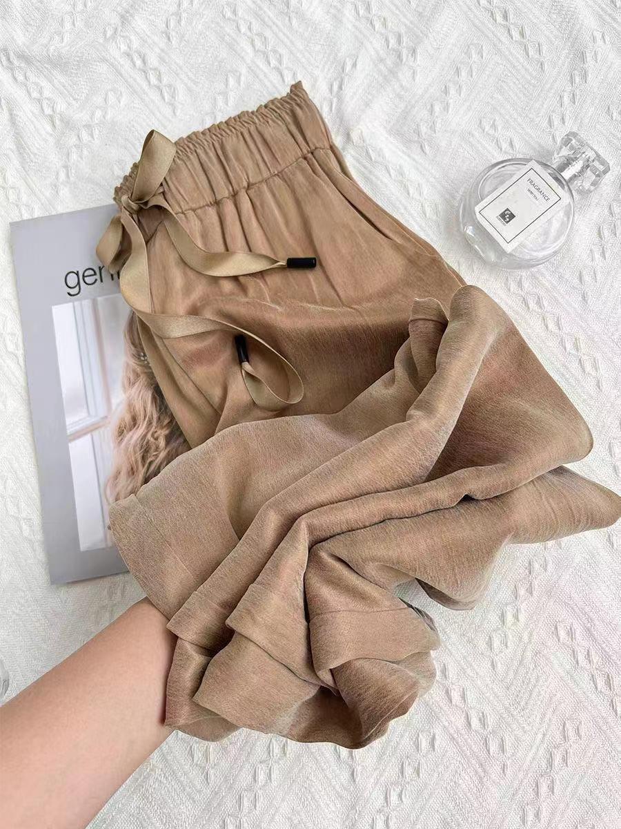 「轻奢感十足!冰冰凉凉❄️」醋酸缎面休闲裤🔥轻薄垂感,清爽又百搭,解锁你的夏日舒适新穿搭✨夏款冰丝凉凉醋酸缎面 夏季薄款阔腿裤 女直筒宽松垂感休闲裤子