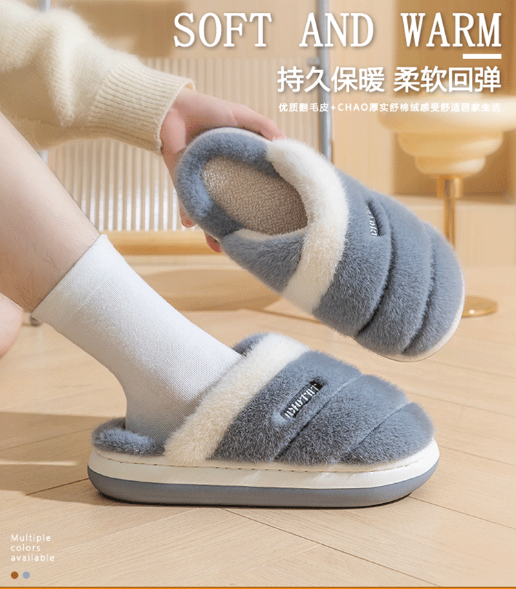 「五款配色!简约高颜值」冬季情侣棉拖鞋 室内家居棉拖鞋保暖防滑耐磨女士棉拖毛毛拖鞋加绒居家布艺