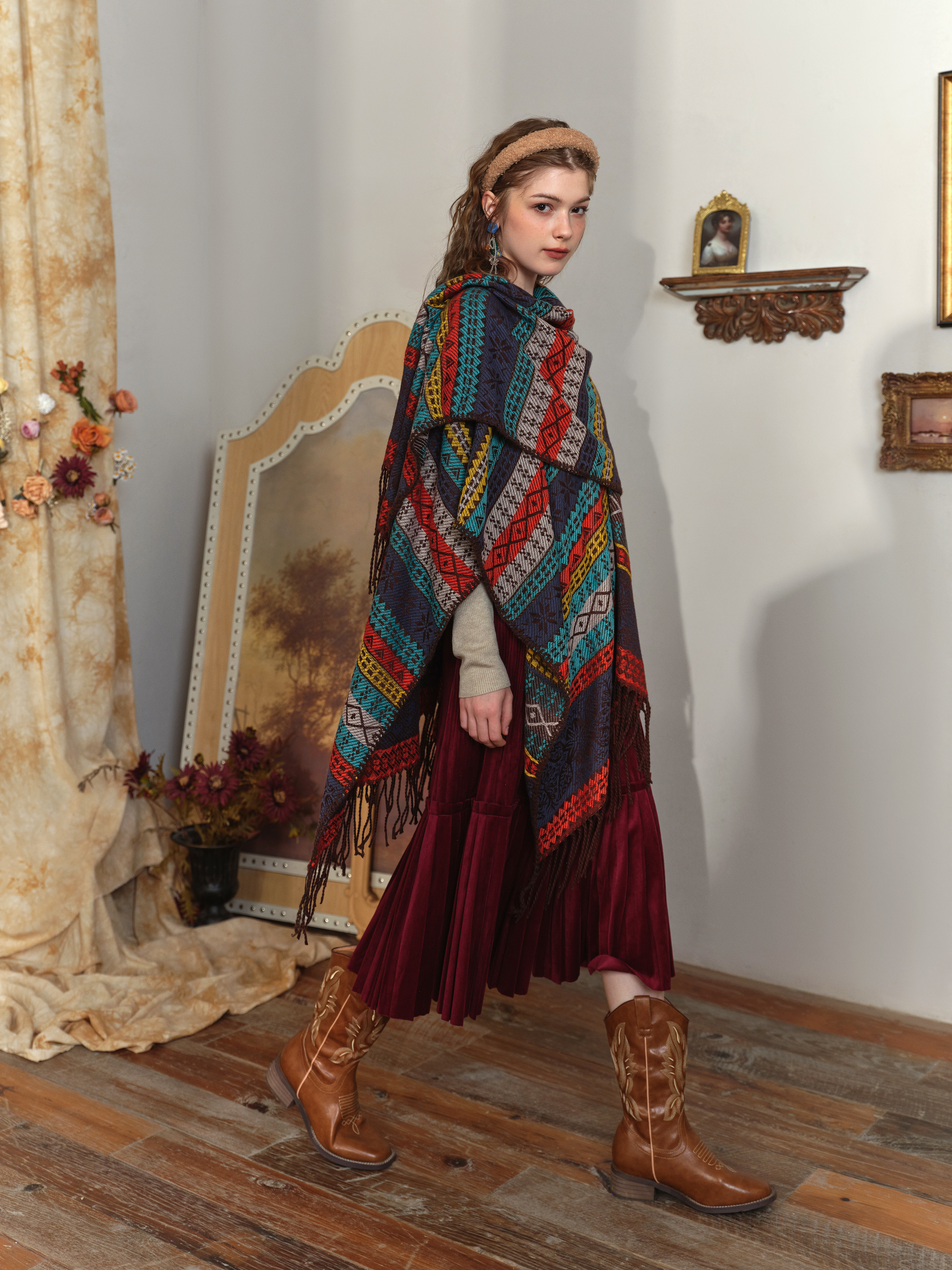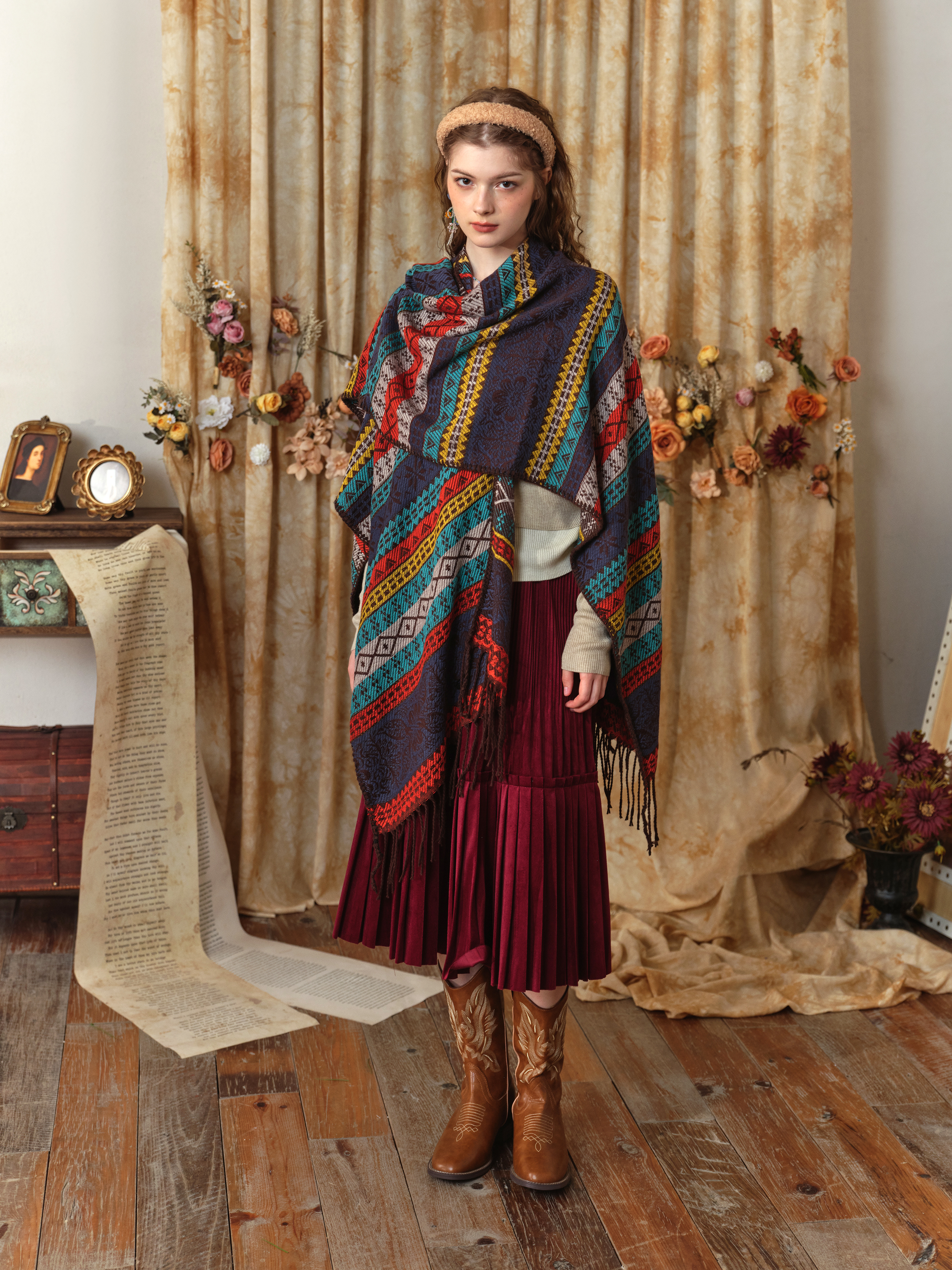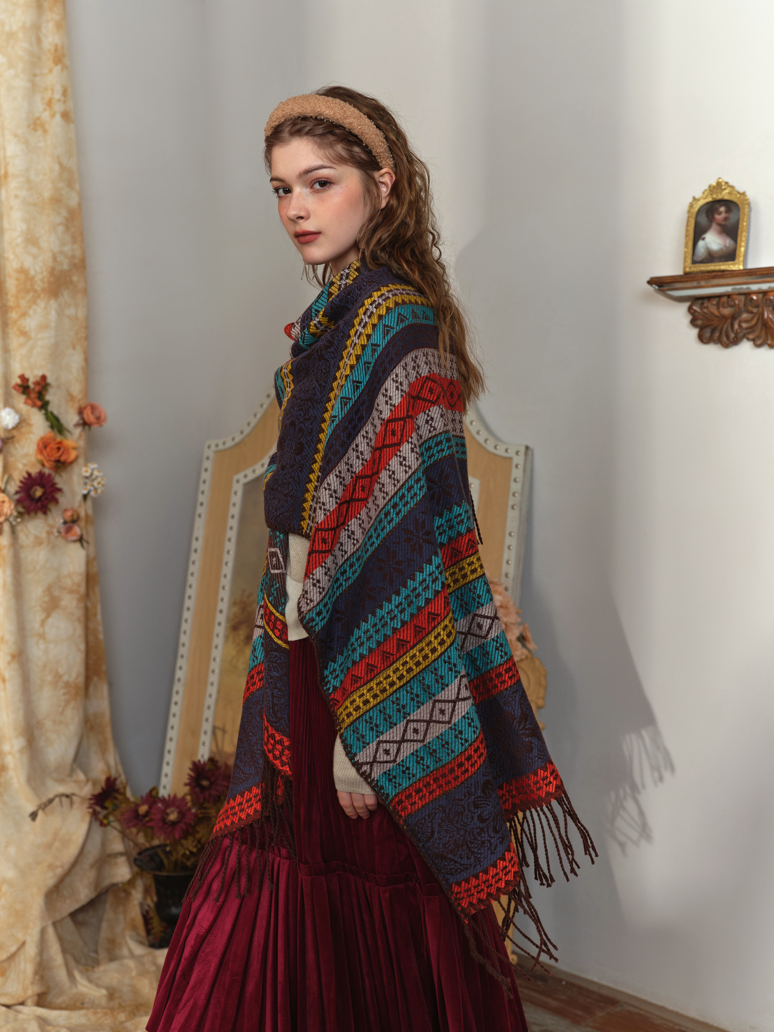 两三事定制2024秋冬新款波西米亚风流苏复古民族风披肩斗篷围巾