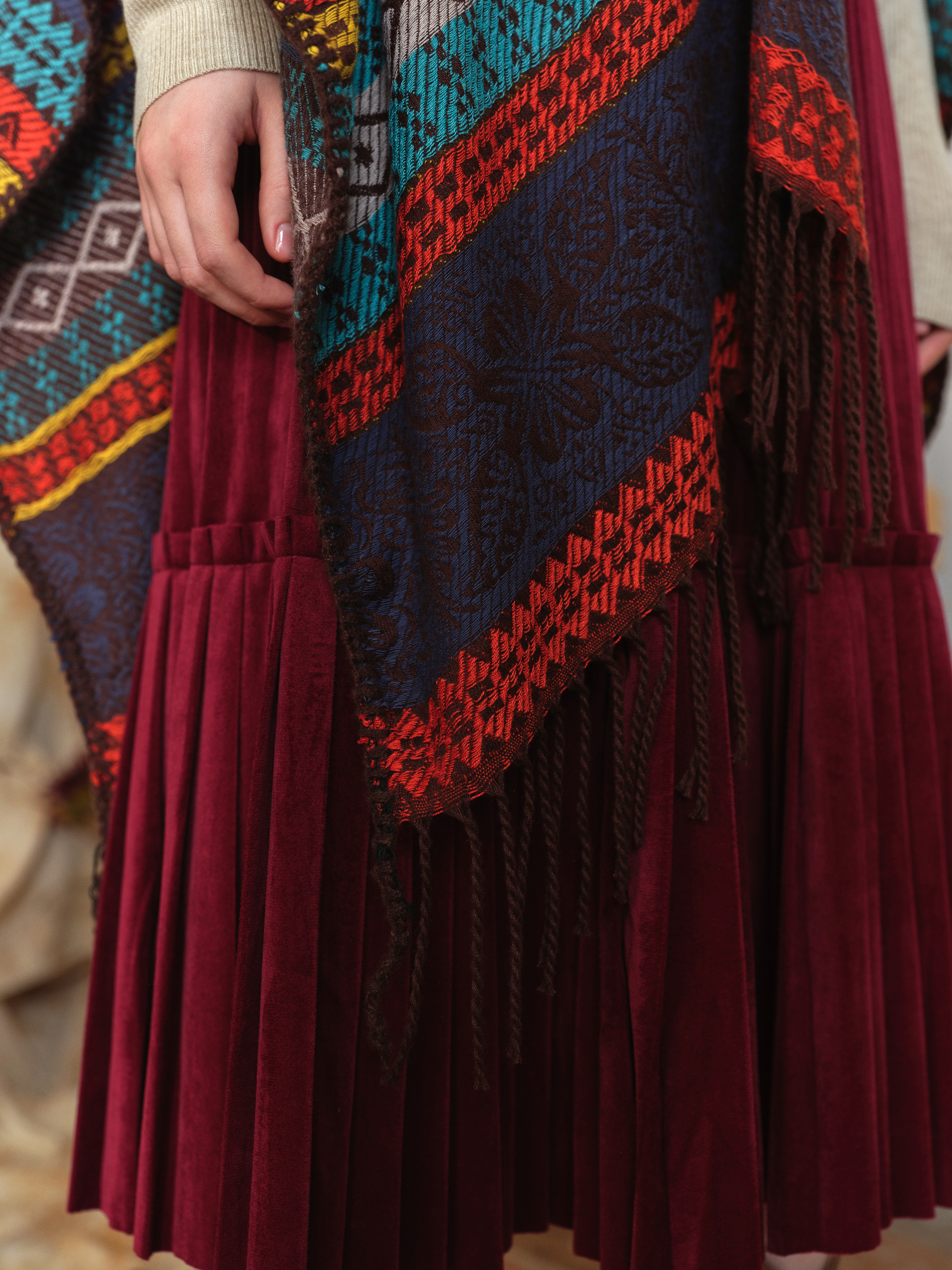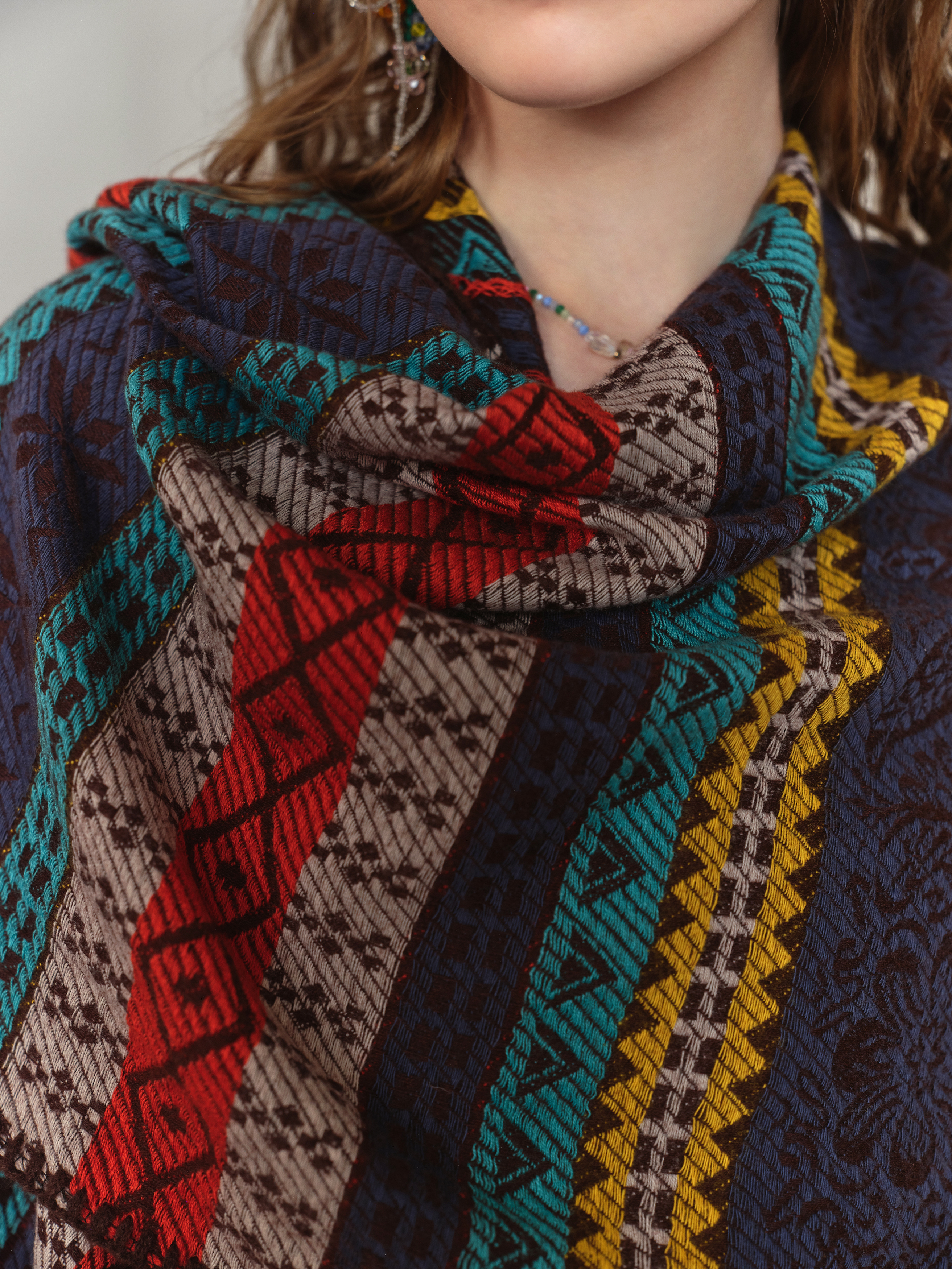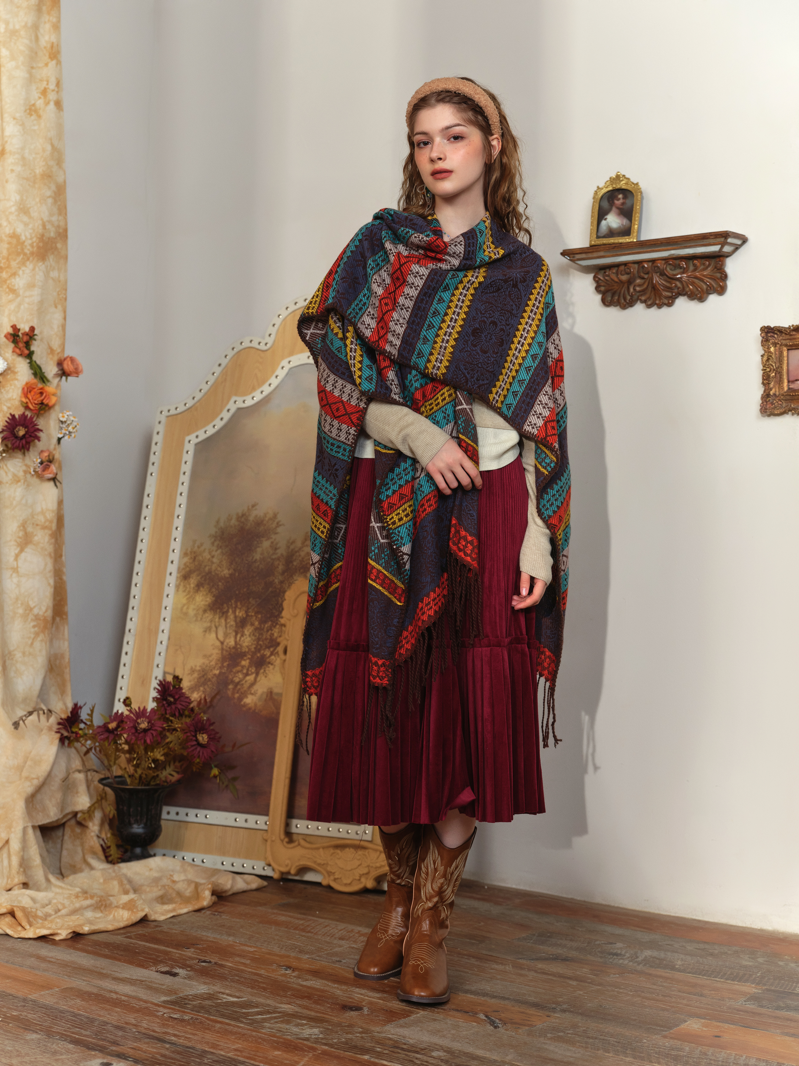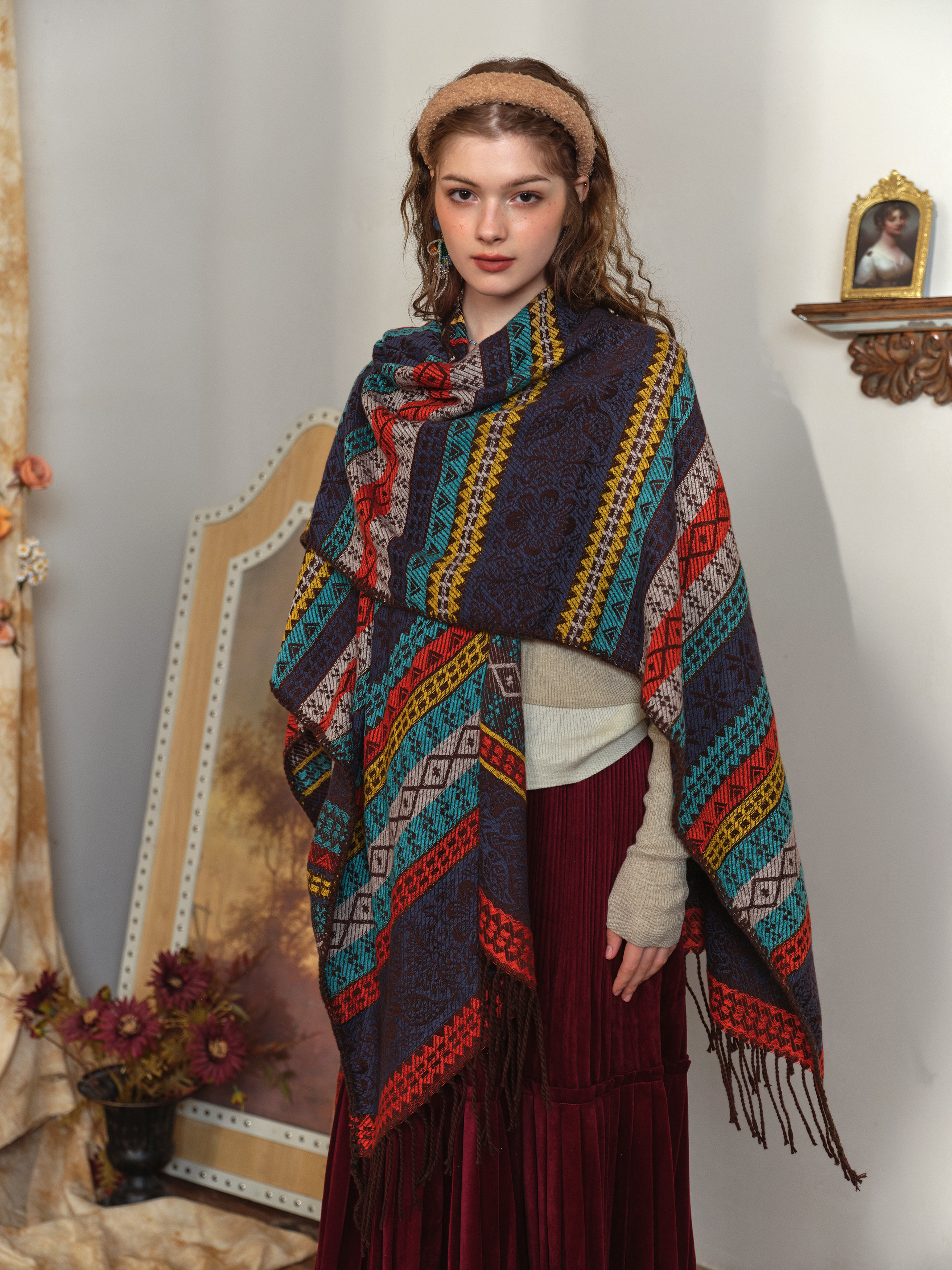 两三事定制2024秋冬新款波西米亚风流苏复古民族风披肩斗篷围巾