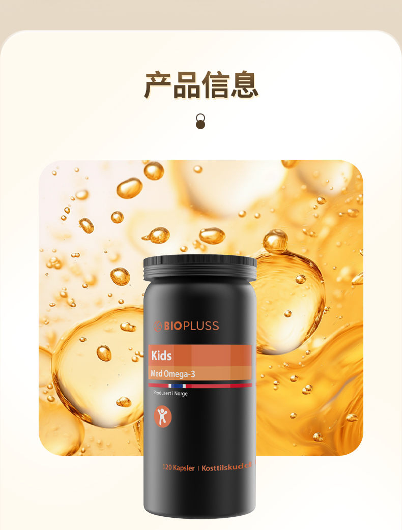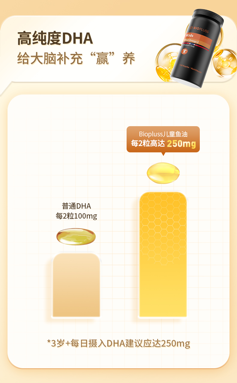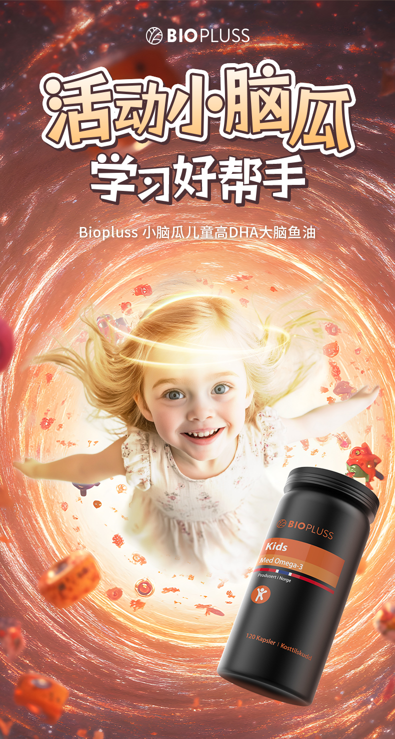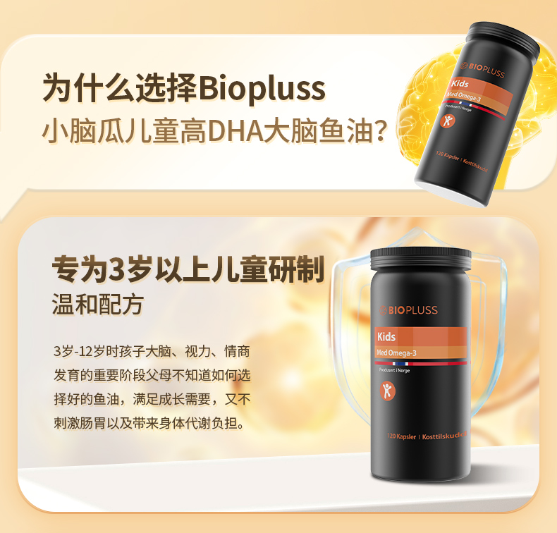 Biopluss挪威进口儿童DHA鱼油软胶囊Omega3增强记忆力