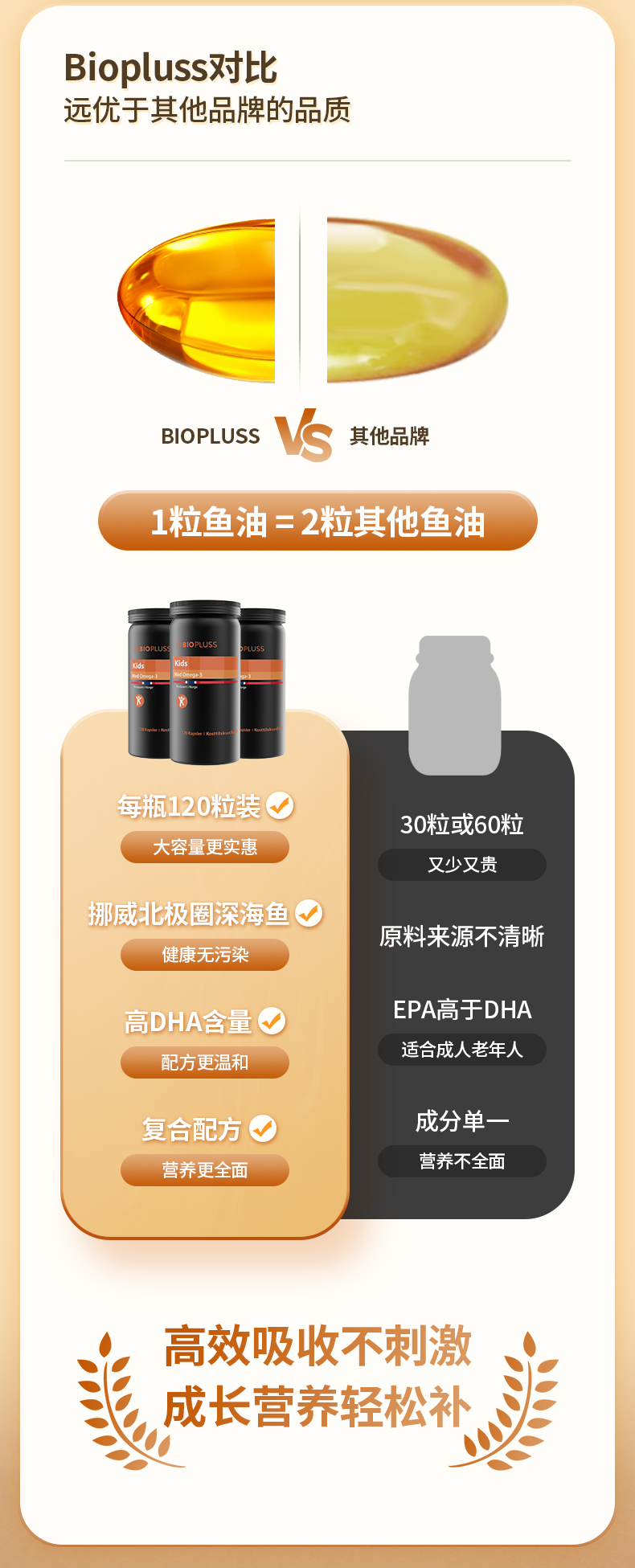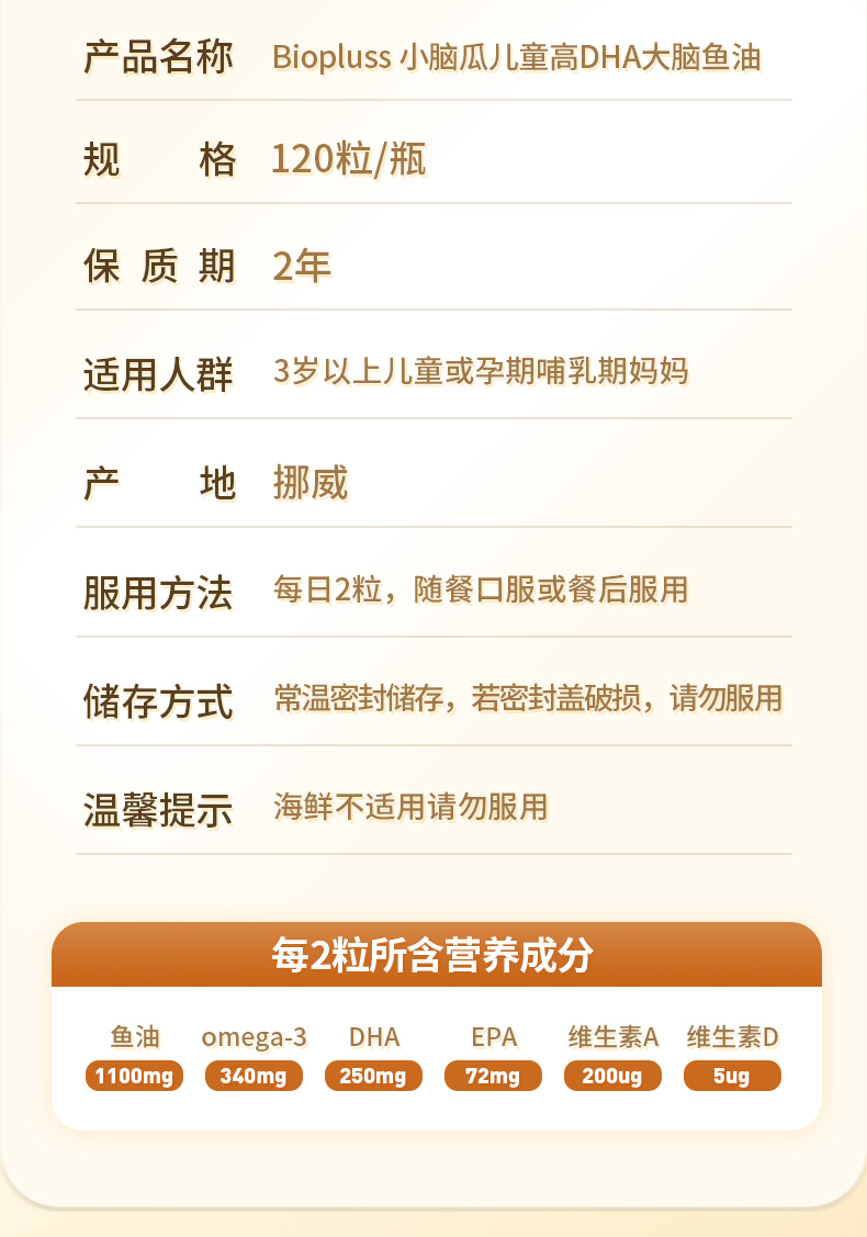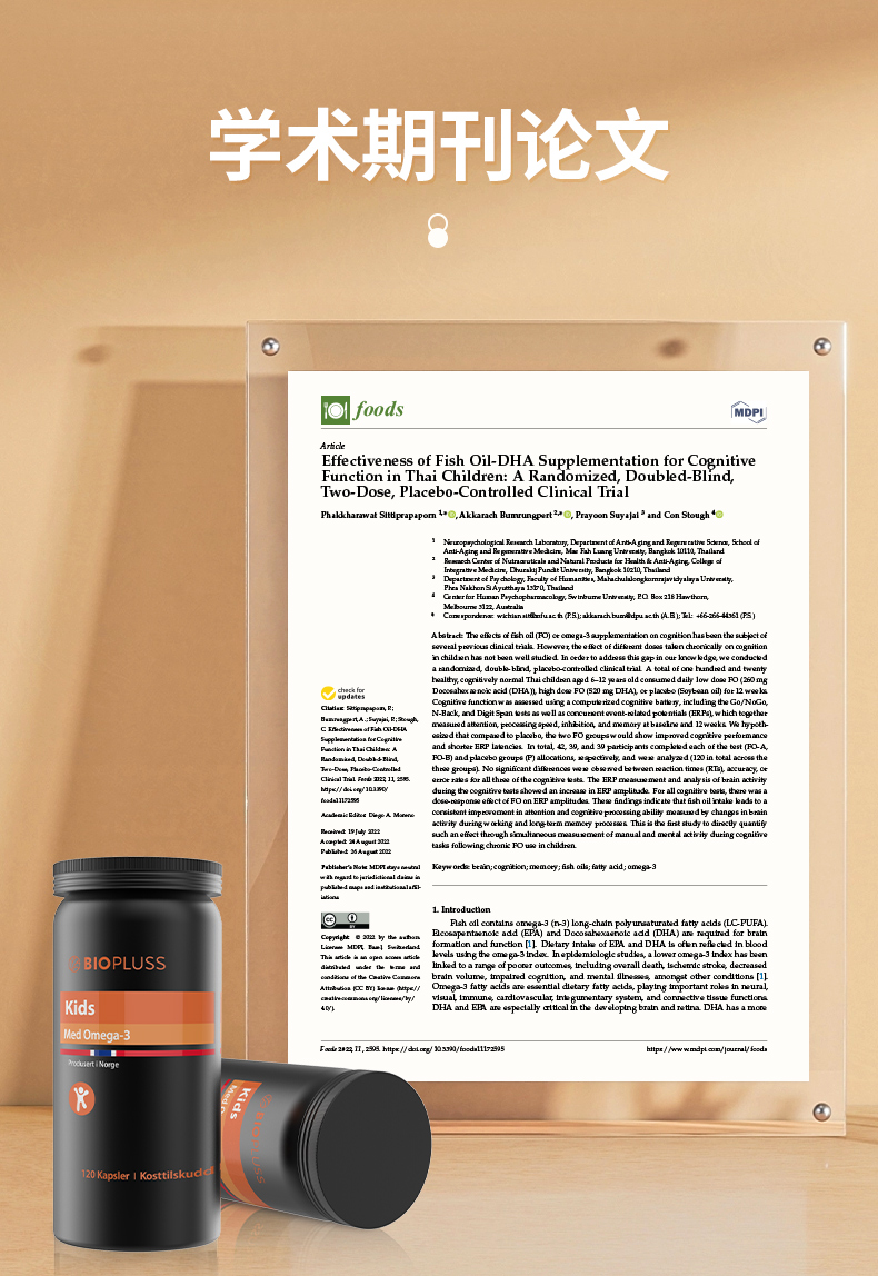 Biopluss挪威进口儿童DHA鱼油软胶囊Omega3增强记忆力