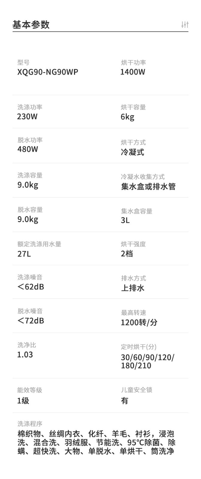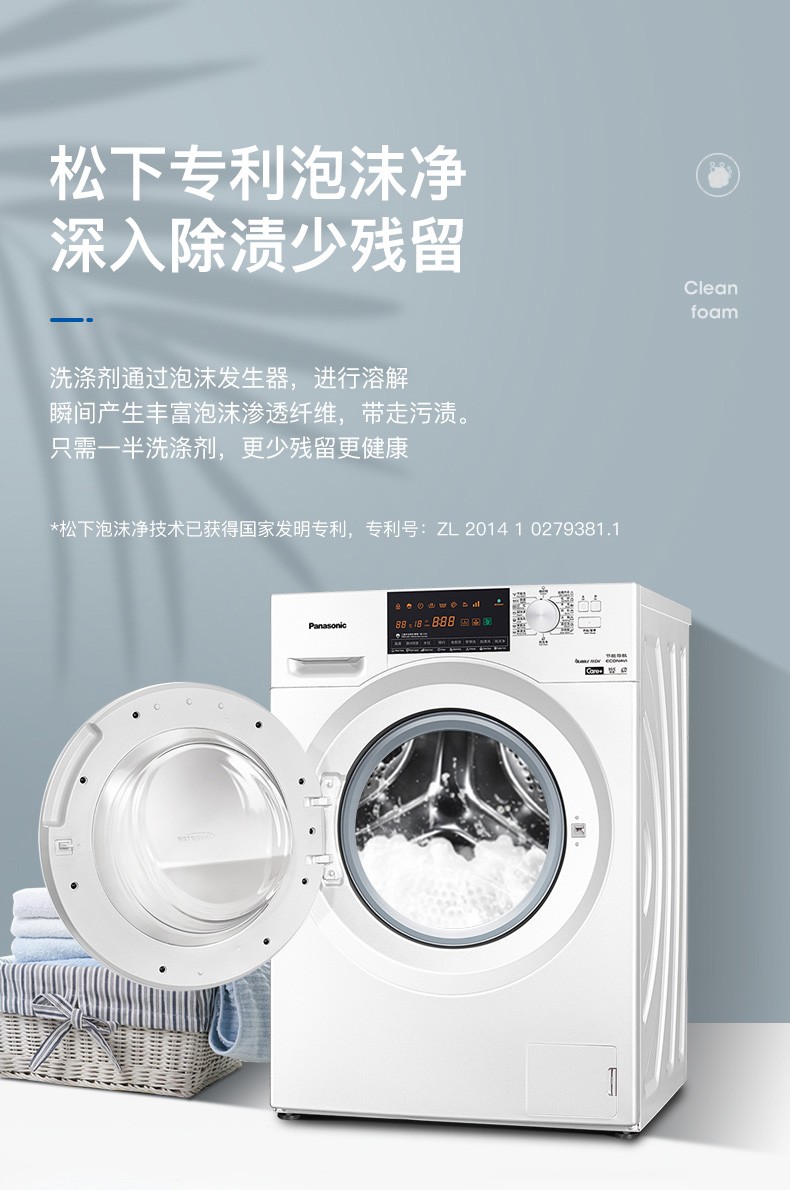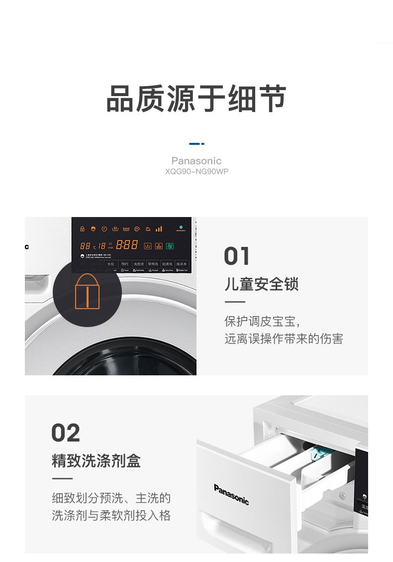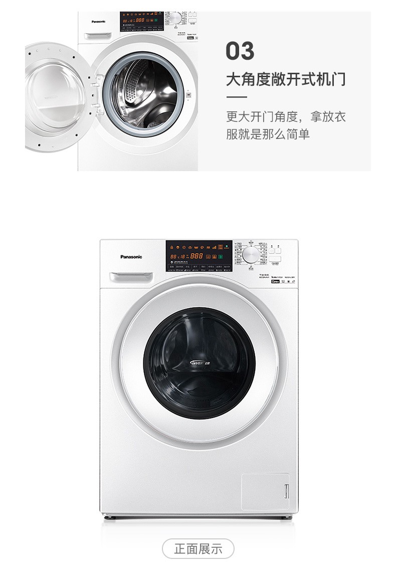 松下(Panasonic)洗烘一体9公斤除菌除螨烘干全自动变频滚筒洗衣干衣机XQG90-NG90WP 白色
