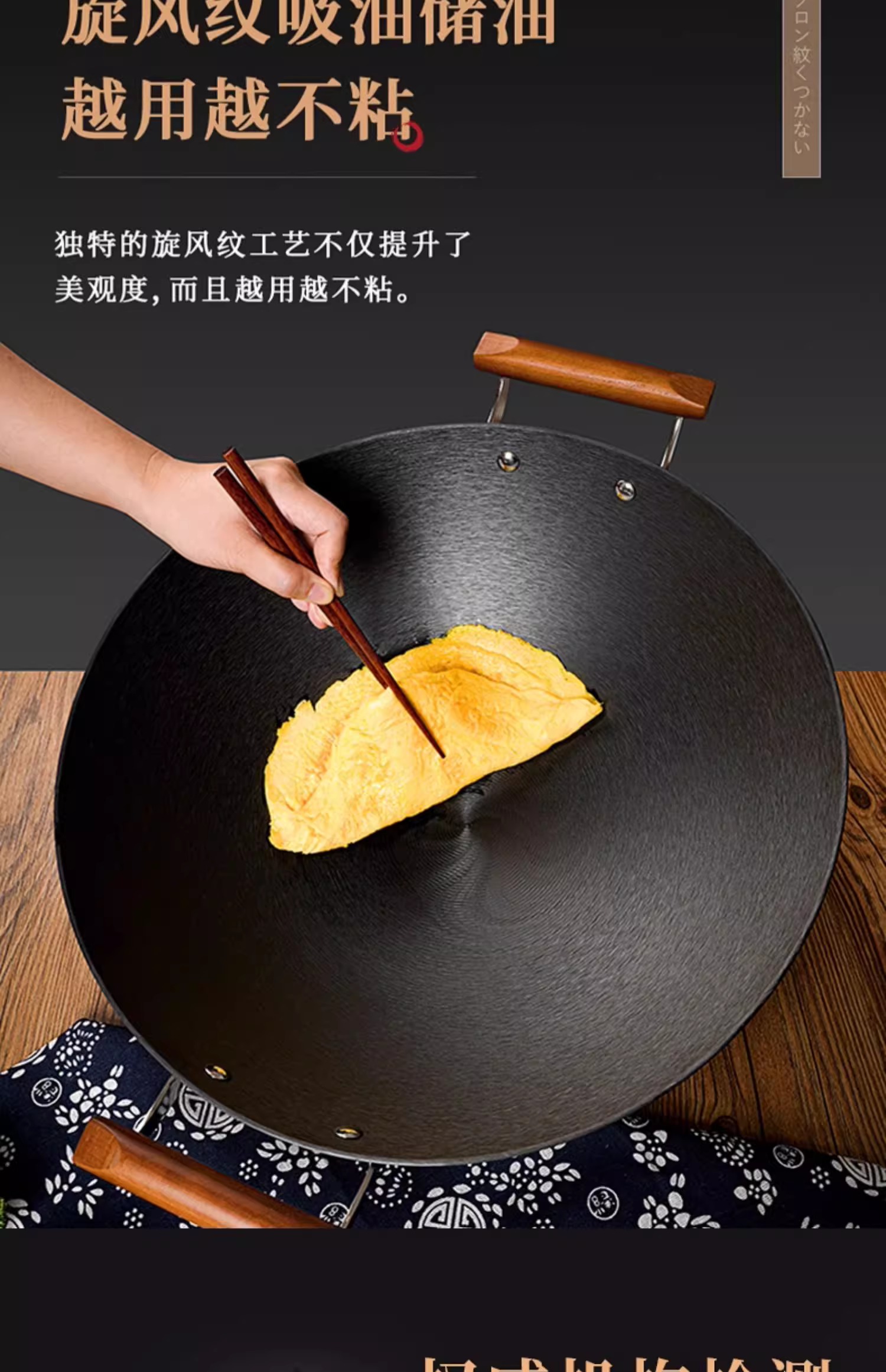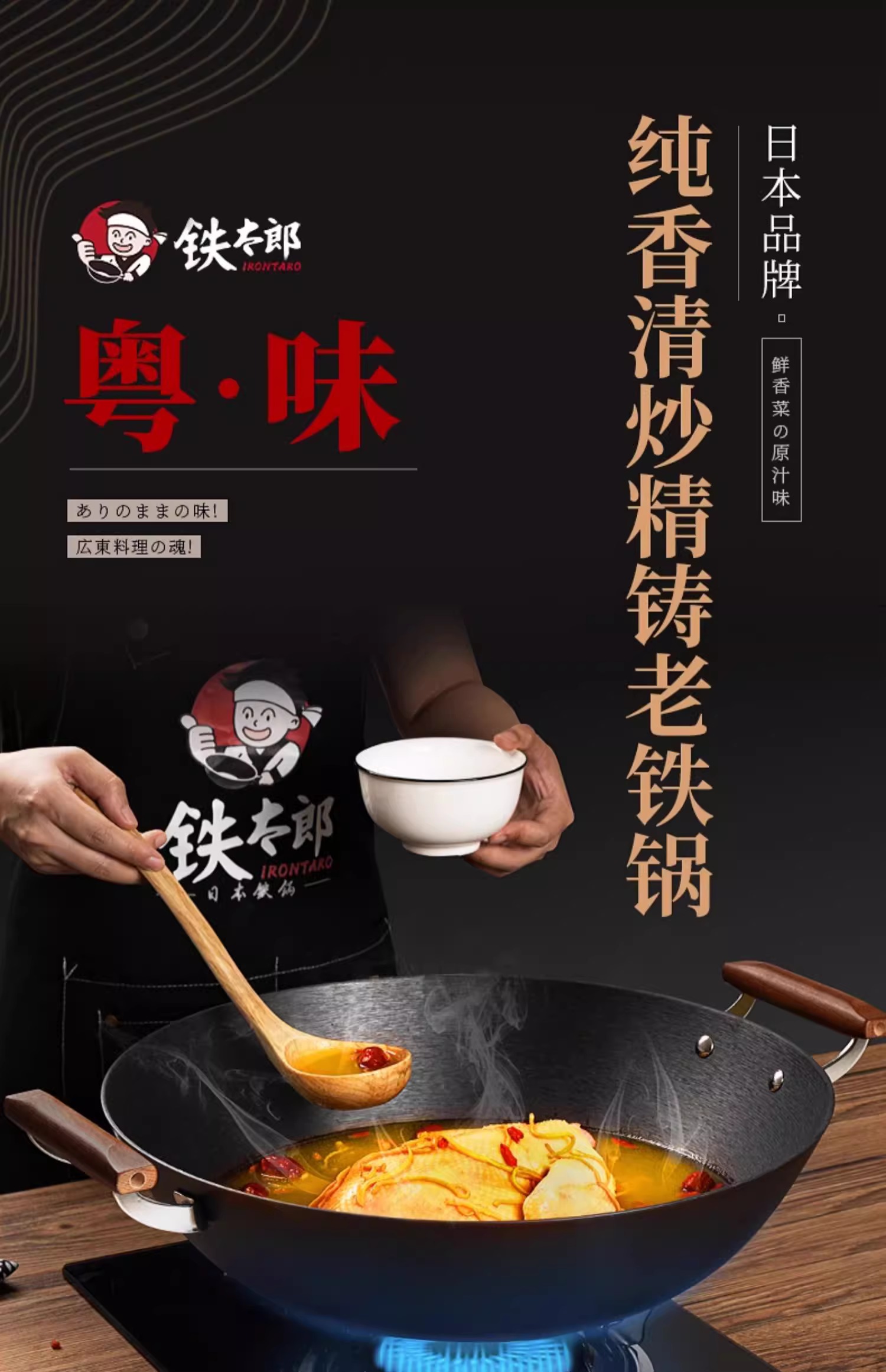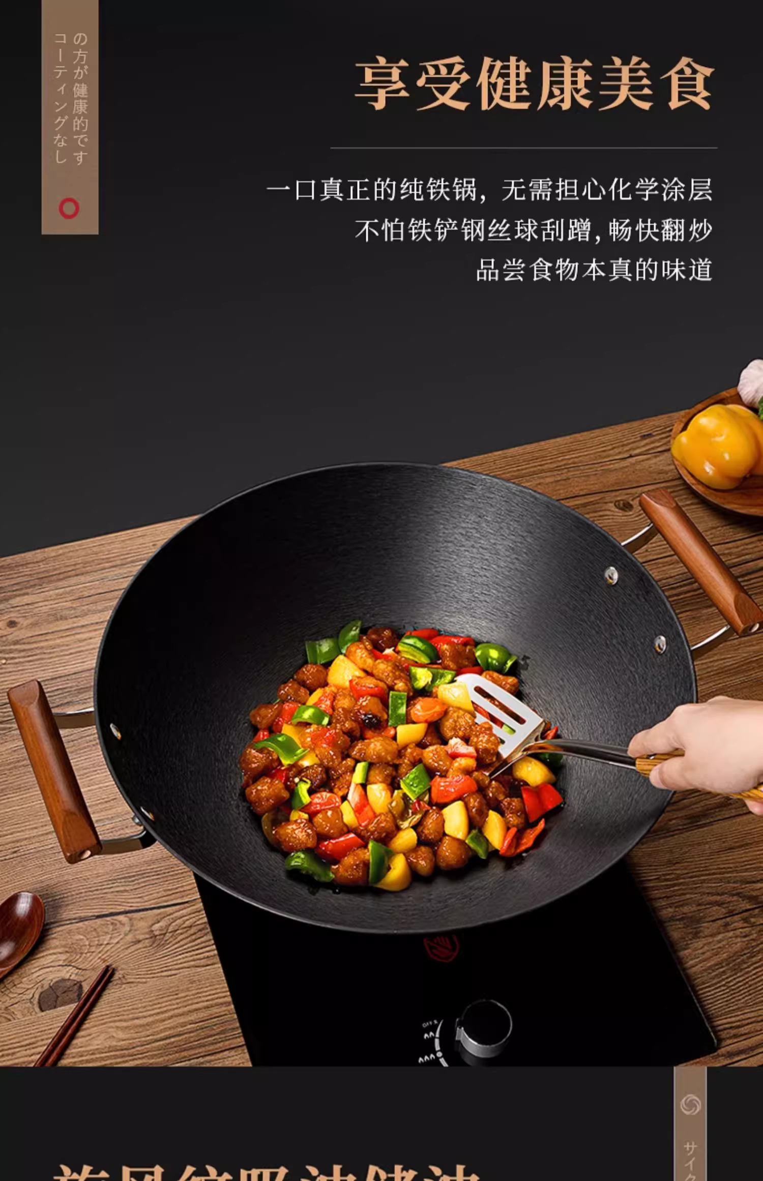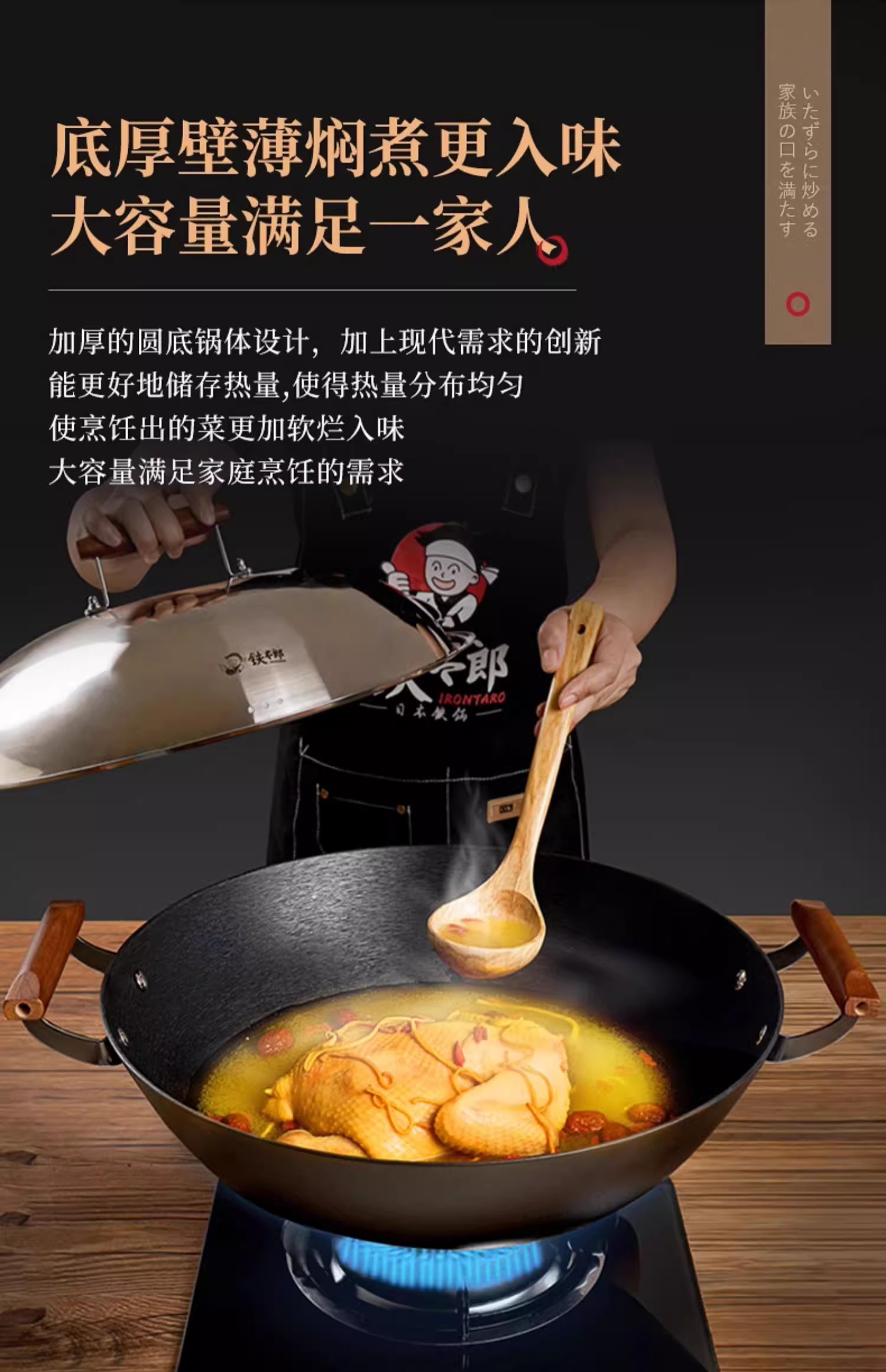 铁太郎铁锅家用炒菜锅中式平尖底双耳铸铁锅无涂层燃气灶适用