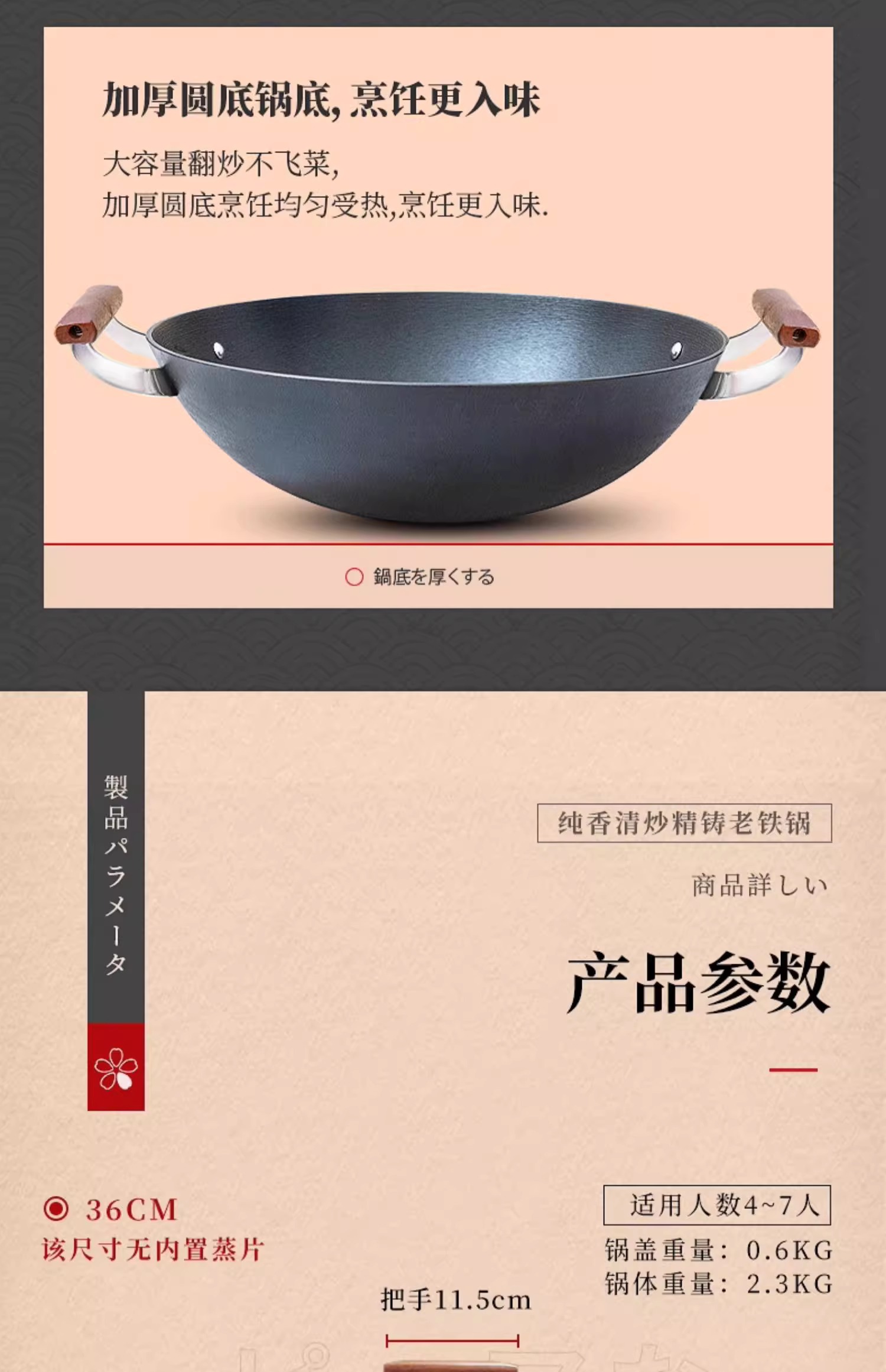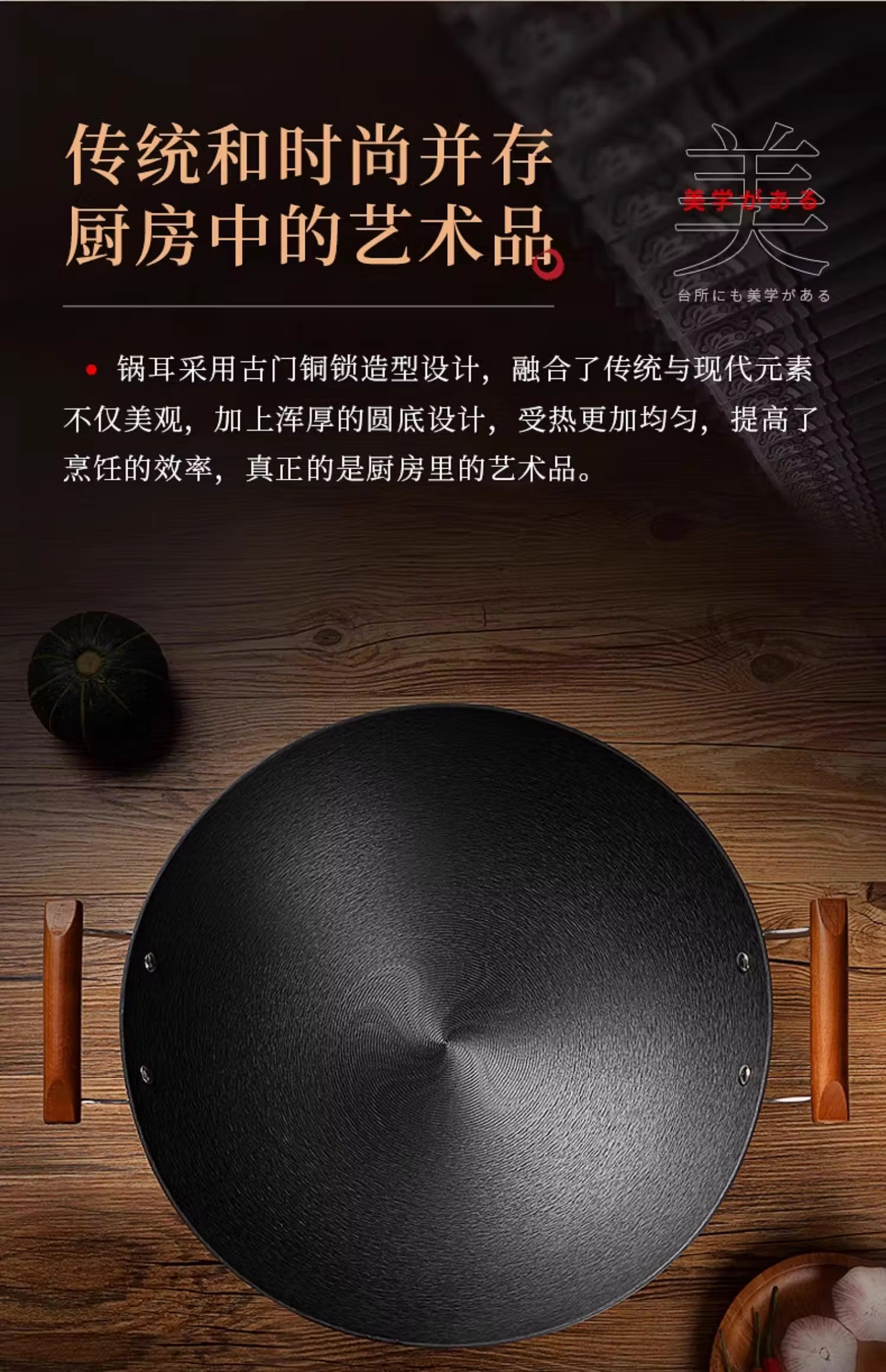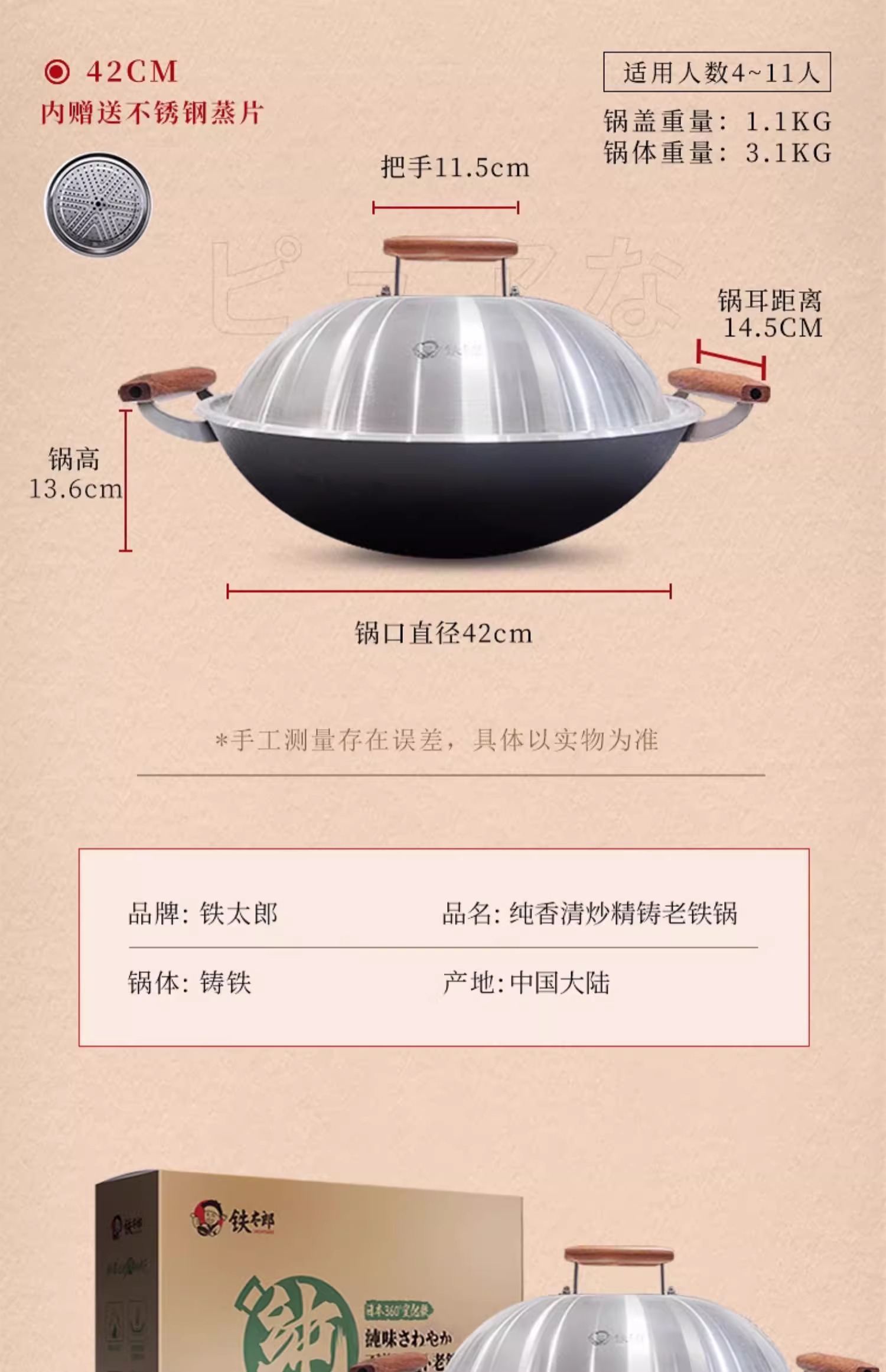 铁太郎铁锅家用炒菜锅中式平尖底双耳铸铁锅无涂层燃气灶适用