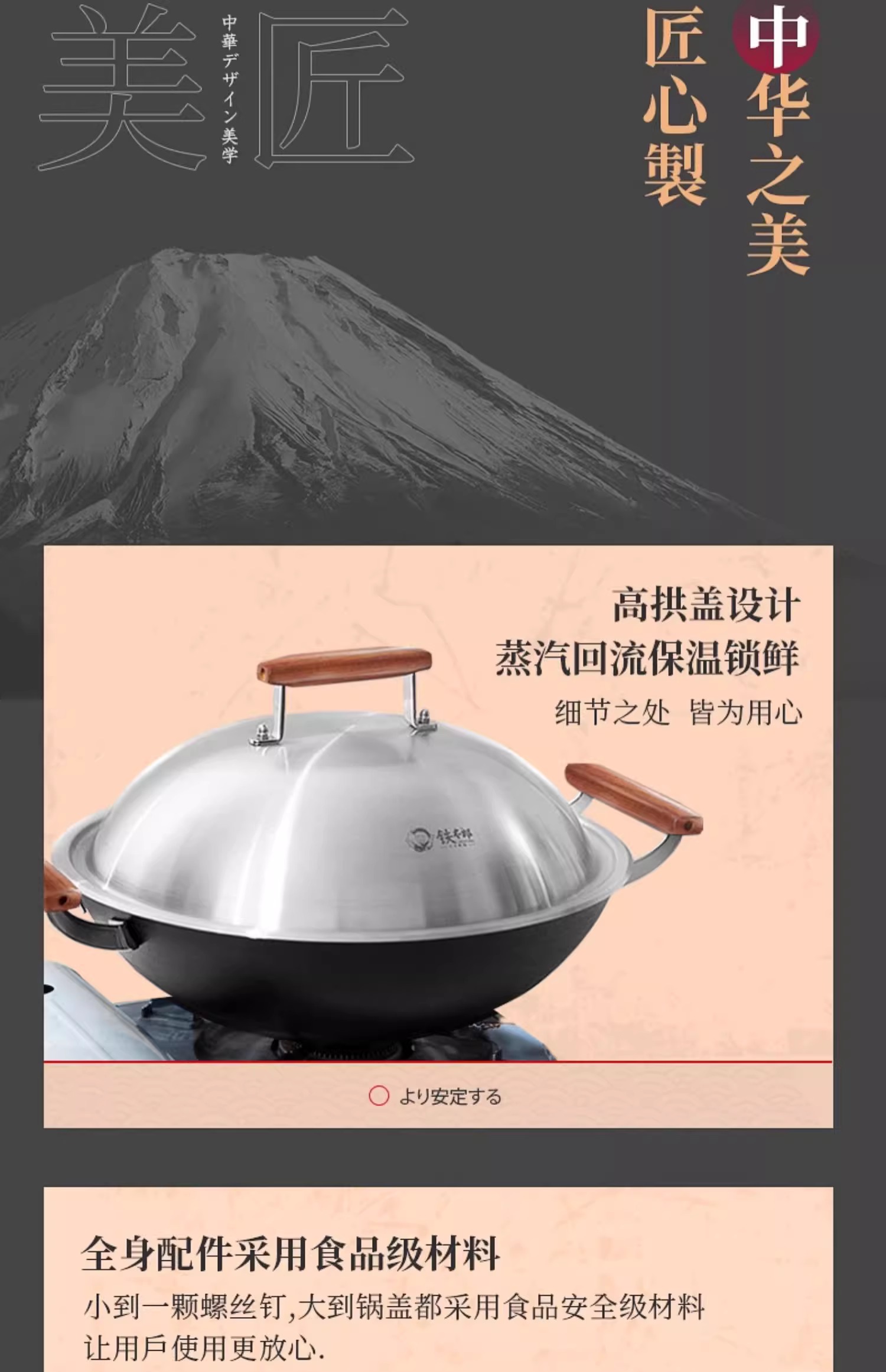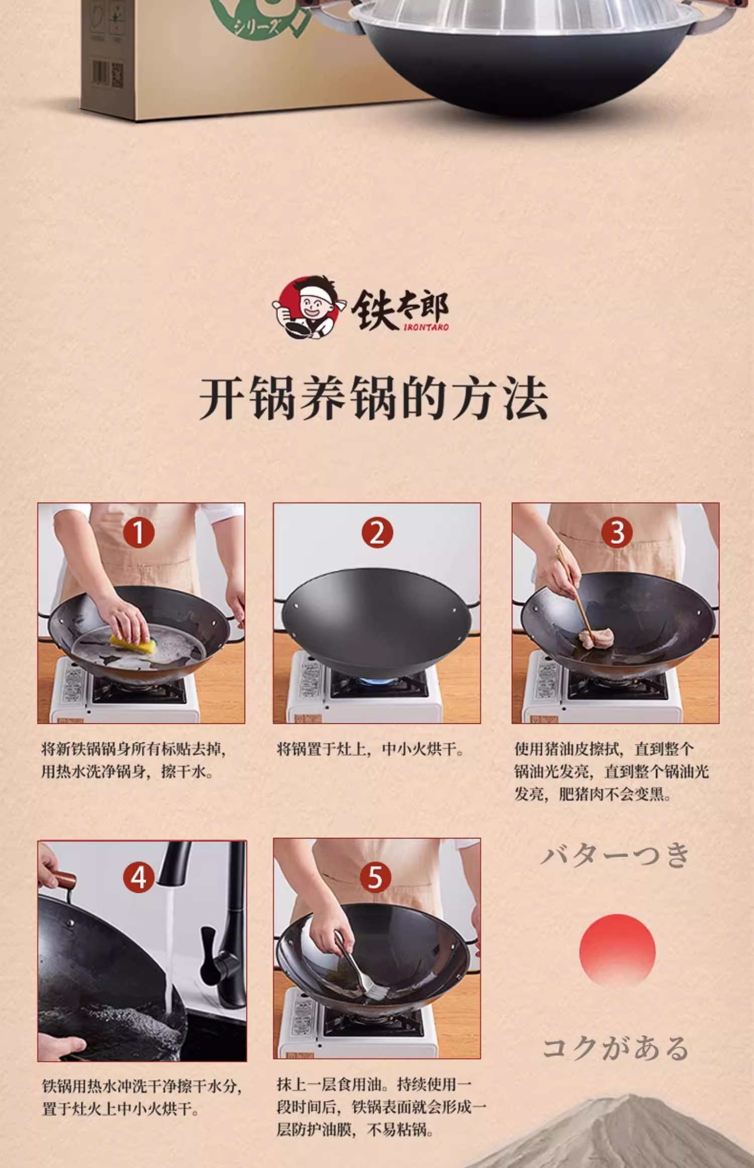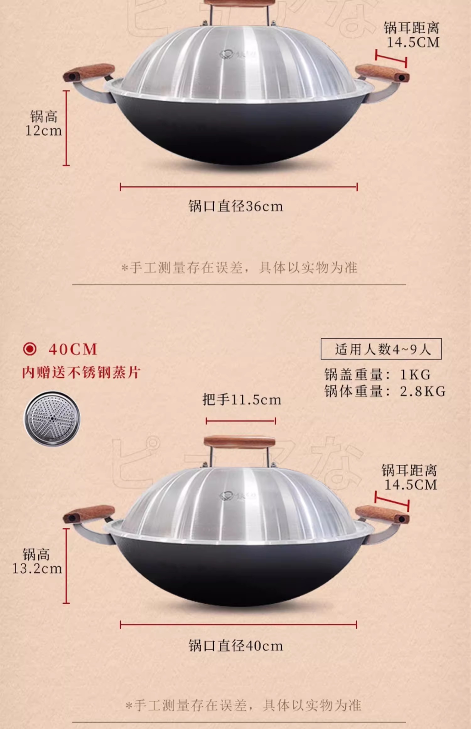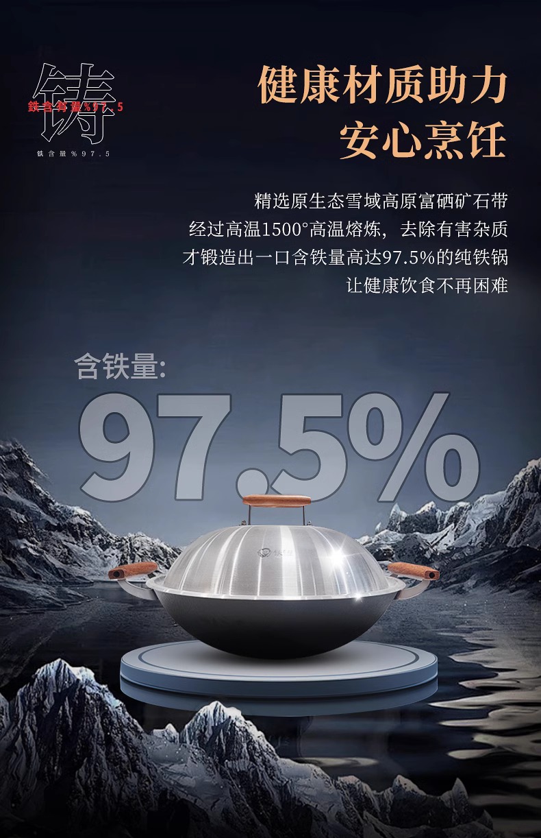 铁太郎铁锅家用炒菜锅中式平尖底双耳铸铁锅无涂层燃气灶适用