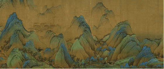 一幅青山绿水的千里江山图,隔上千年都美得摄人心魄,江山浩渺,气势开阔: