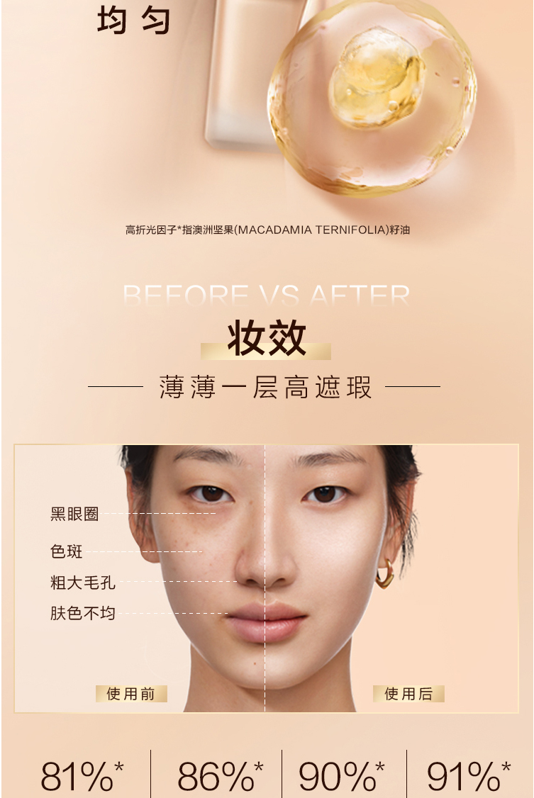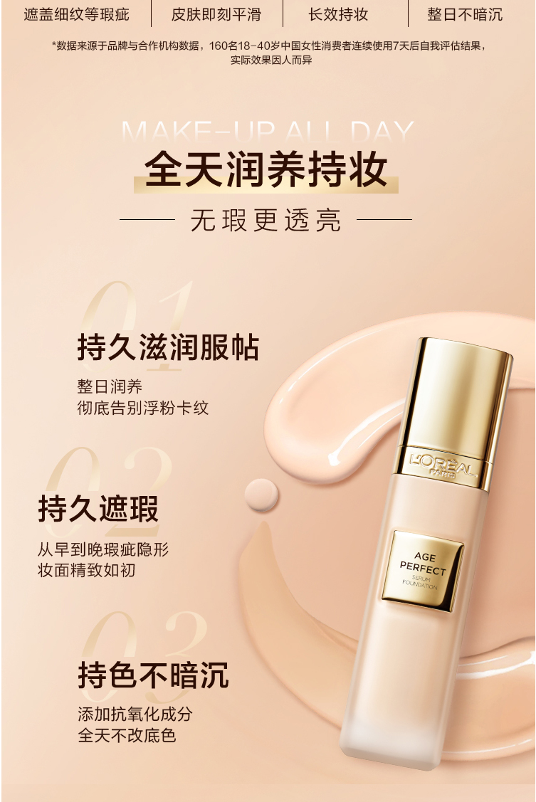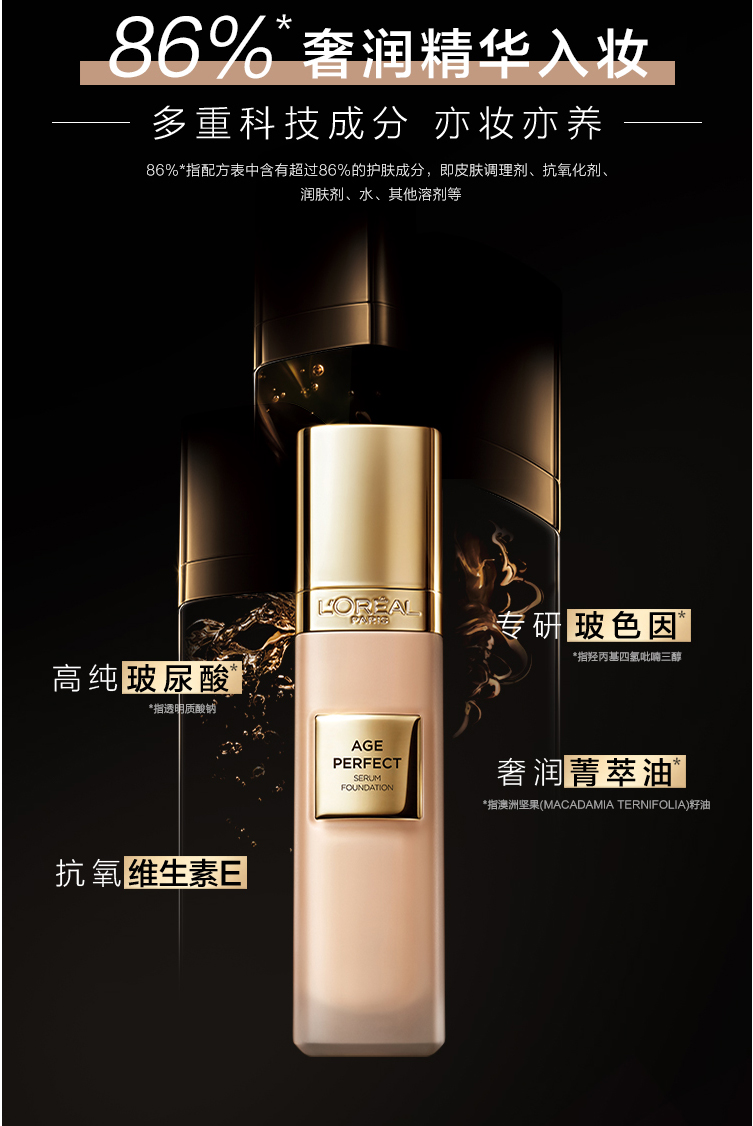 欧莱雅金致臻颜柔光无暇精华粉底液小金牌粉底液 30ML