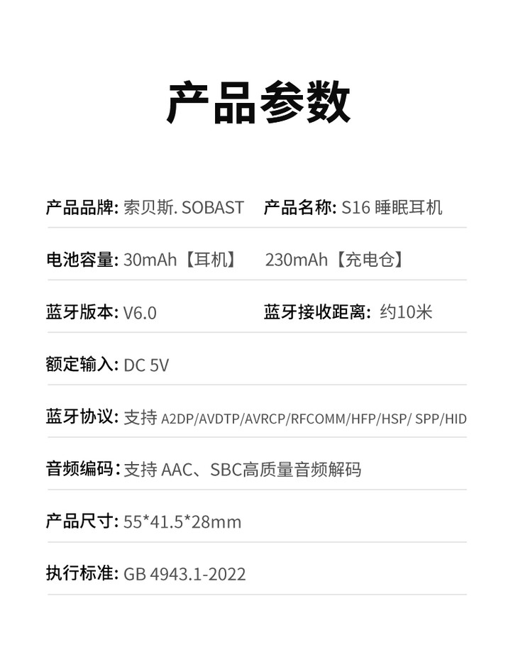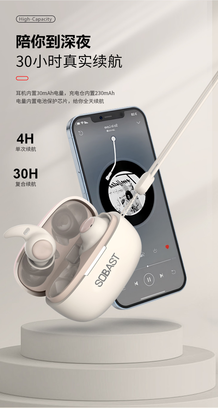 【SOBAST S16睡眠耳机】无感佩戴 入耳式设计 高清音质 小巧便携(送精致挂绳)