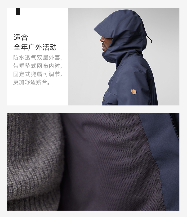 北极狐男士户外保暖防风雨透气夹克连帽拉链外套 86900