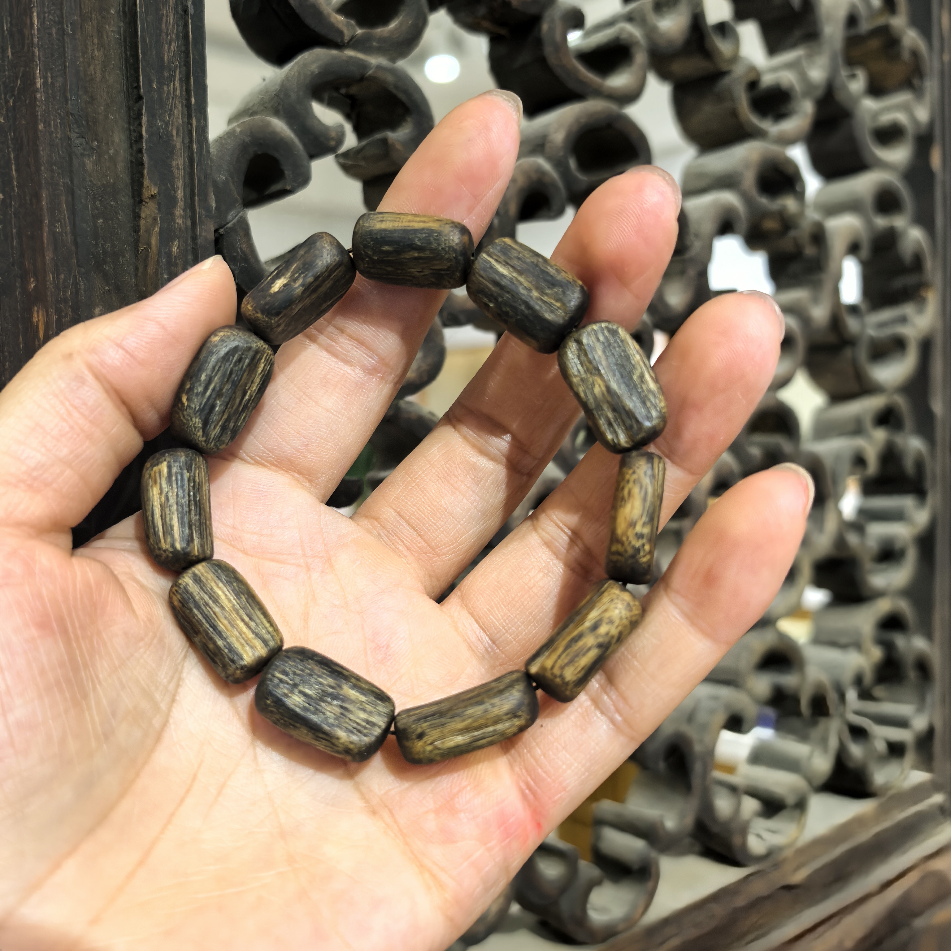 LT0002°绿檀四方来财珠|朱砂莲花鼓珠手链手串