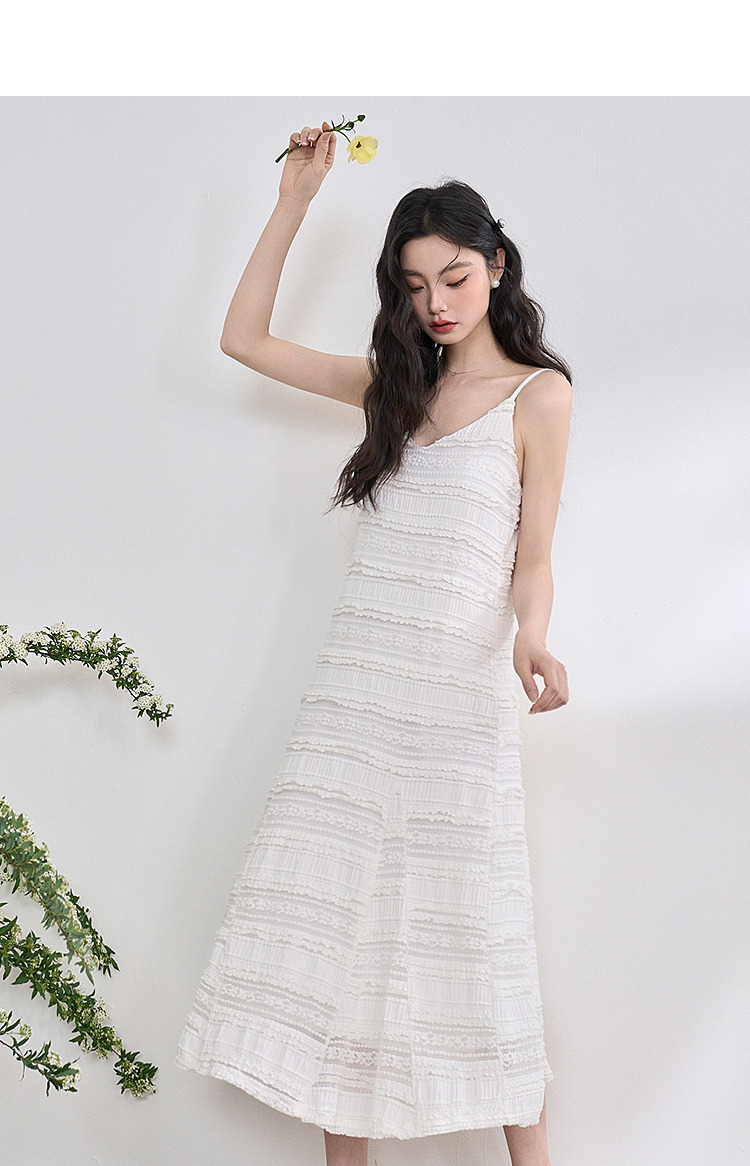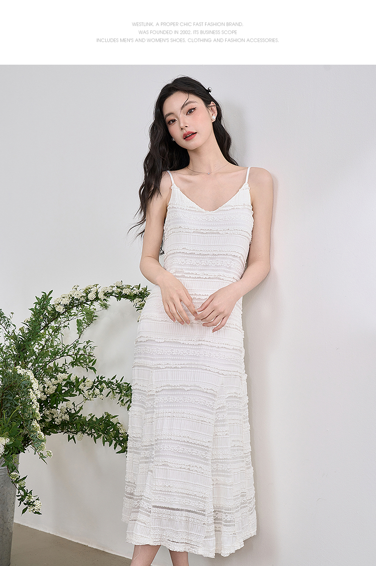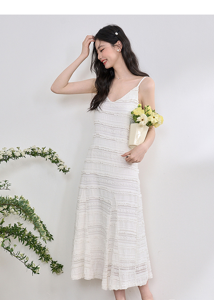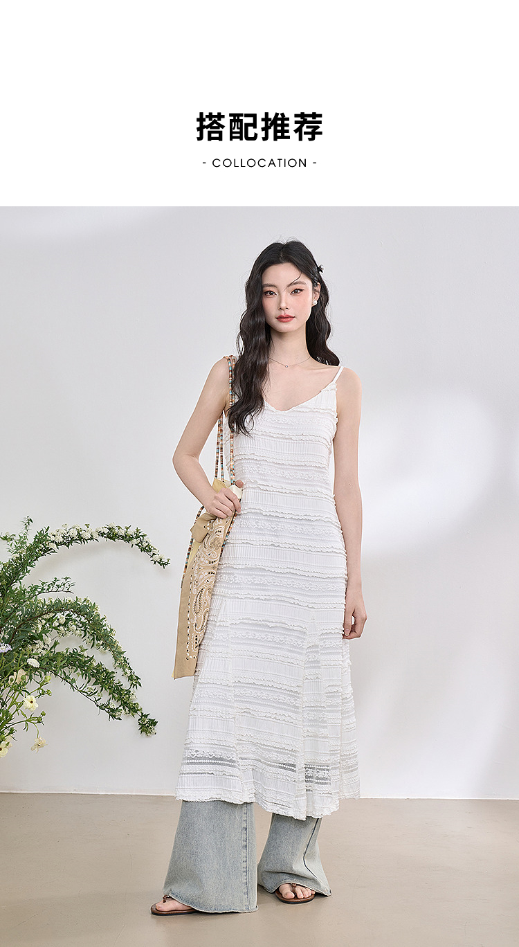 【肌理感蕾丝】经典优雅V领吊带连衣裙女春夏收腰长裙V0550120