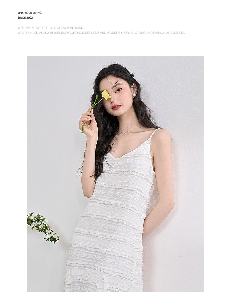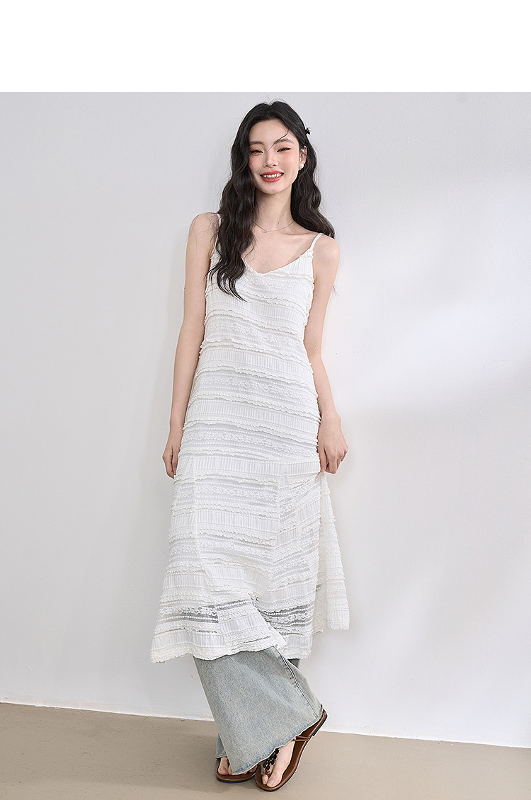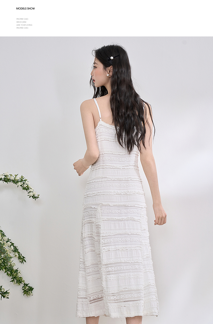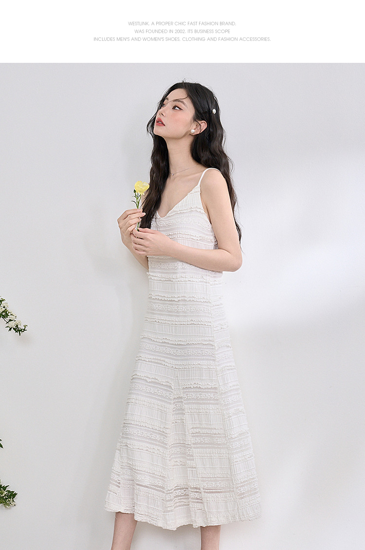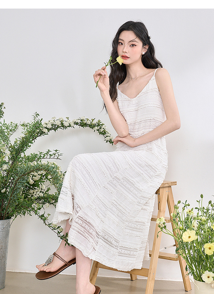 【肌理感蕾丝】经典优雅V领吊带连衣裙女春夏收腰长裙V0550120