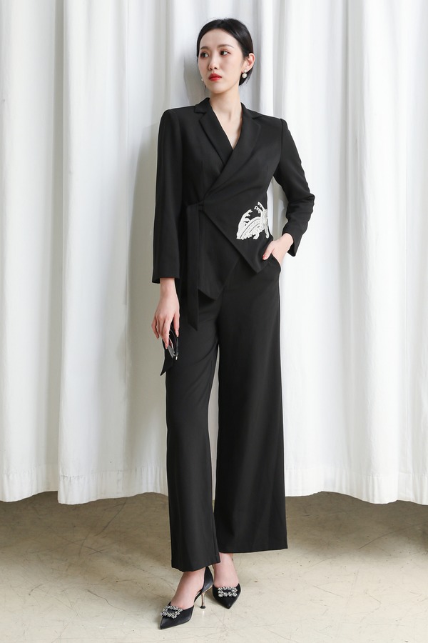 ELLA JADE 中国风刺绣收腰上衣阔腿裤套装 13642