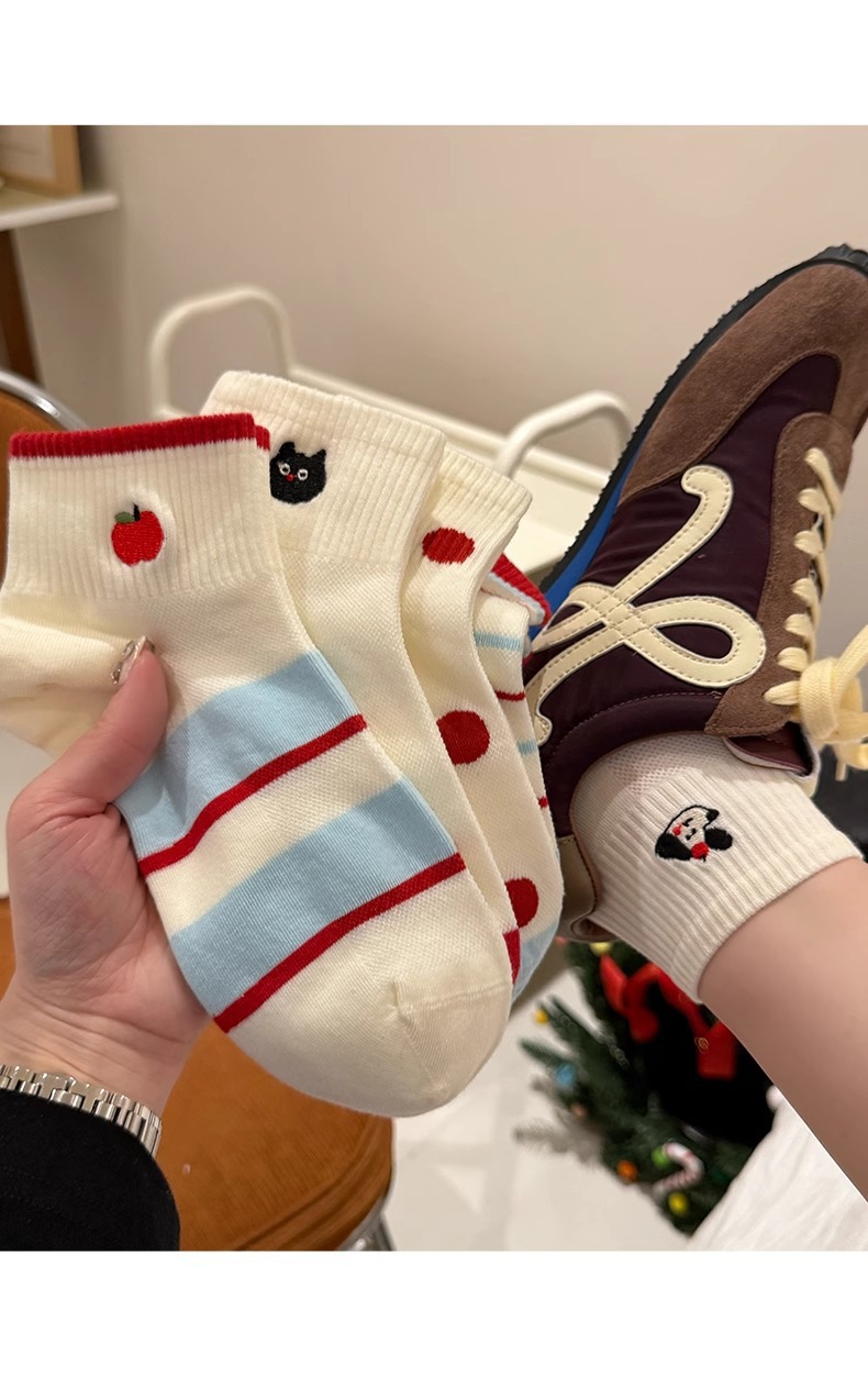 【秒杀!5对特惠装更划算】 女夏季薄款纯棉短筒袜 ,少女感爆棚的纯棉短袜!吸汗透气不闷脚,运动风+刺绣萌宠,韩系低帮时尚感拉满💕