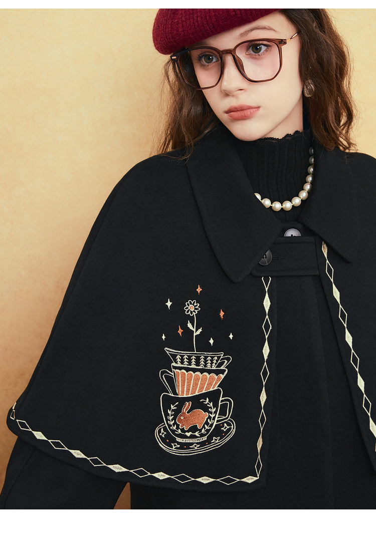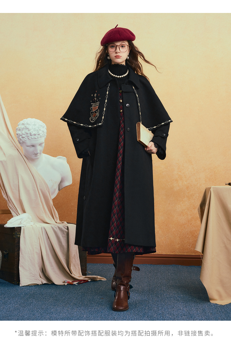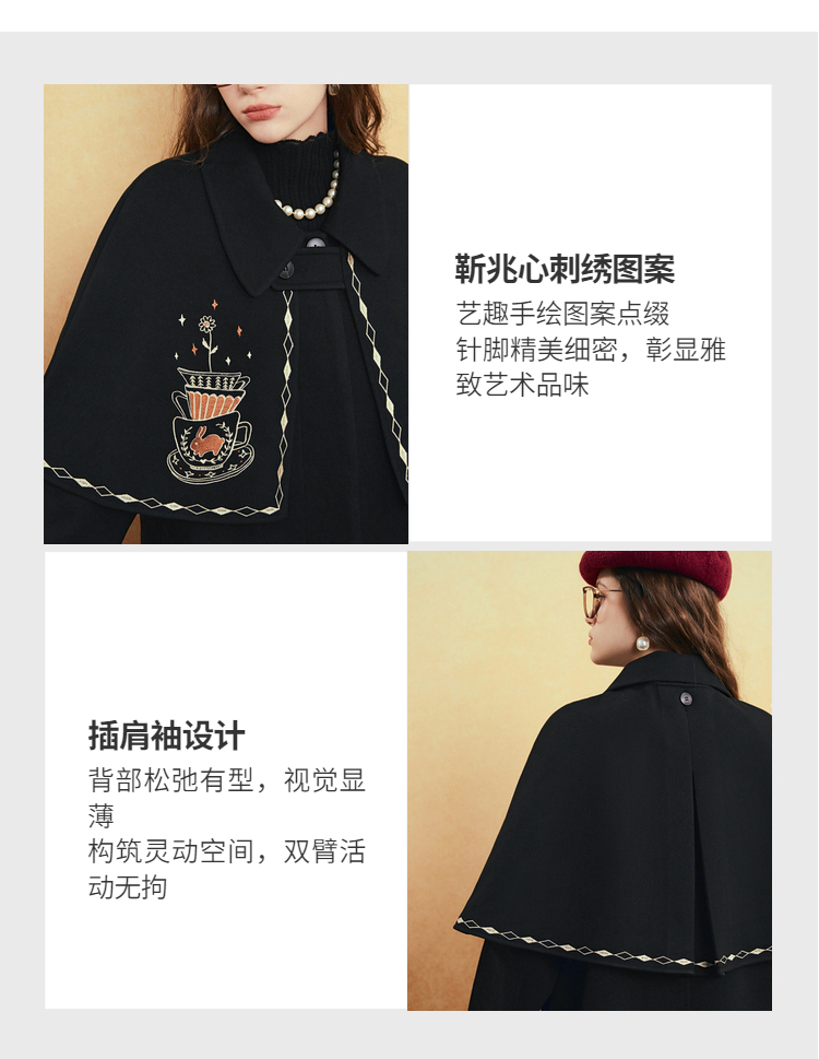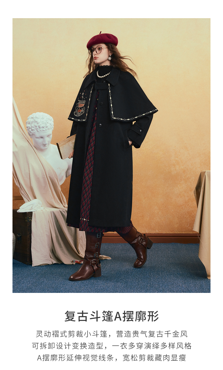 【暖冬内购】两三事 巴黎往事 2020冬季新款复古刺绣可拆披肩毛呢外套女宽松
