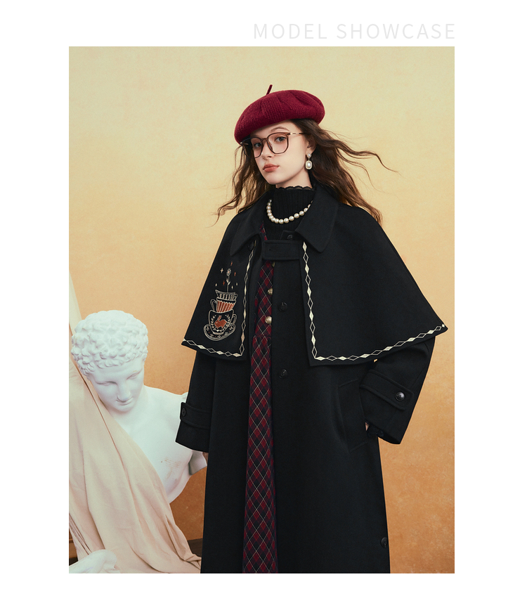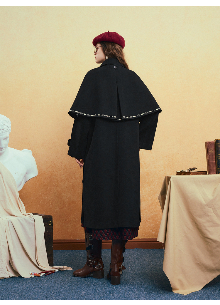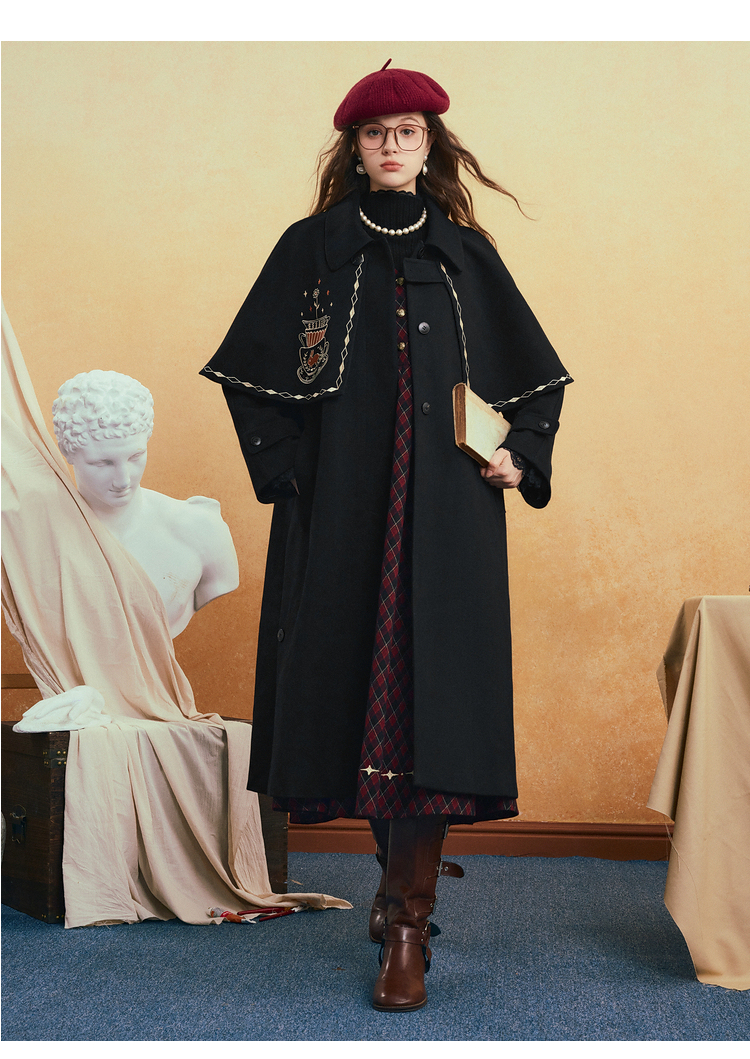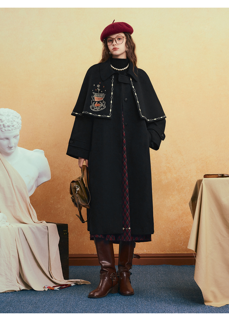 【暖冬内购】两三事 巴黎往事 2020冬季新款复古刺绣可拆披肩毛呢外套女宽松