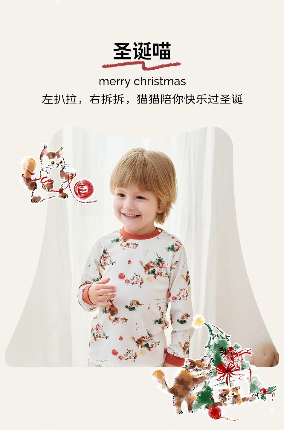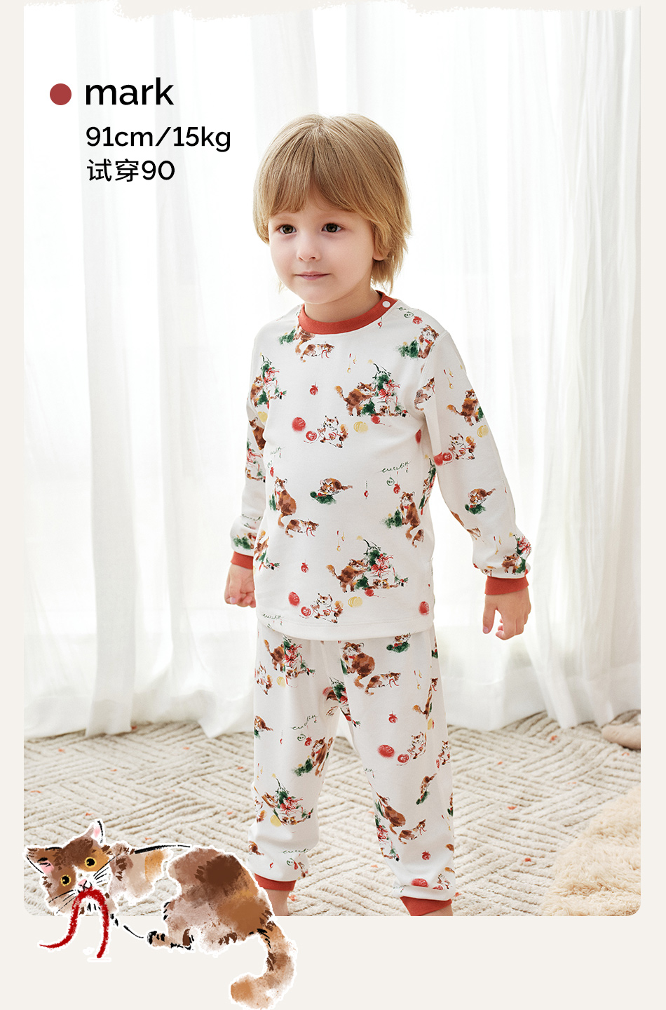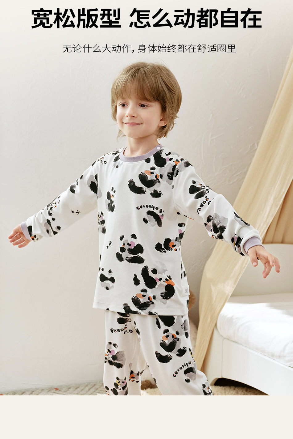 cutelife【儿童针织家居套装】家居服内衣套装小孩睡衣男童女童棉家居服宝宝秋衣秋裤秋冬