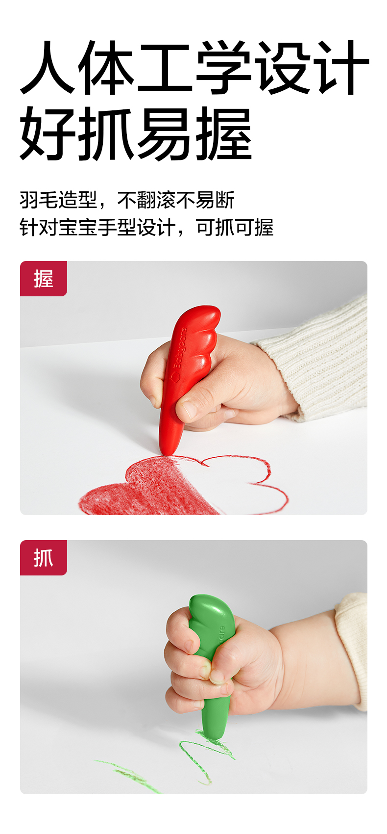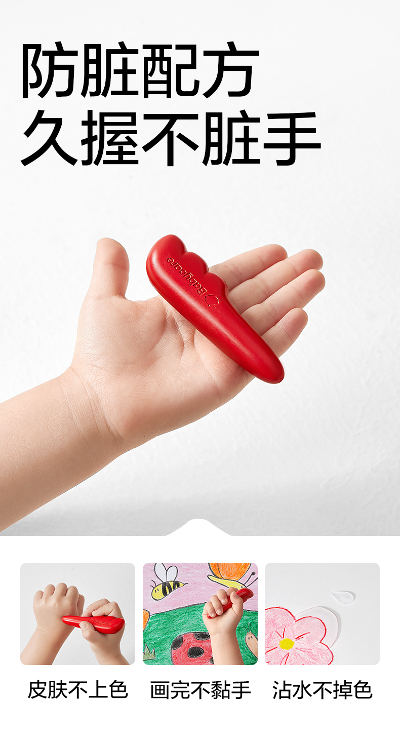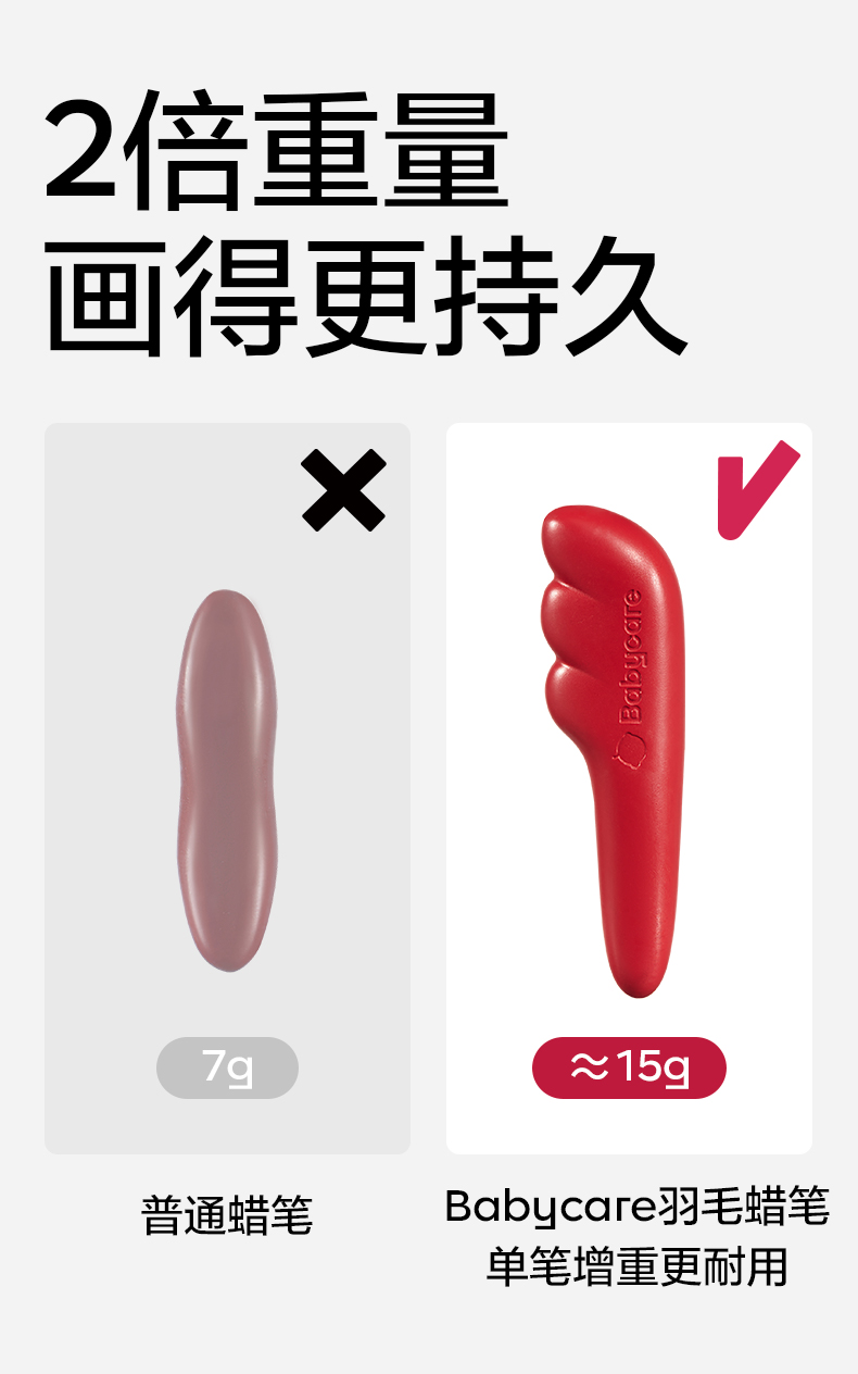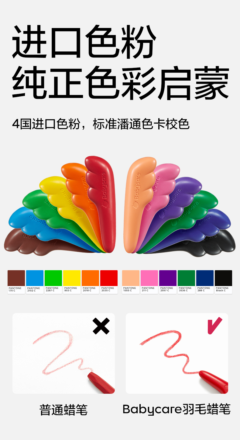 Babycare可水洗不脏手羽毛丝滑蜡笔玩具12色/24色3岁+