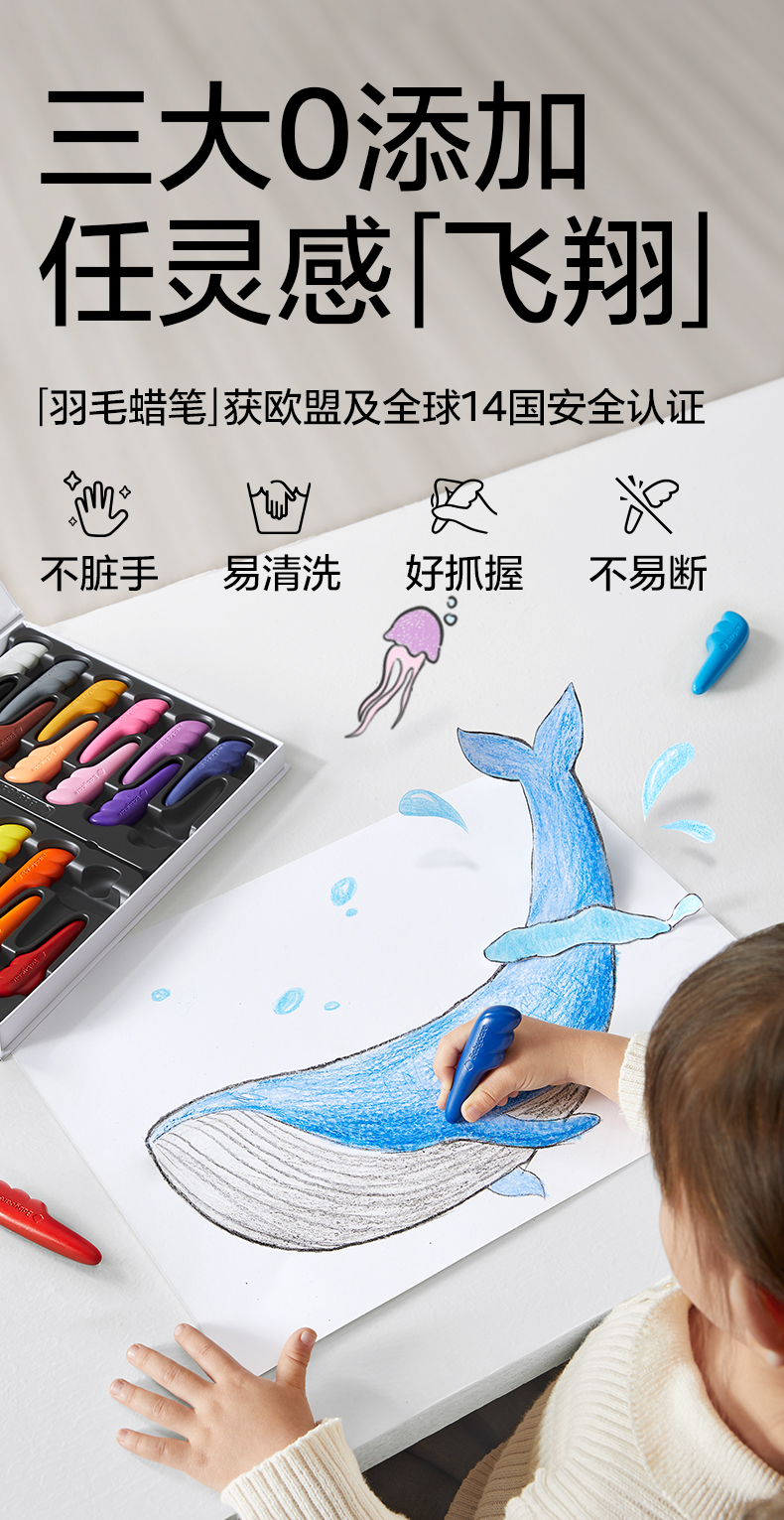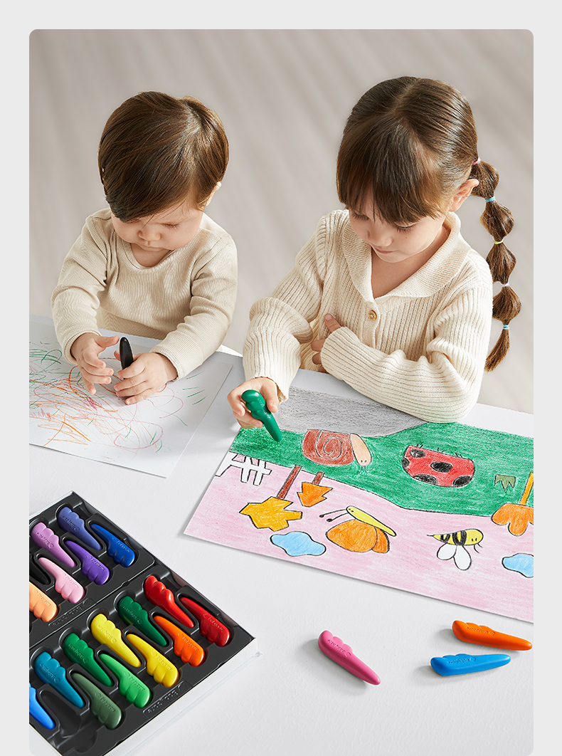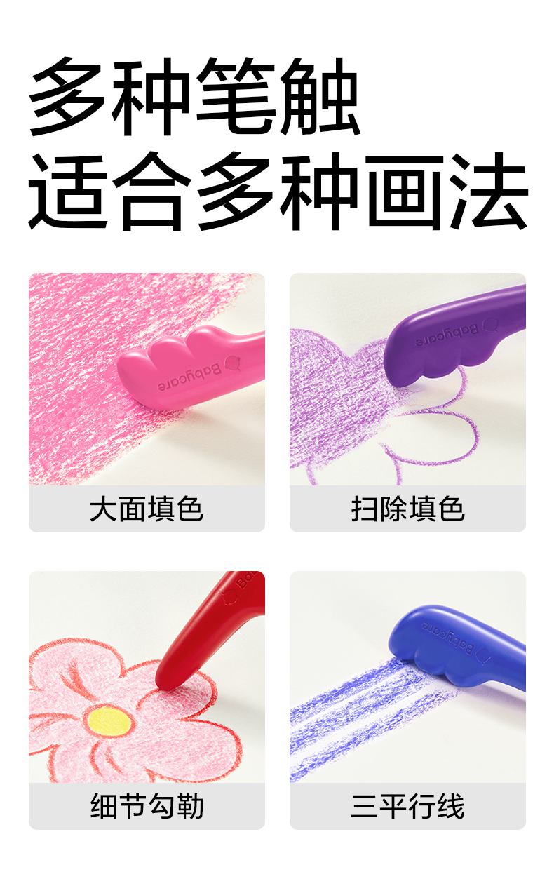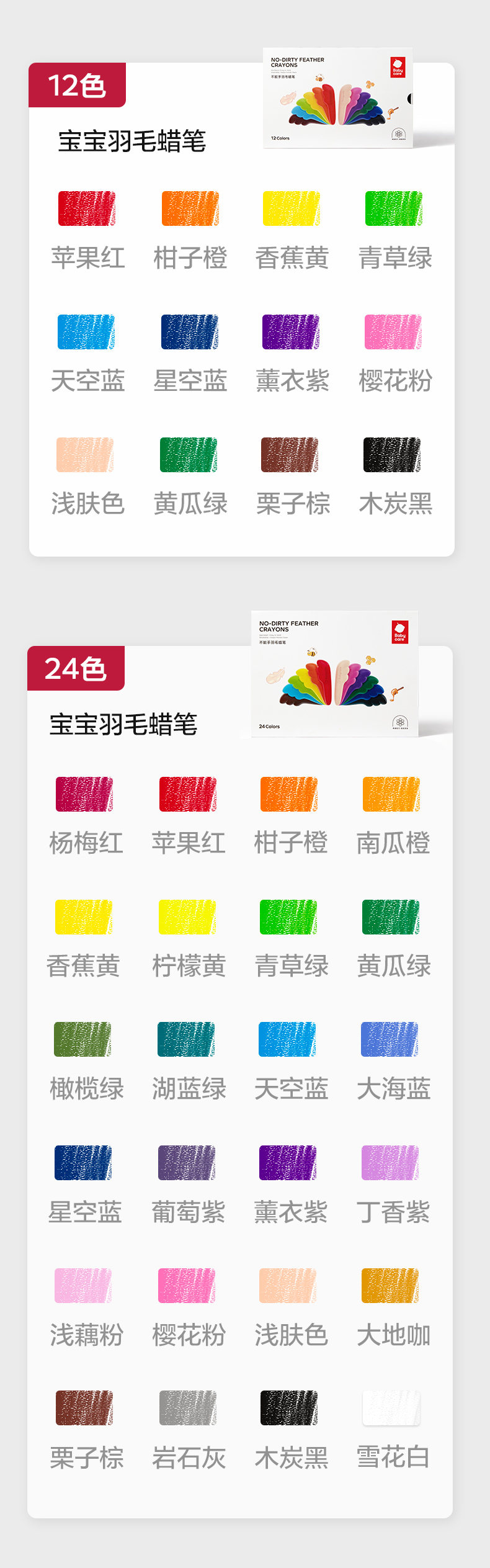 Babycare可水洗不脏手羽毛丝滑蜡笔玩具12色/24色3岁+