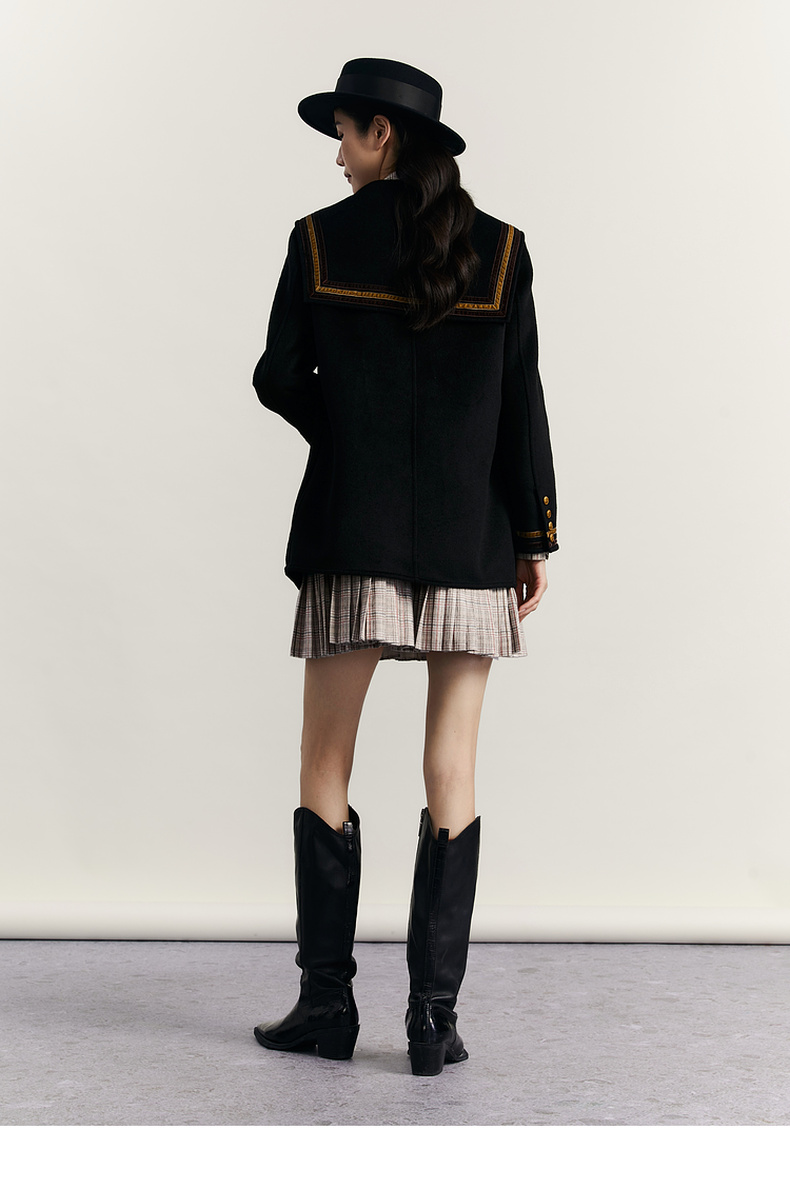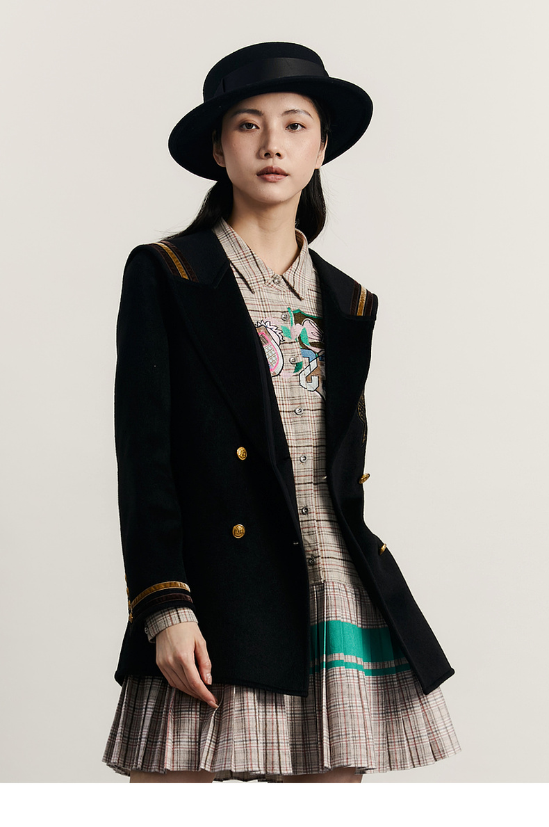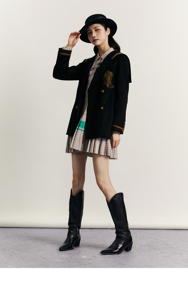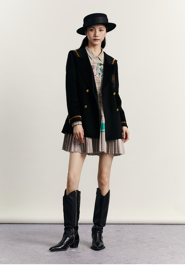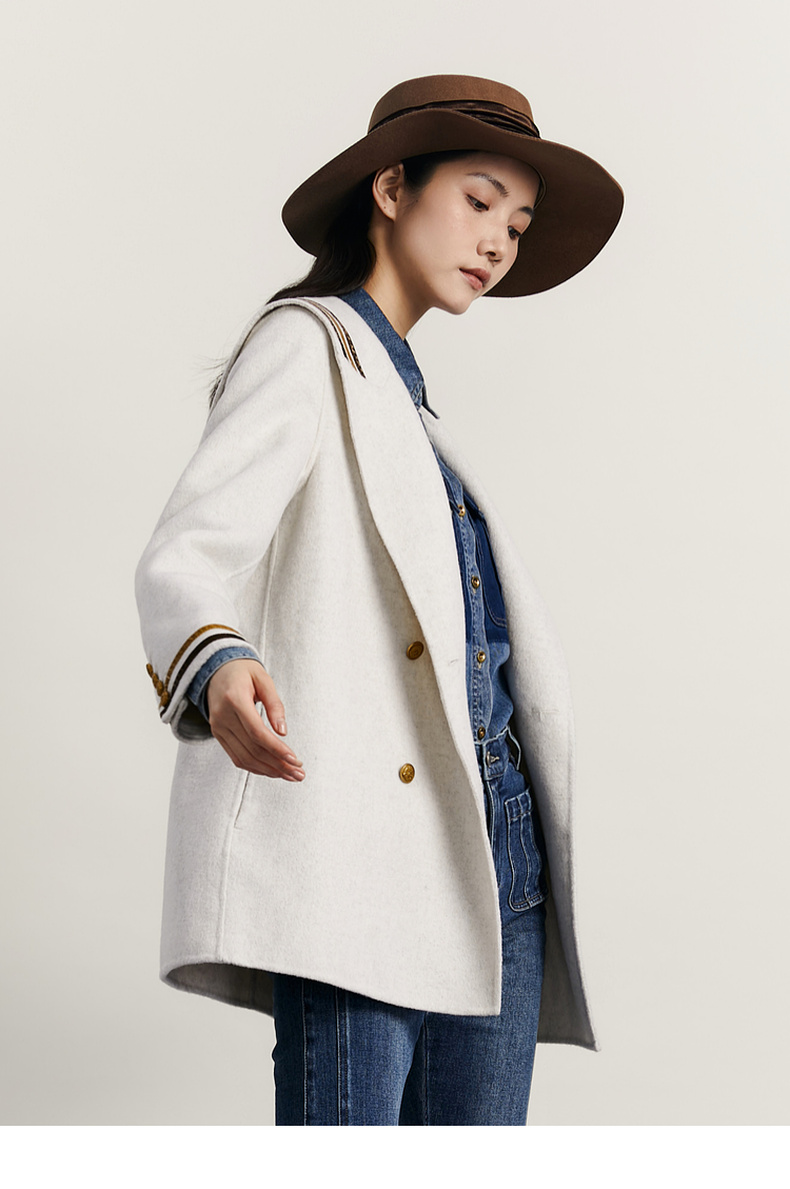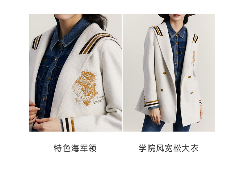 谜底毛呢大衣女2023冬季新品复古学院风宽松中长款外套234MD1472