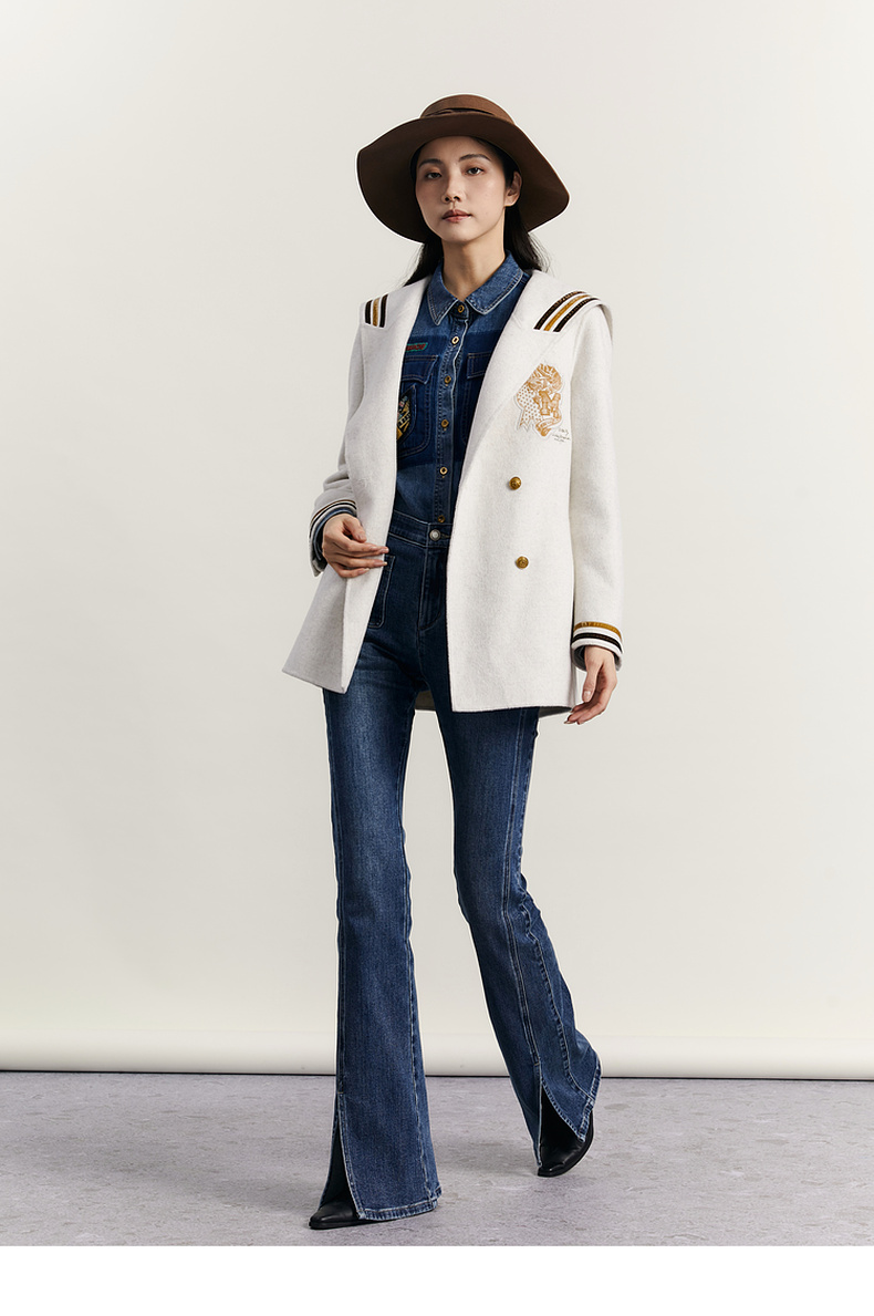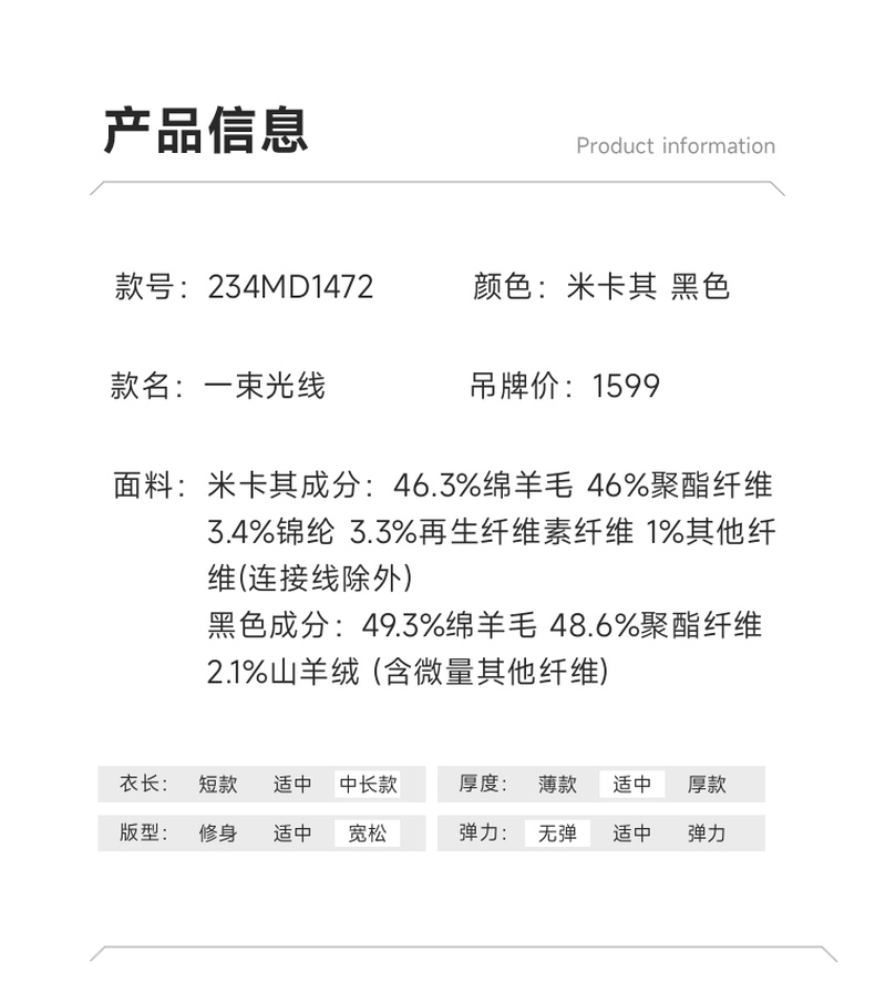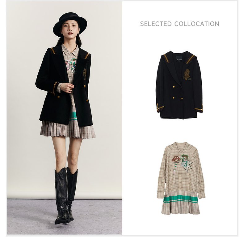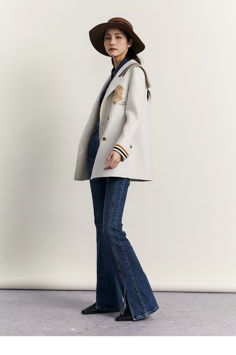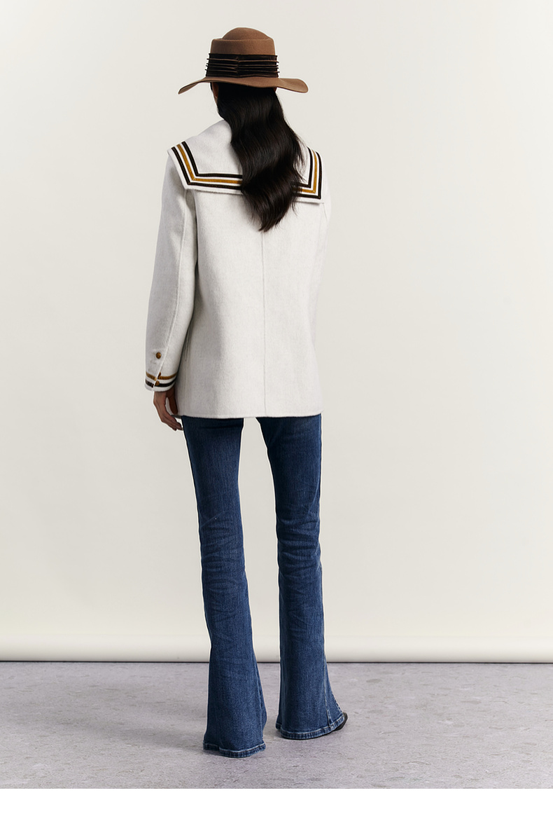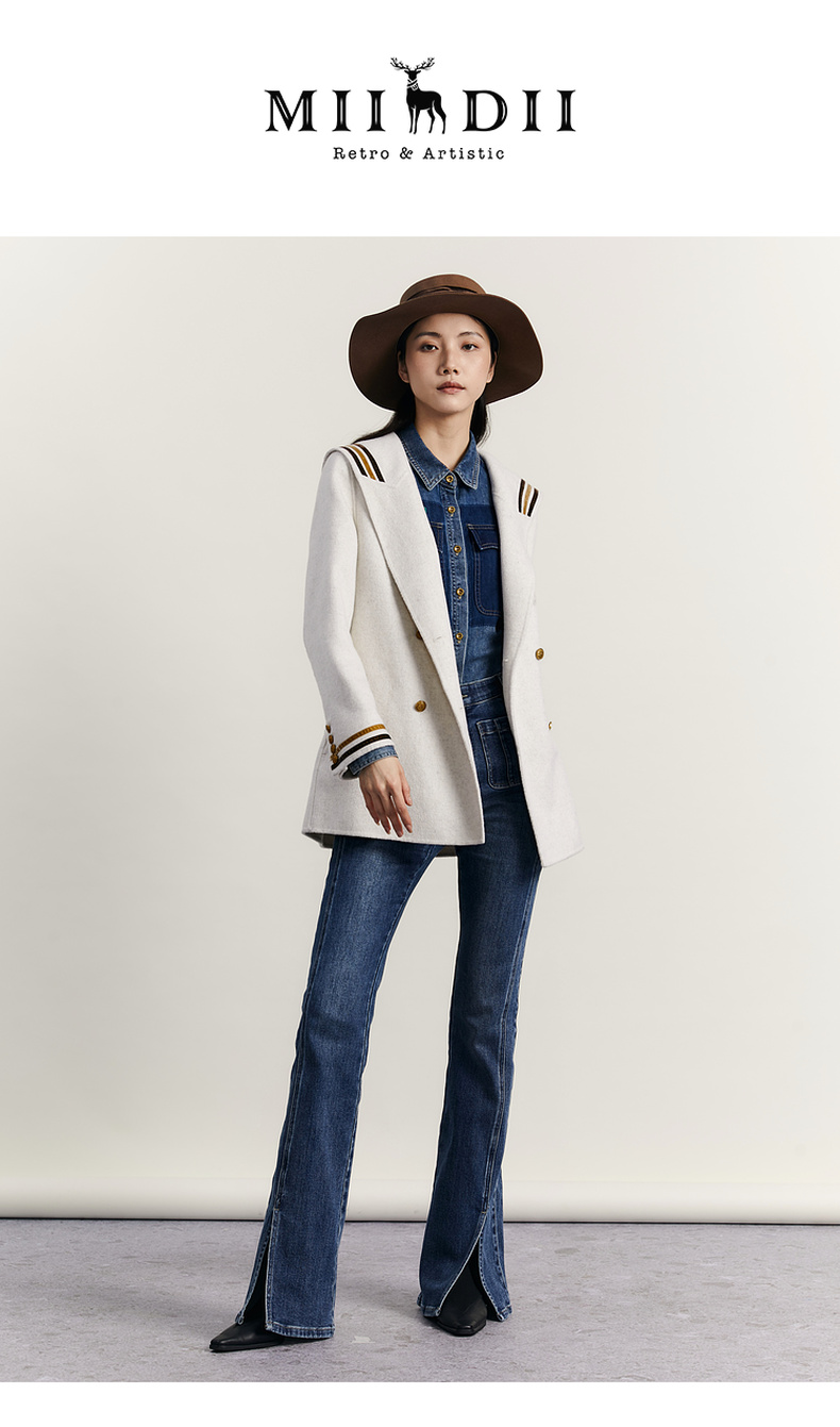 谜底毛呢大衣女2023冬季新品复古学院风宽松中长款外套234MD1472
